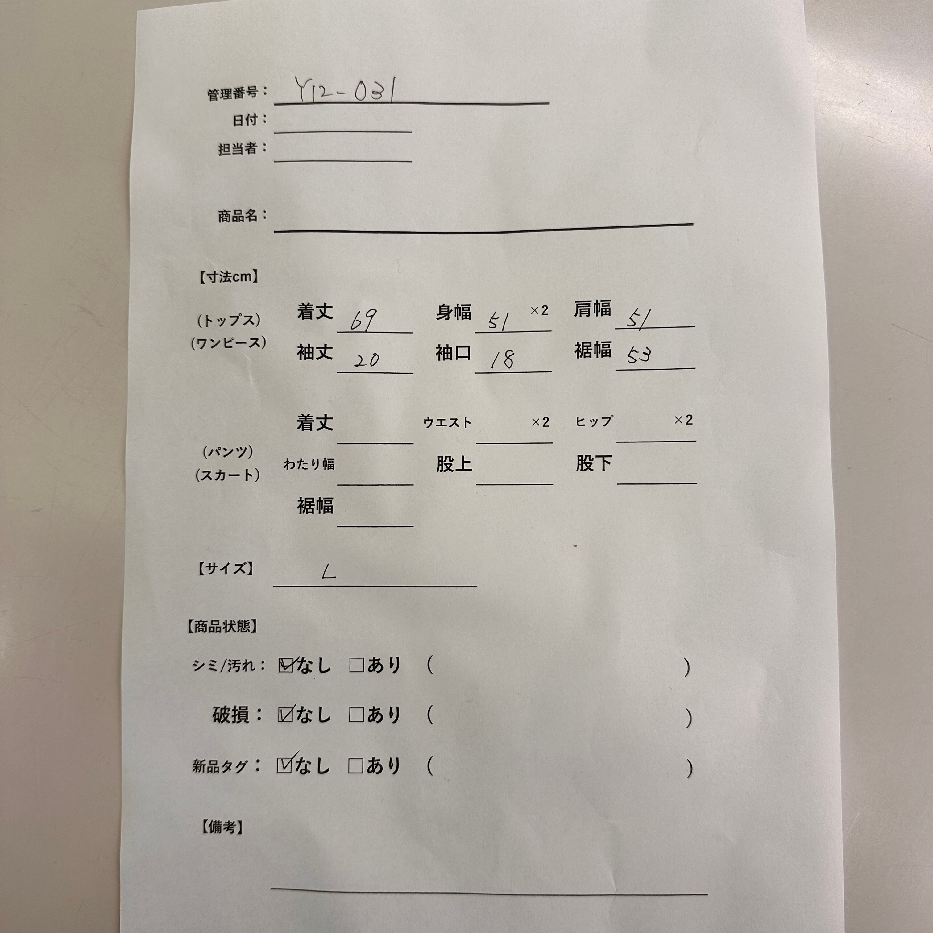 管理番号:Y12-031 #てまいらずアパレル商品一覧