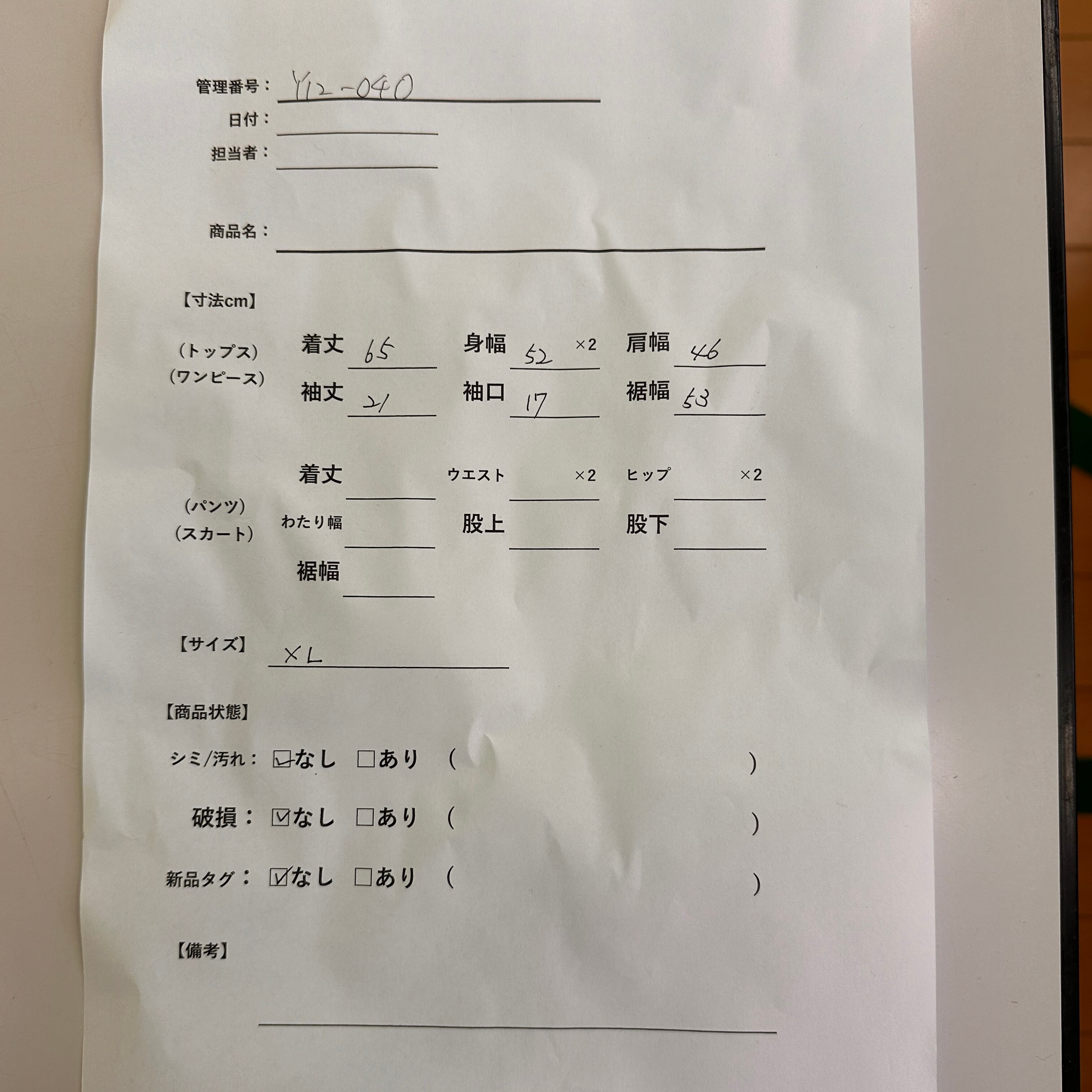 管理番号:Y12-040 #てまいらずアパレル商品一覧