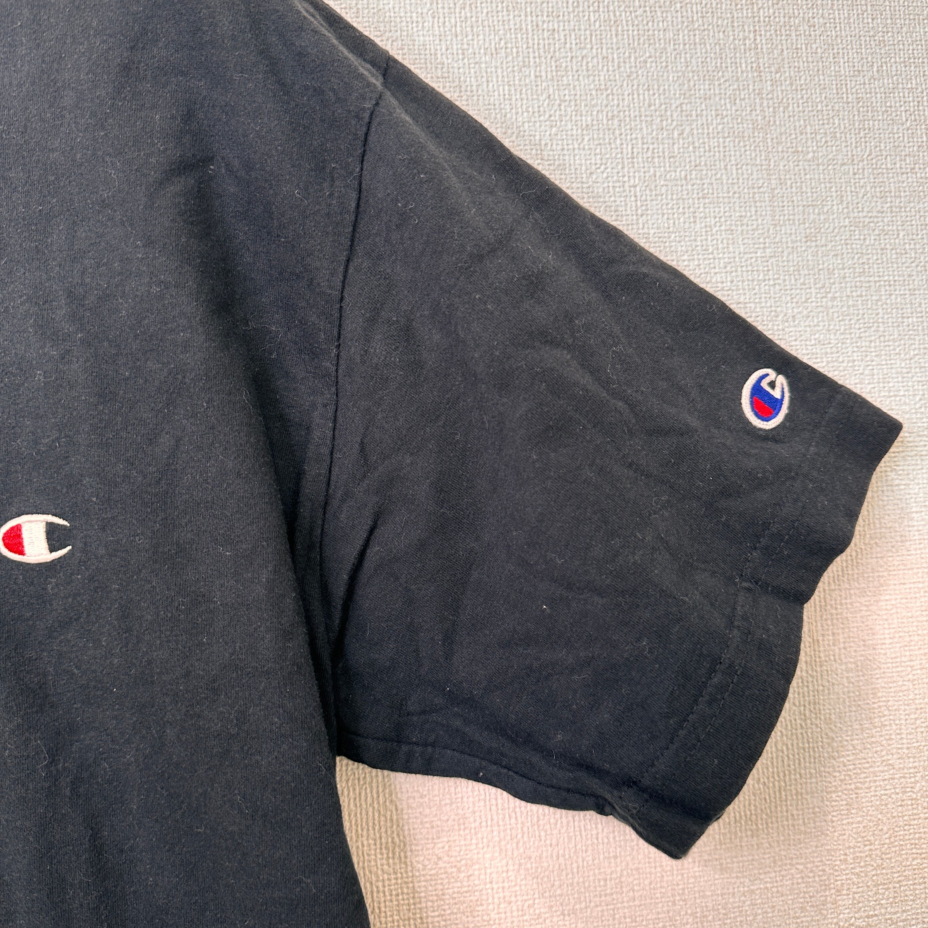 Champion ワンポイントロゴ Tシャツ ブラック XL 刺繍ロゴ 黒 綿100%