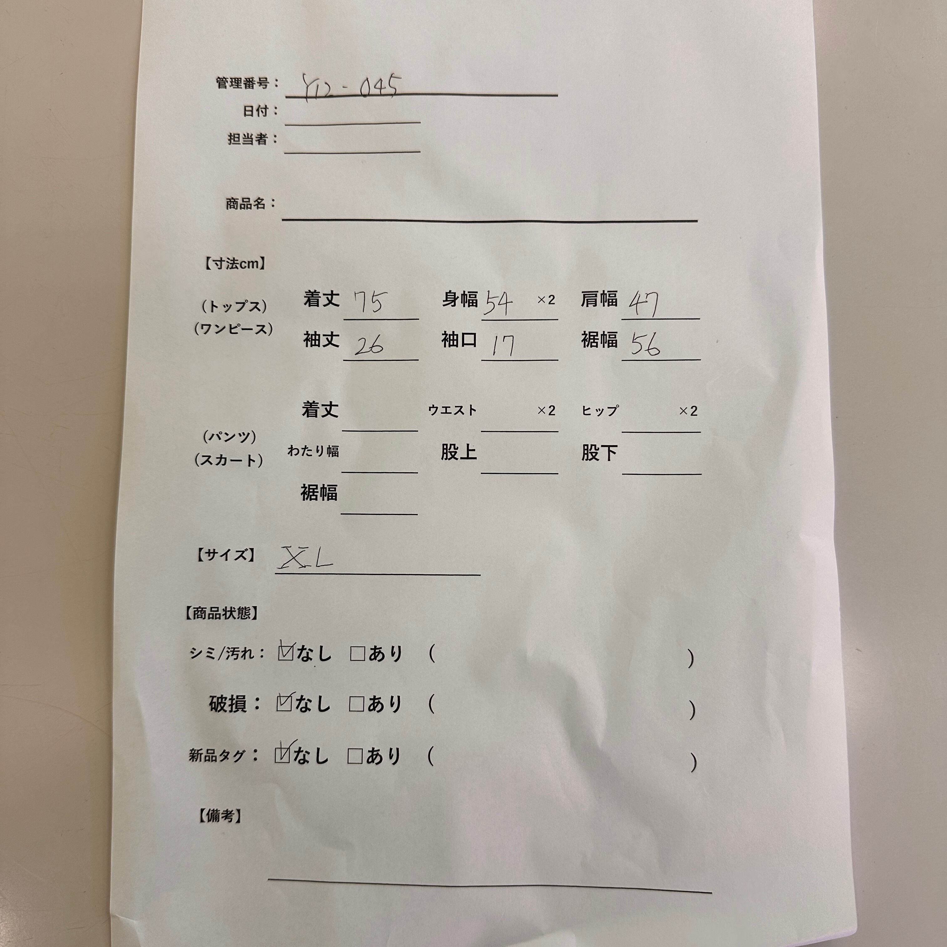 管理番号:Y12-045#てまいらずアパレル商品一覧