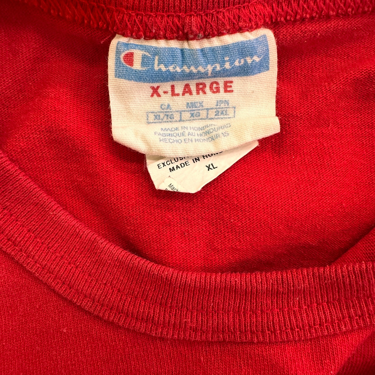 Champion(チャンピオン)の鮮やかな赤色のTシャツです。