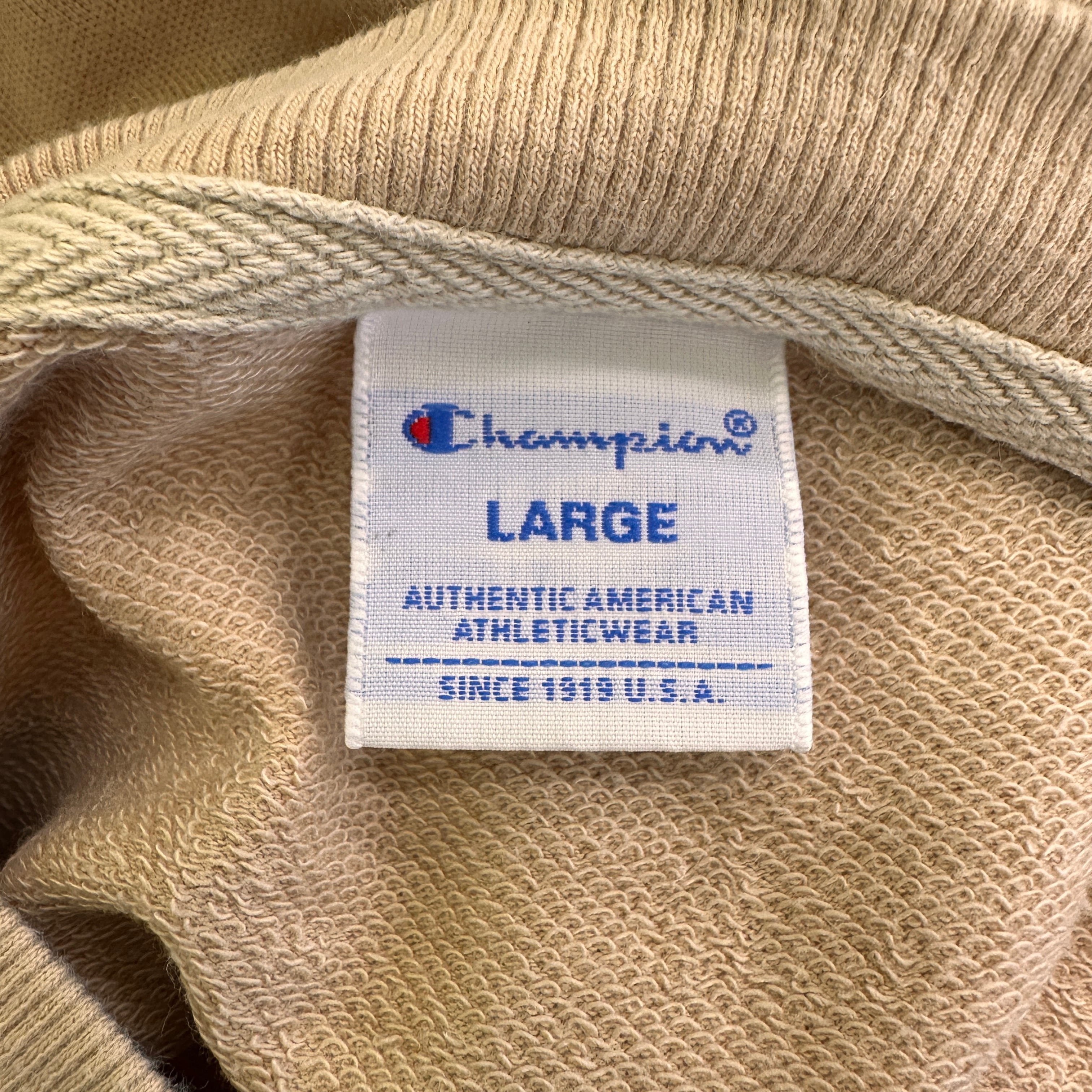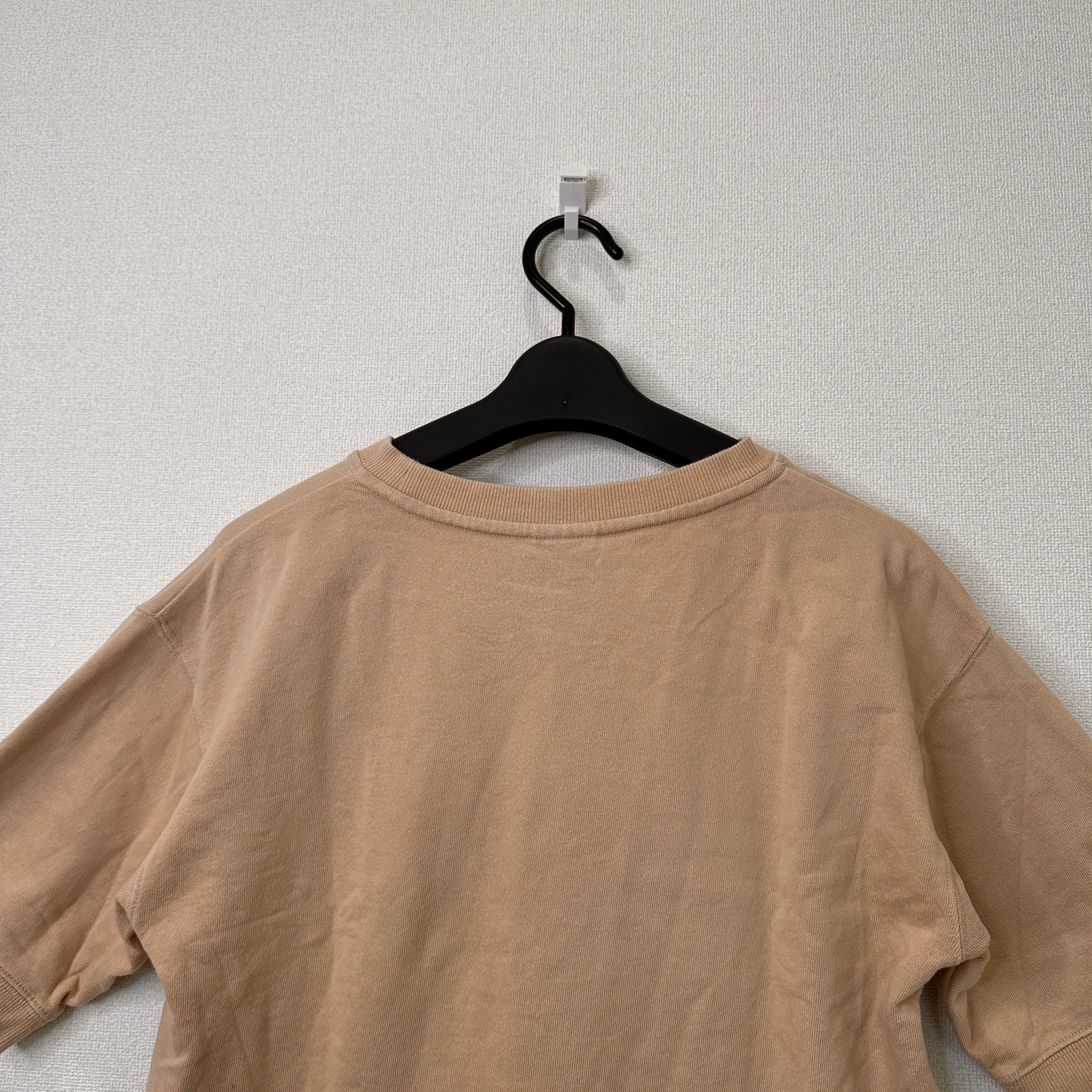 Champion 半袖スウェット CW-M015 ベージュ系 リブ仕様 ゆったりシルエット Lサイズ