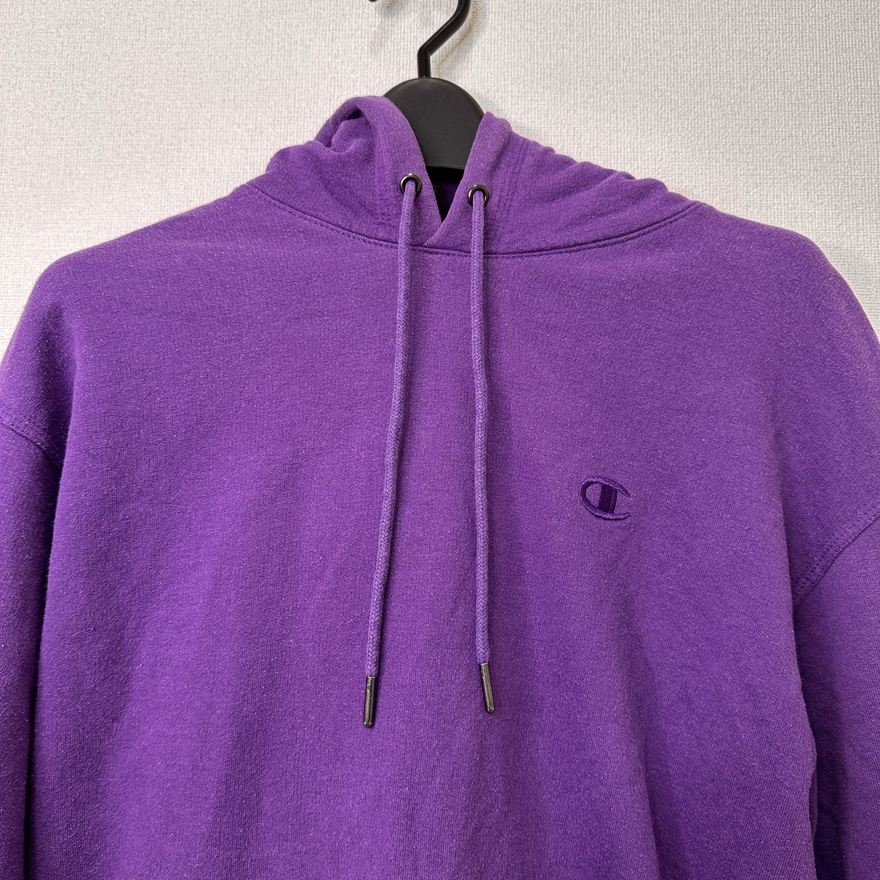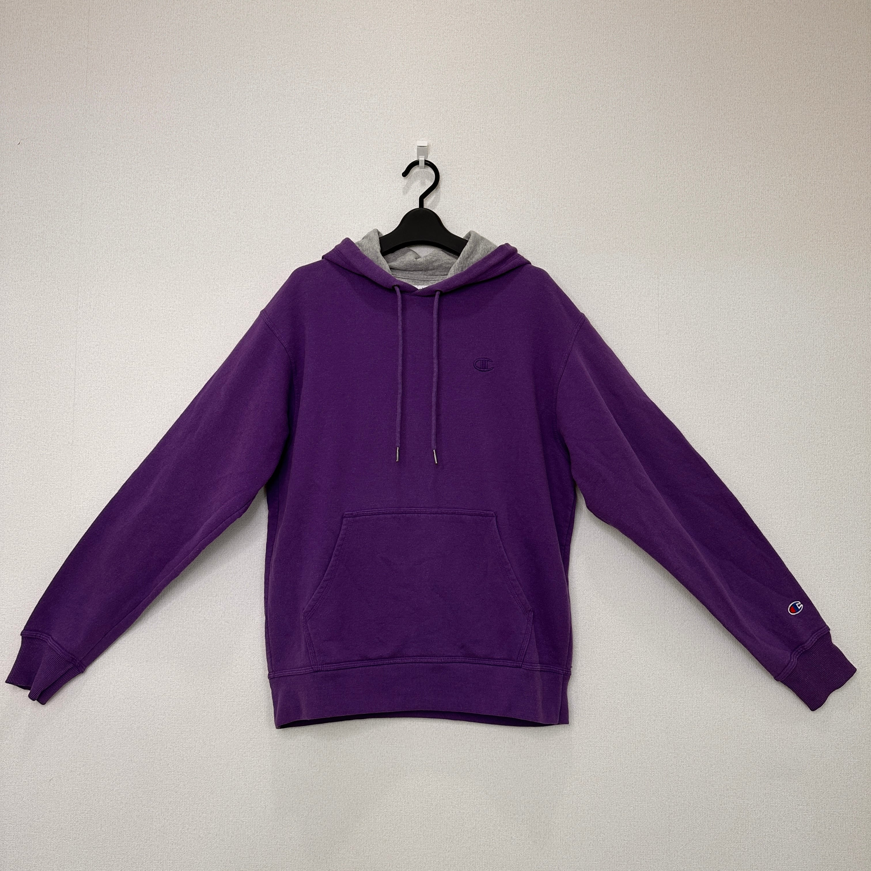 Champion チャンピオン AUTHENTIC ワンポイントロゴ刺繍 プルオーバー パーカー 紫 パープル XLサイズ