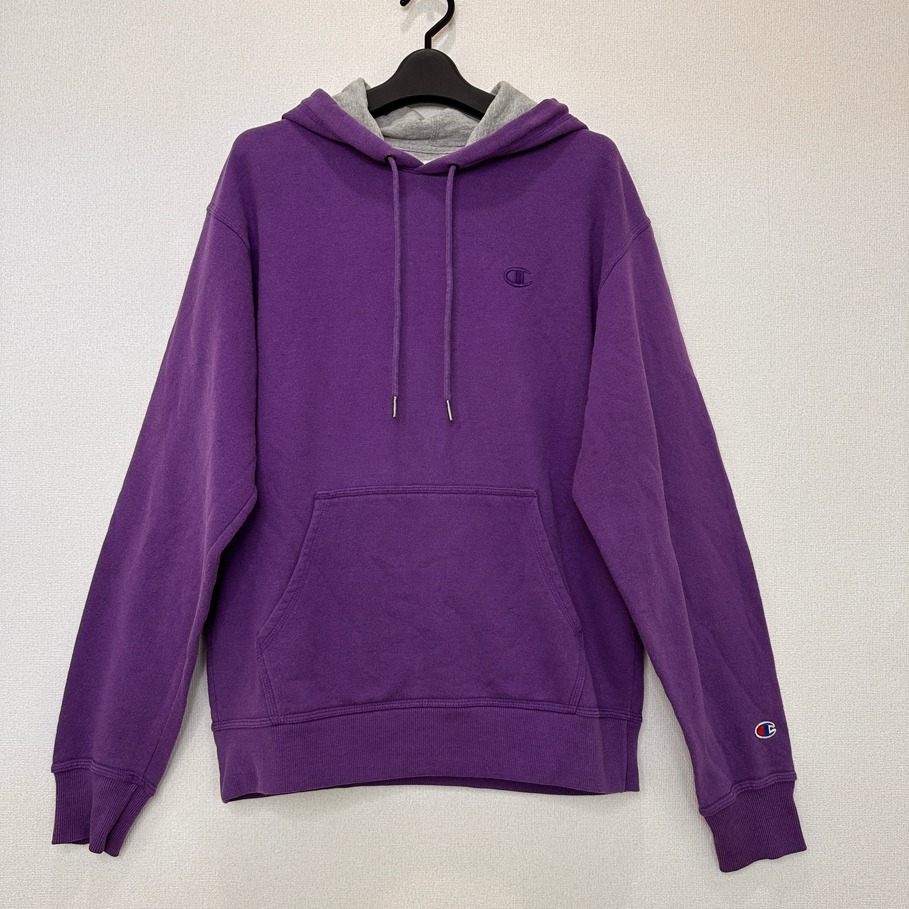 Champion パープル パーカー AUTHENTIC 裏起毛 ワンポイント刺繍 プルオーバー メンズXL
