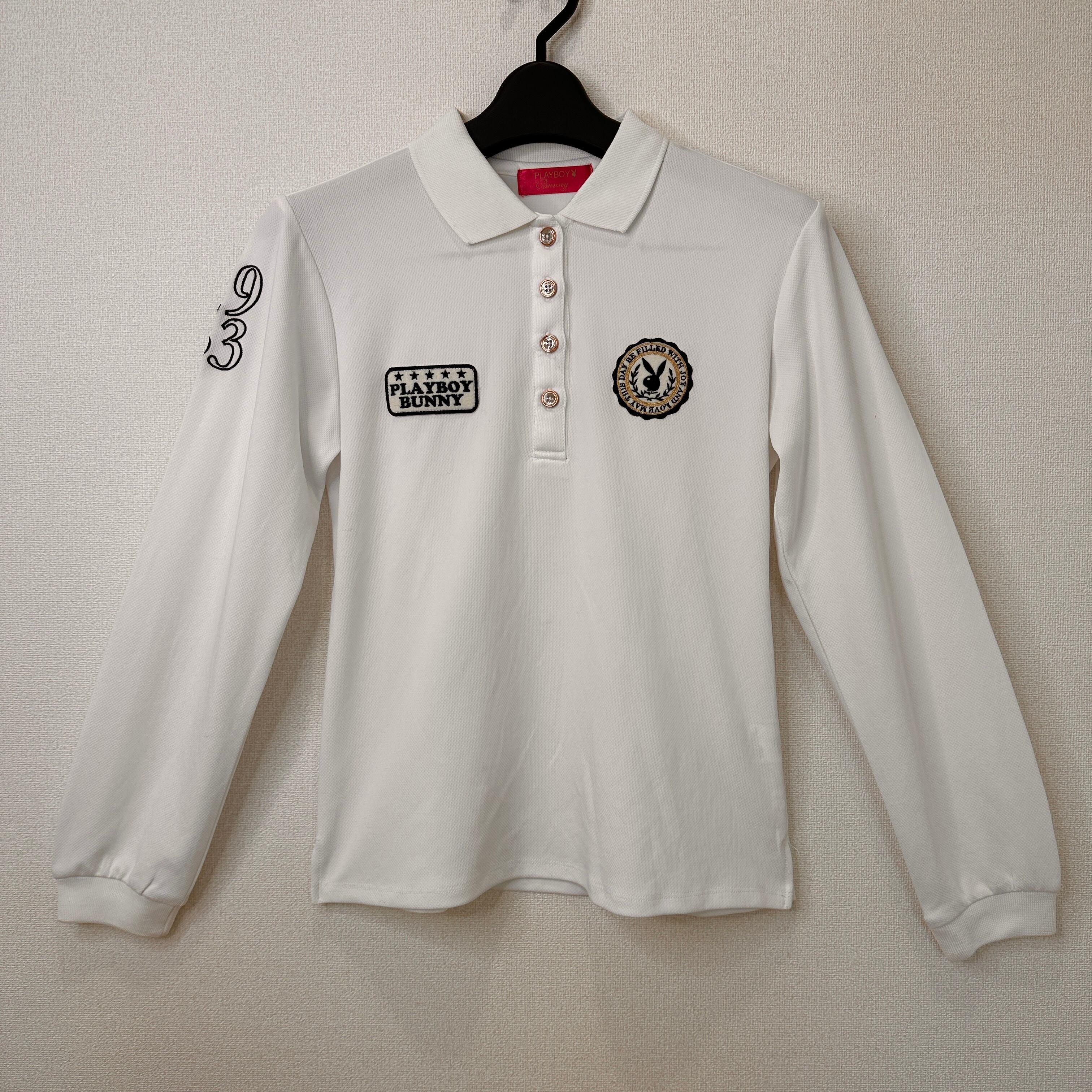 PLAYBOY Bunny ポロシャツ 長袖 Mサイズ 白 ワッペン ゴルフウェア