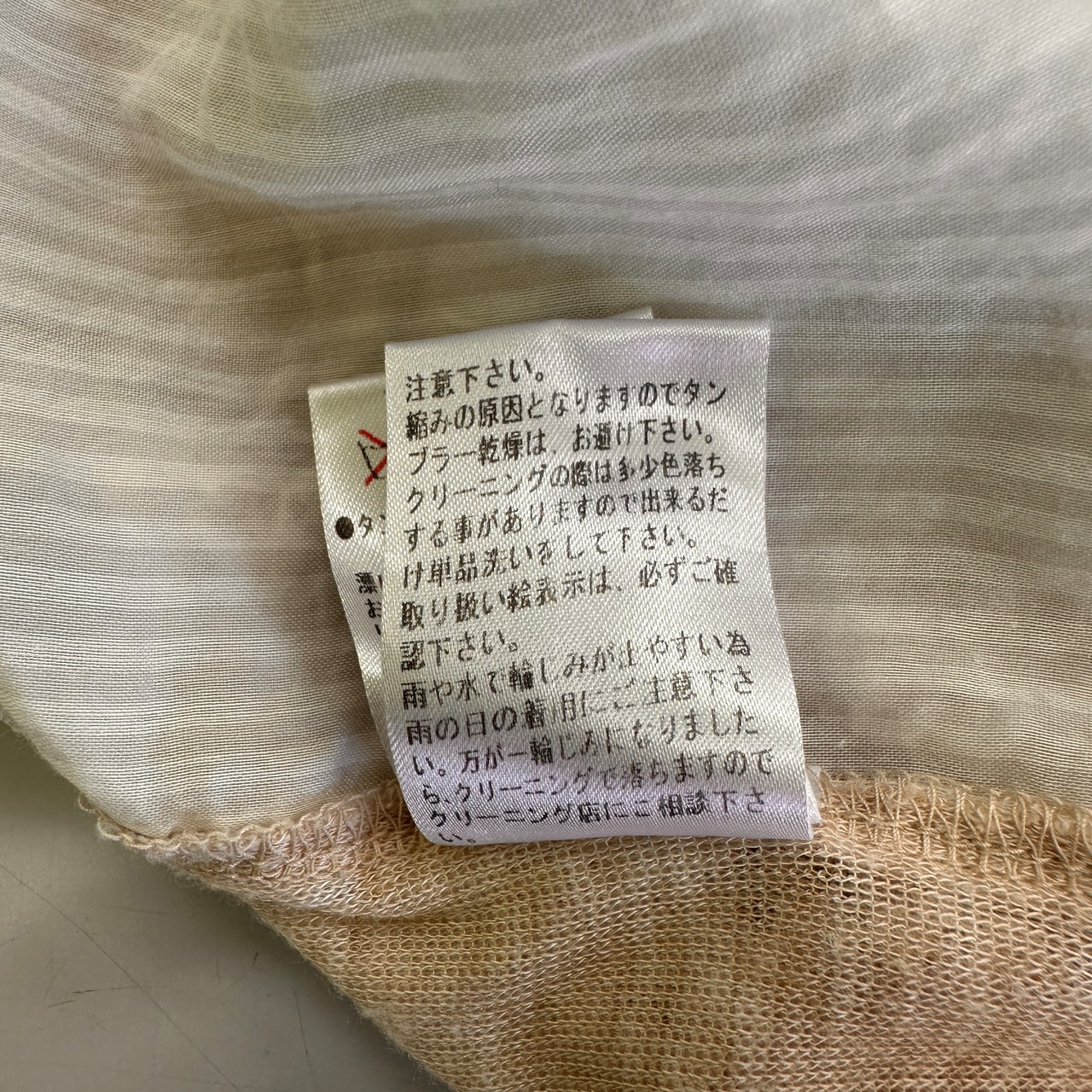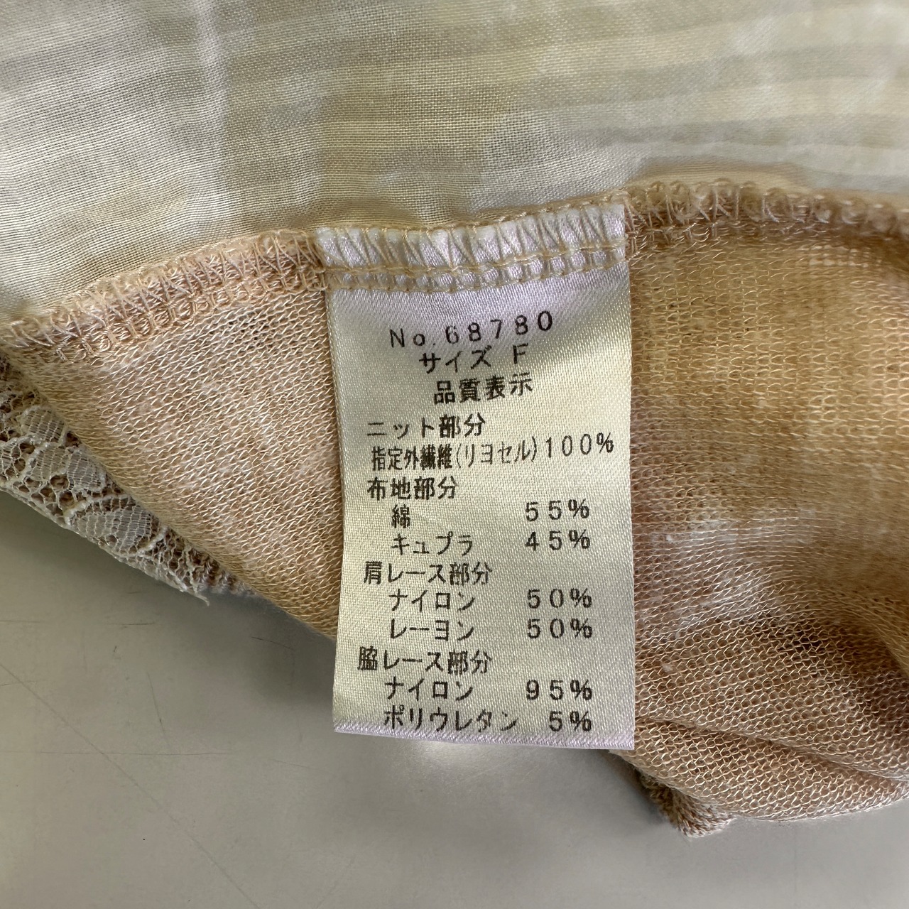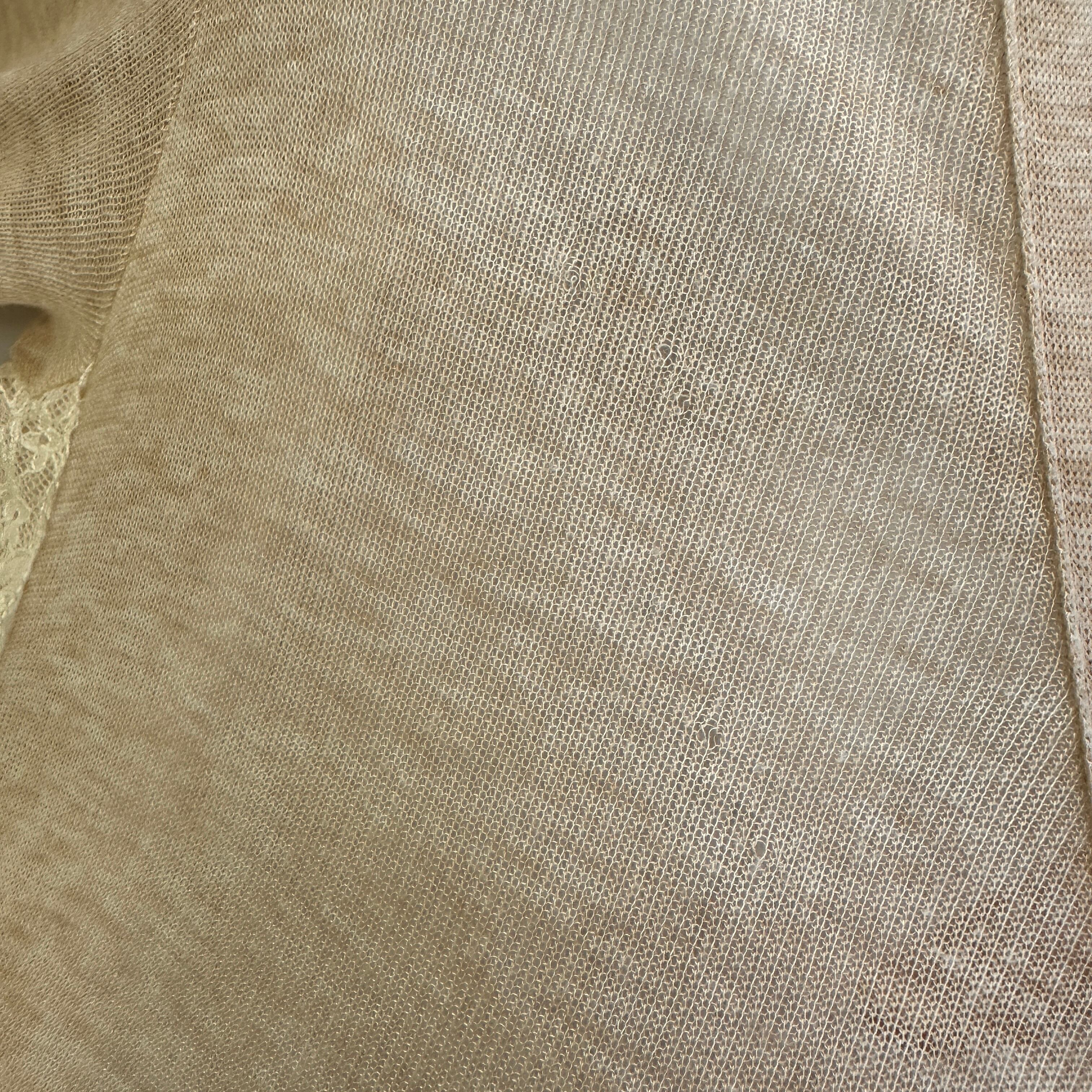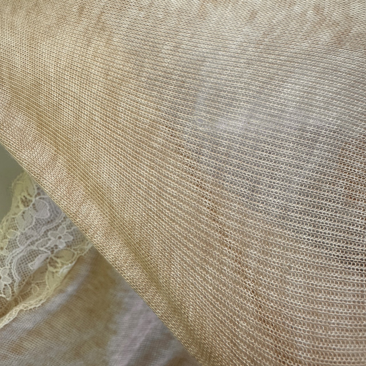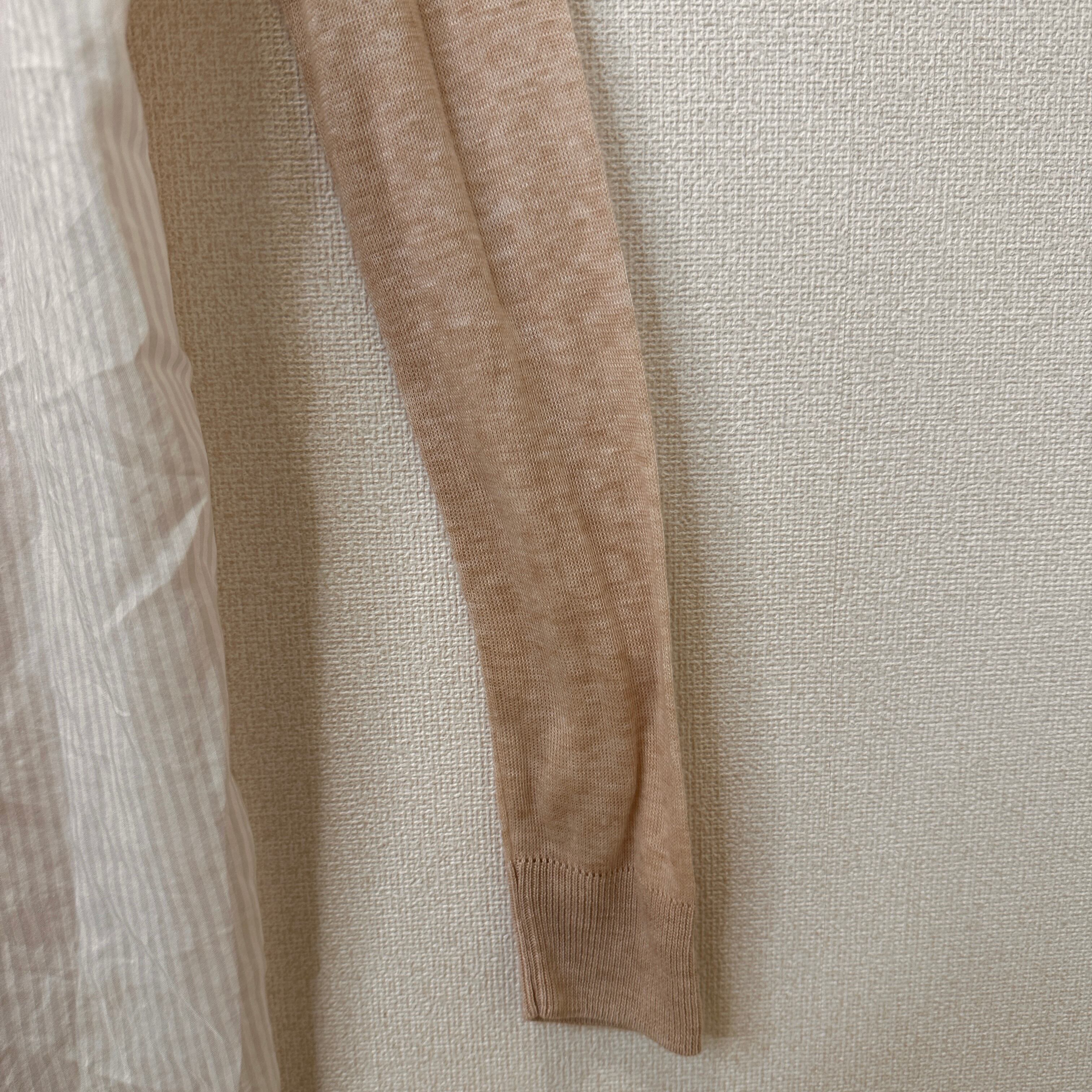 透け感のある柔らかなベージュのニット素材に、