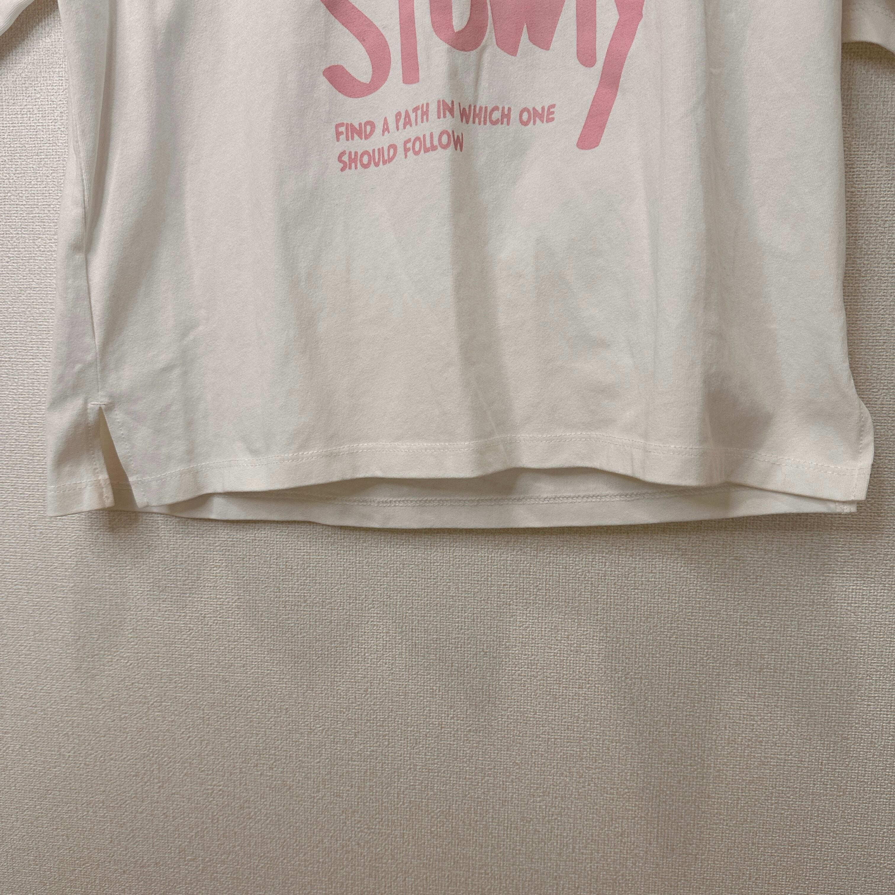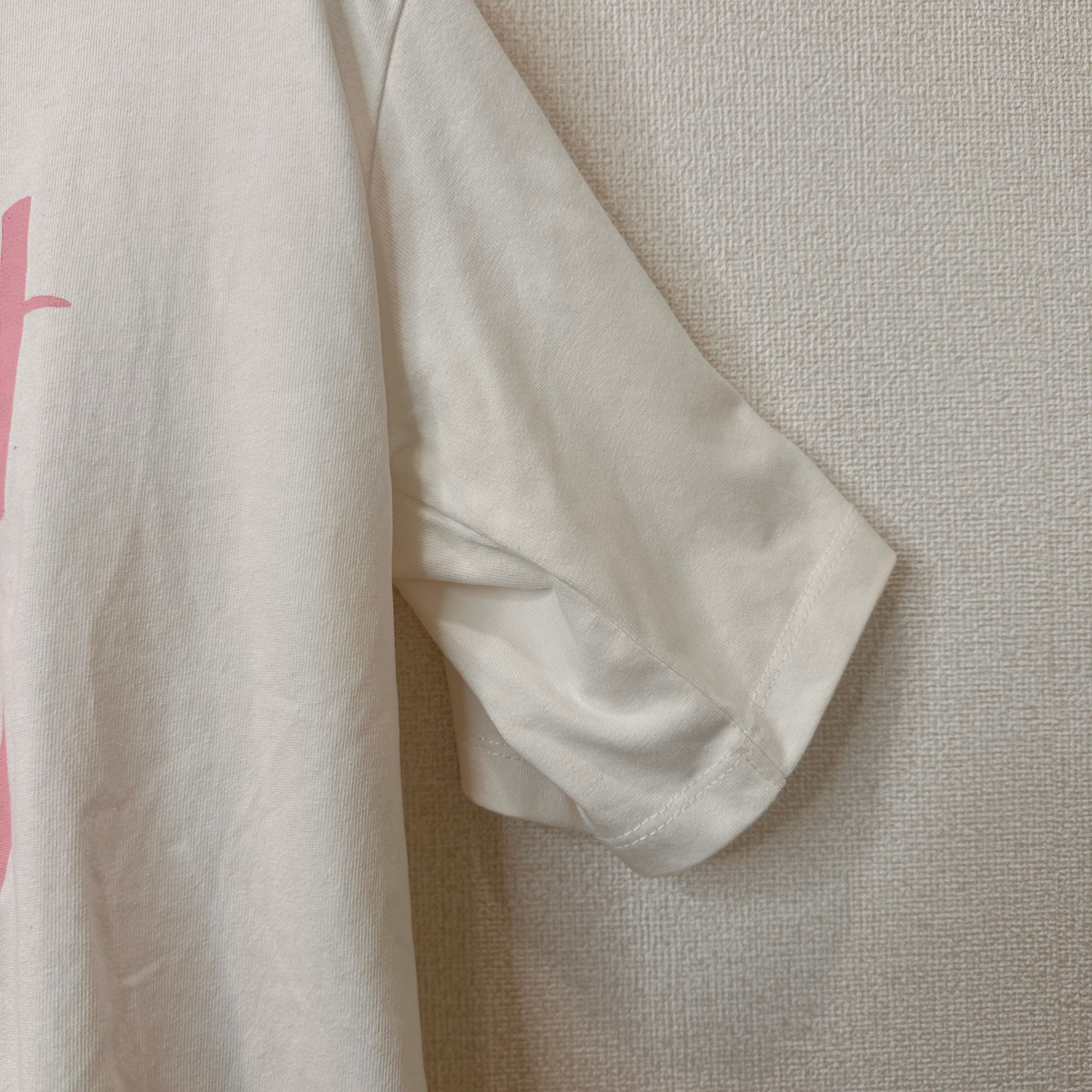「SENSE OF PLACE by URBAN RESEARCH」の白地にピンクのロゴがプリントされたTシャツです。
