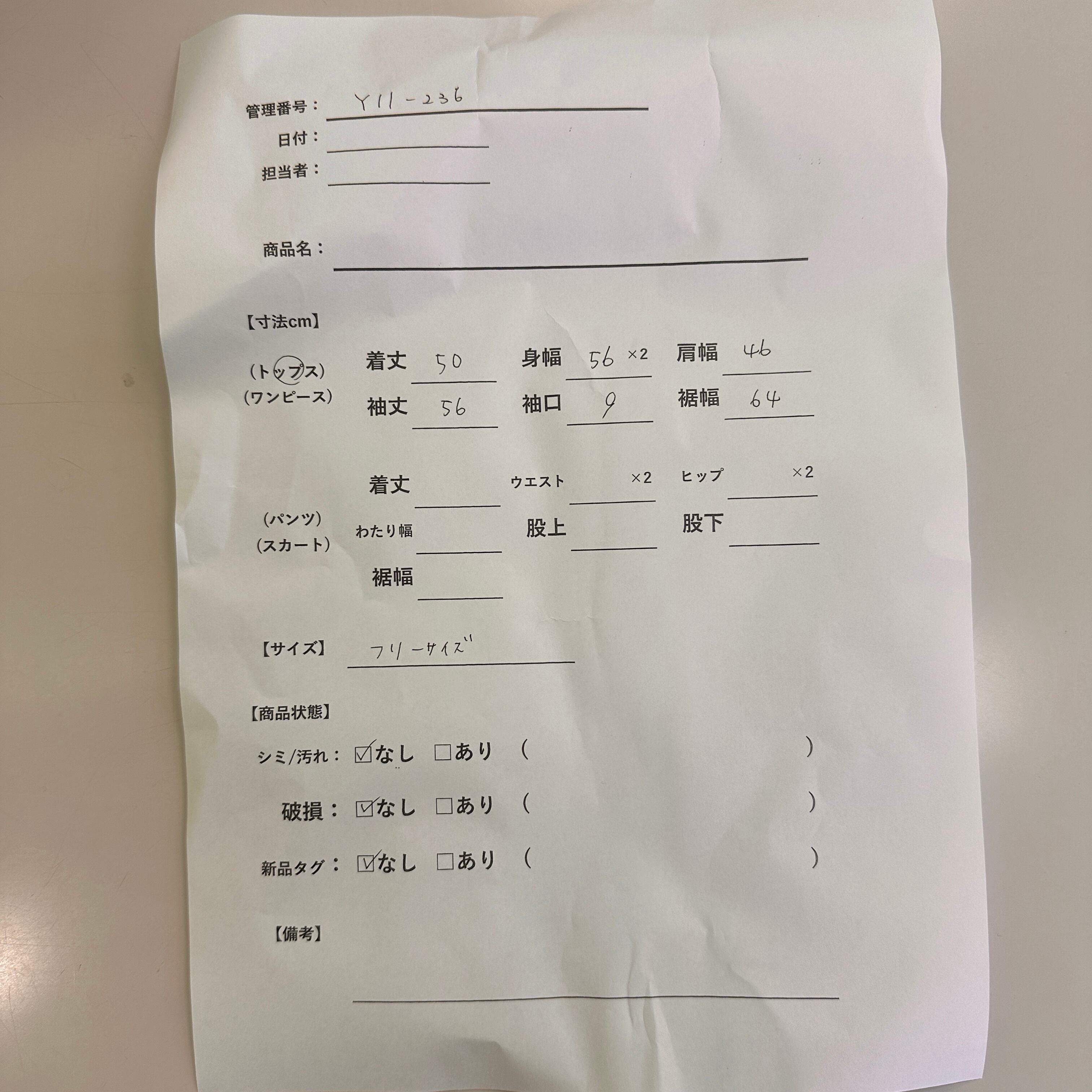 ※素人の採寸のため、誤差が生じる場合がございます。