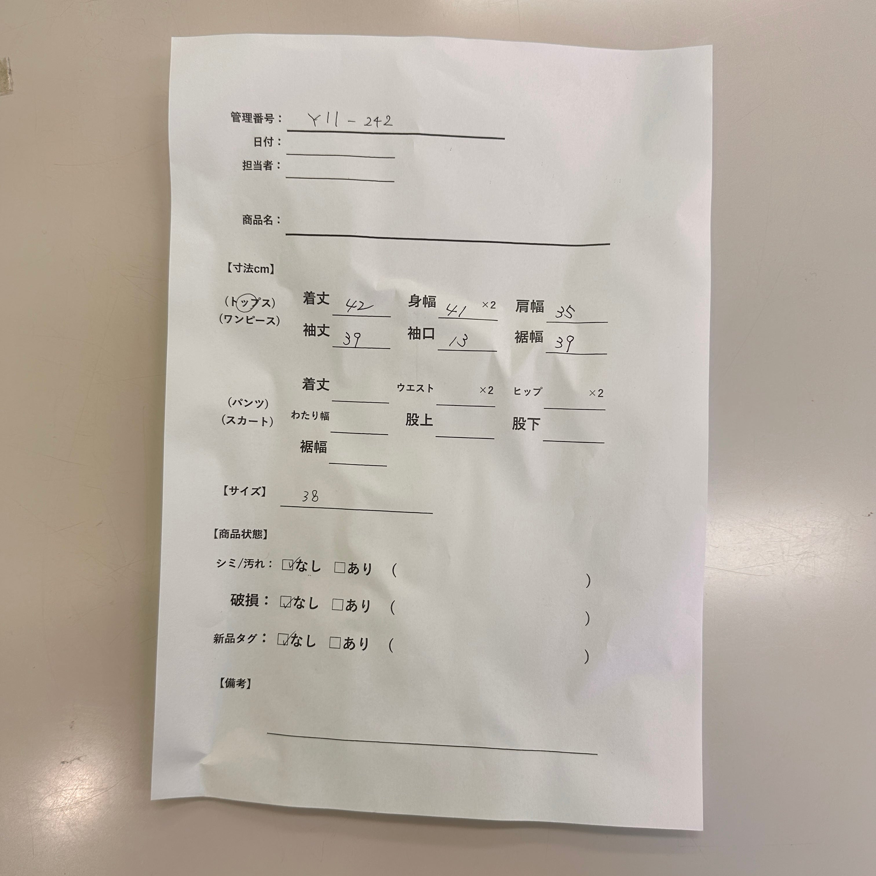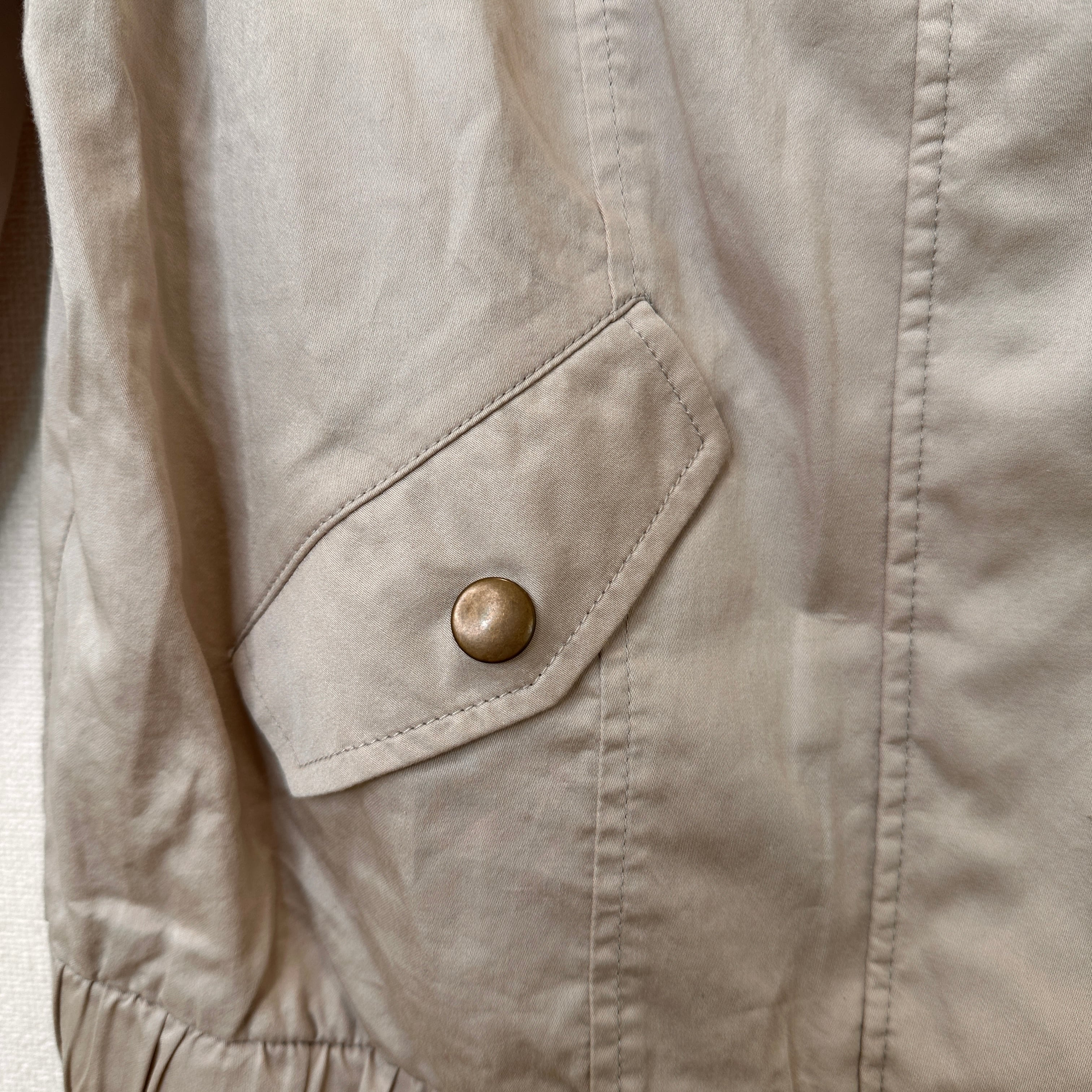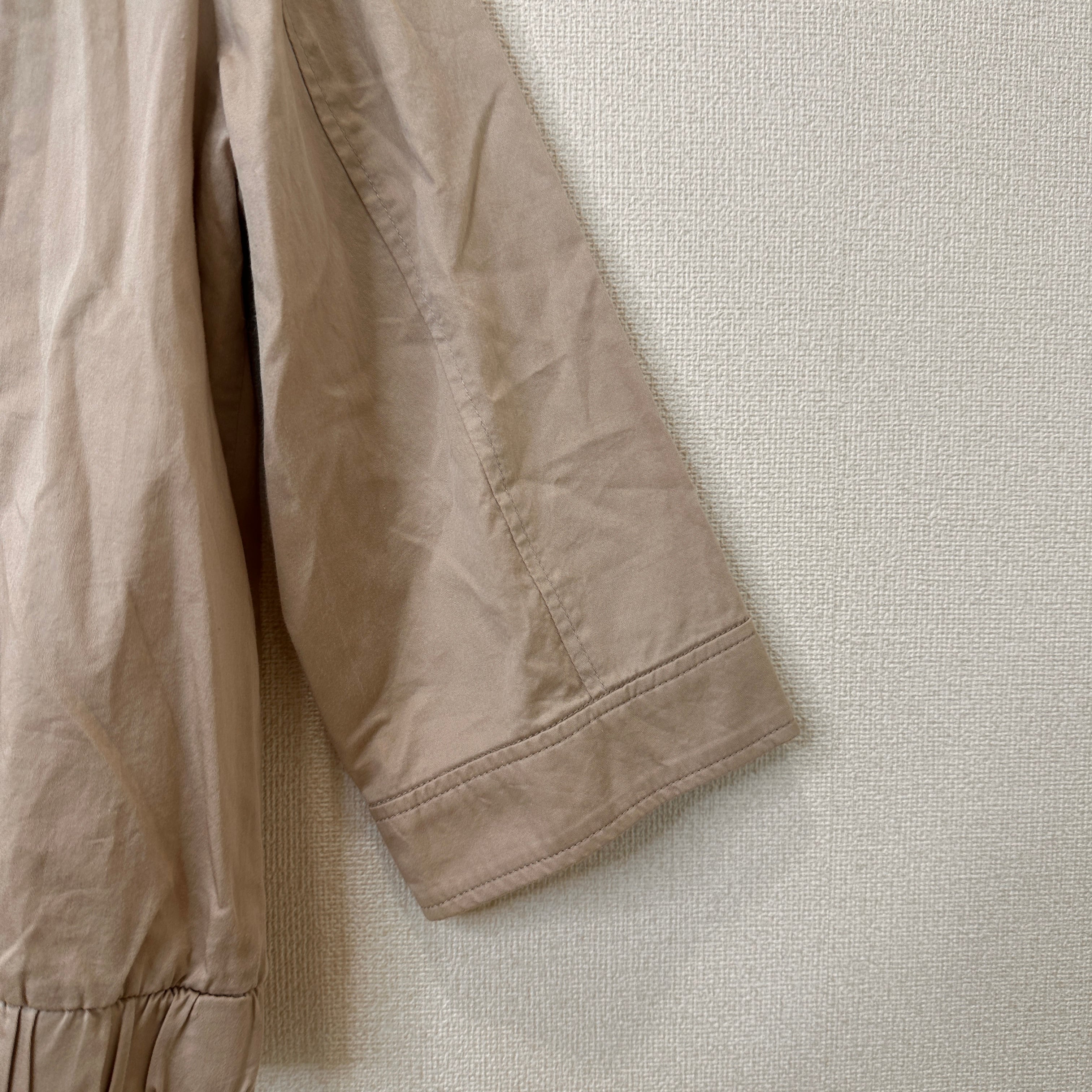 ウエスト部分と袖口がギャザーで絞られており、女性らしい丸みのあるシルエットです。