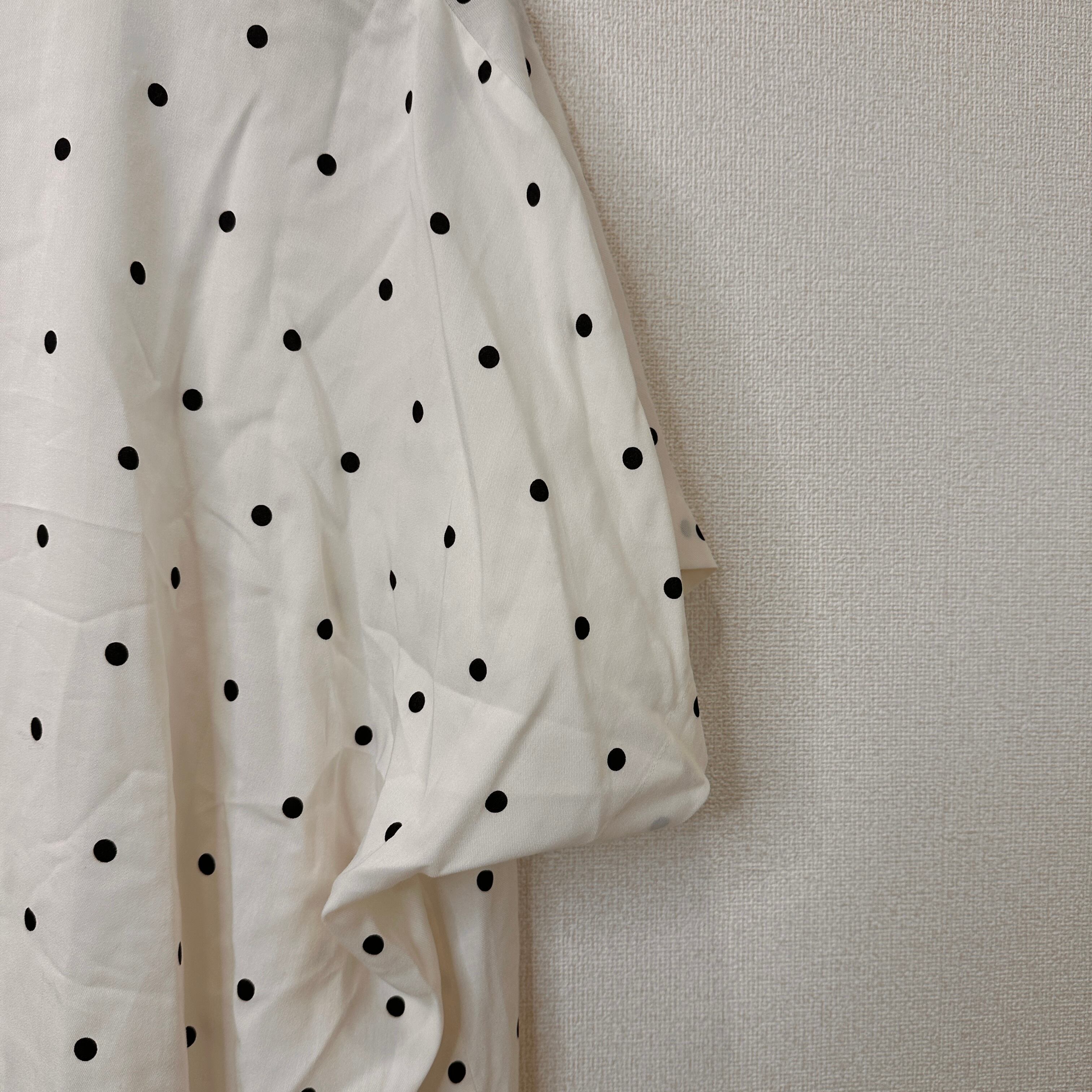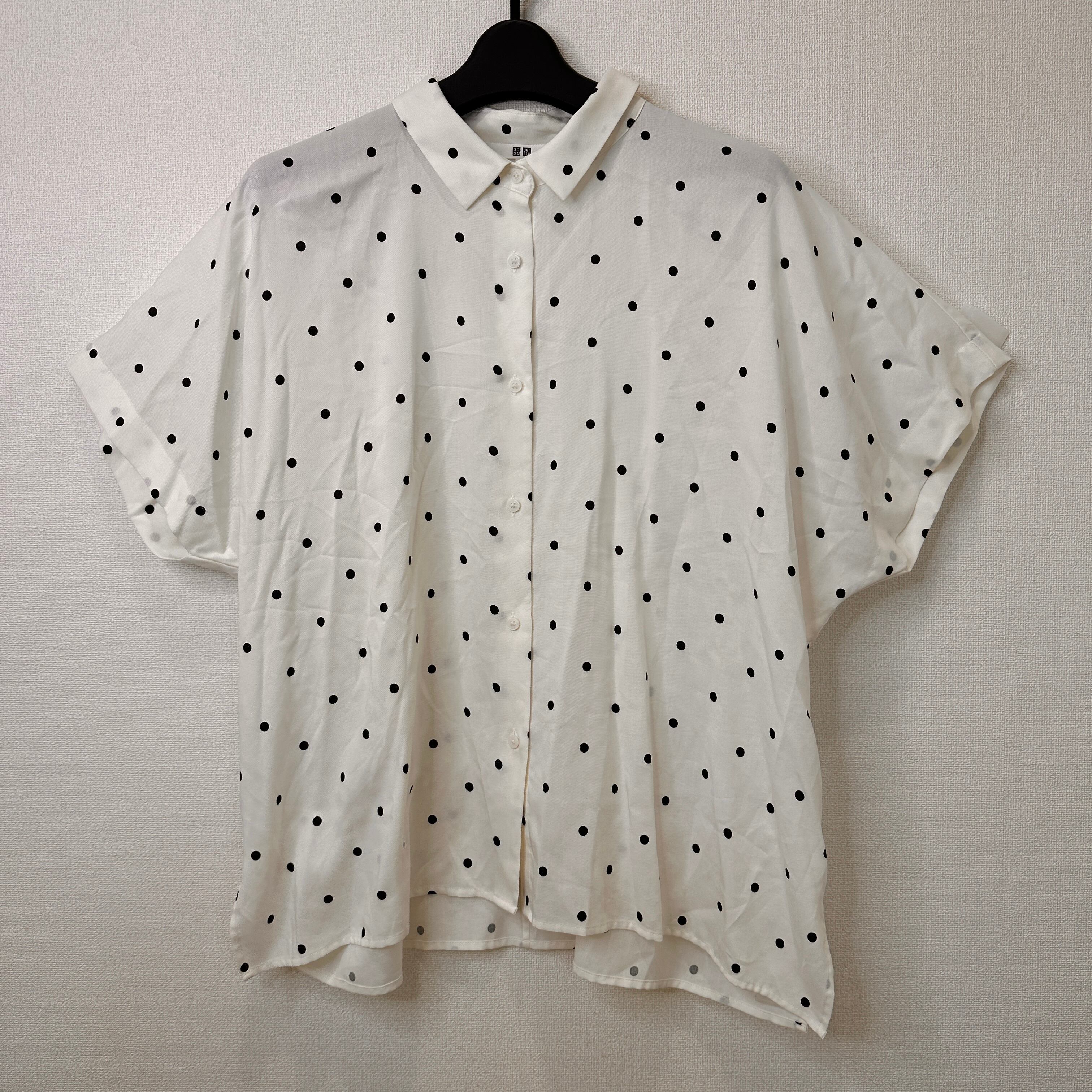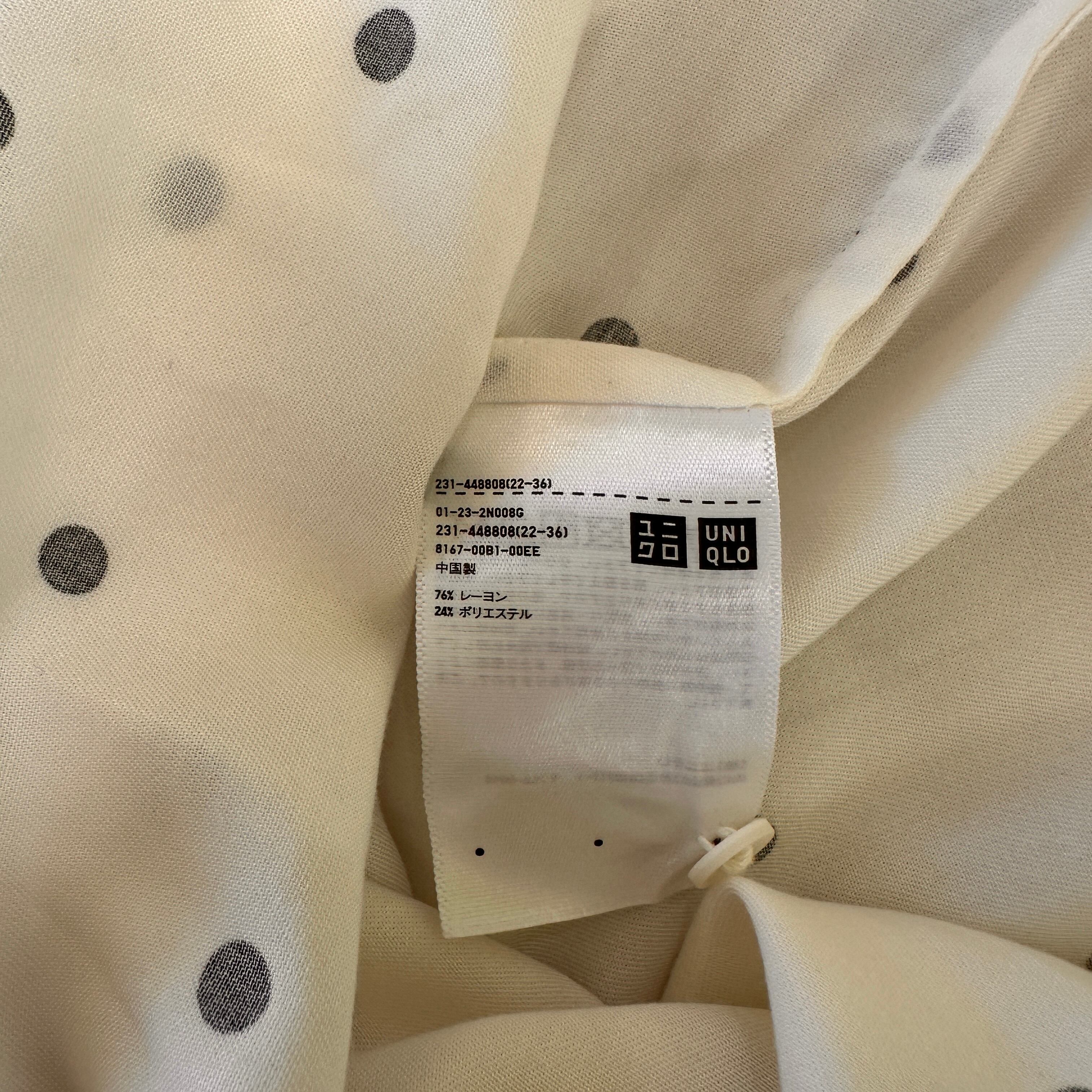 ユニクロ (UNIQLO) Vネック半袖Tシャツ ドット 水玉 Lサイズ 白