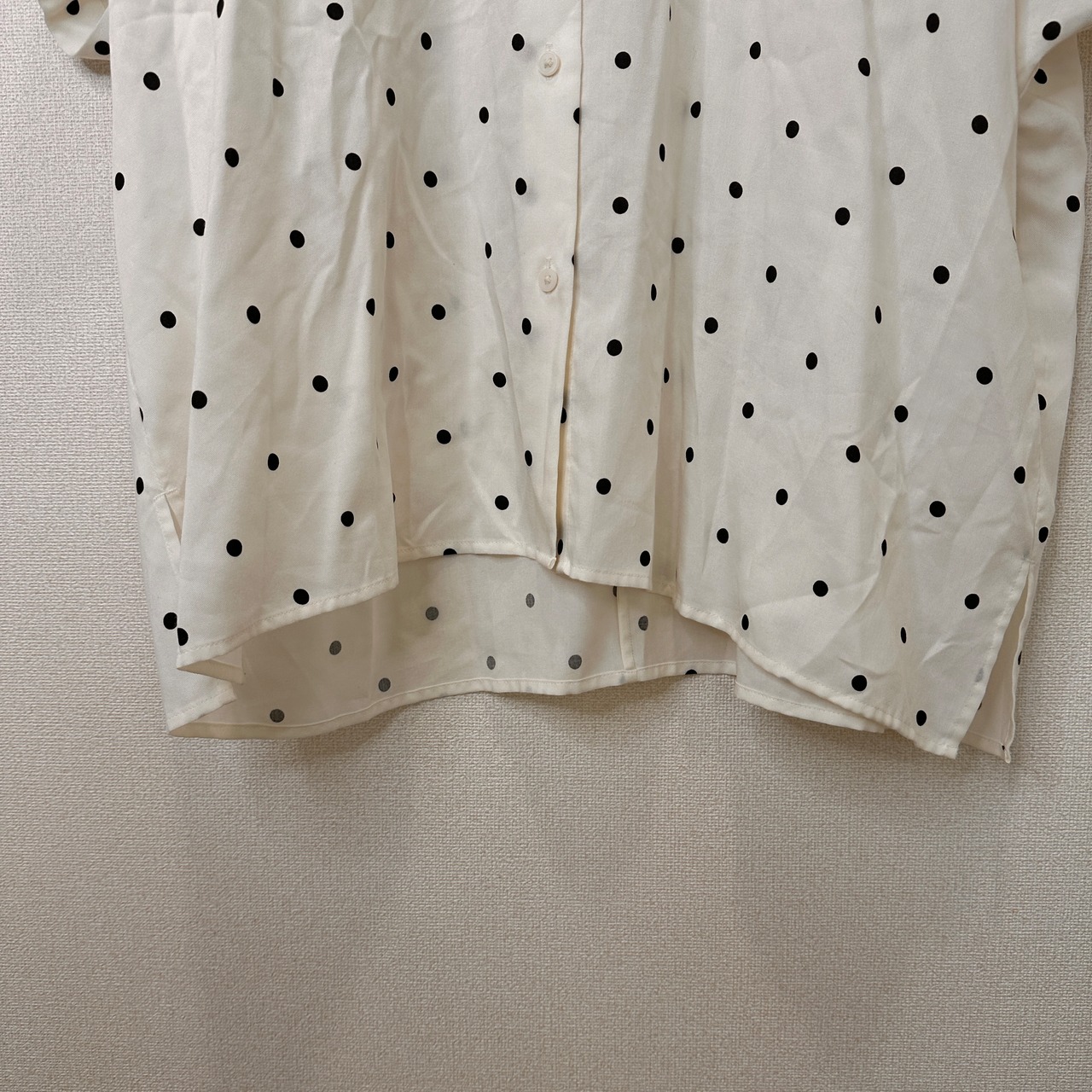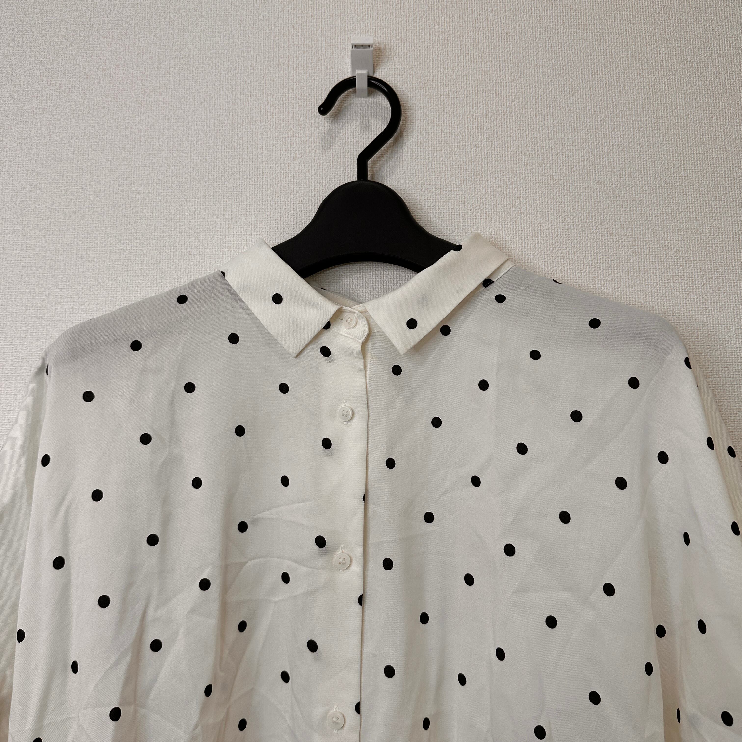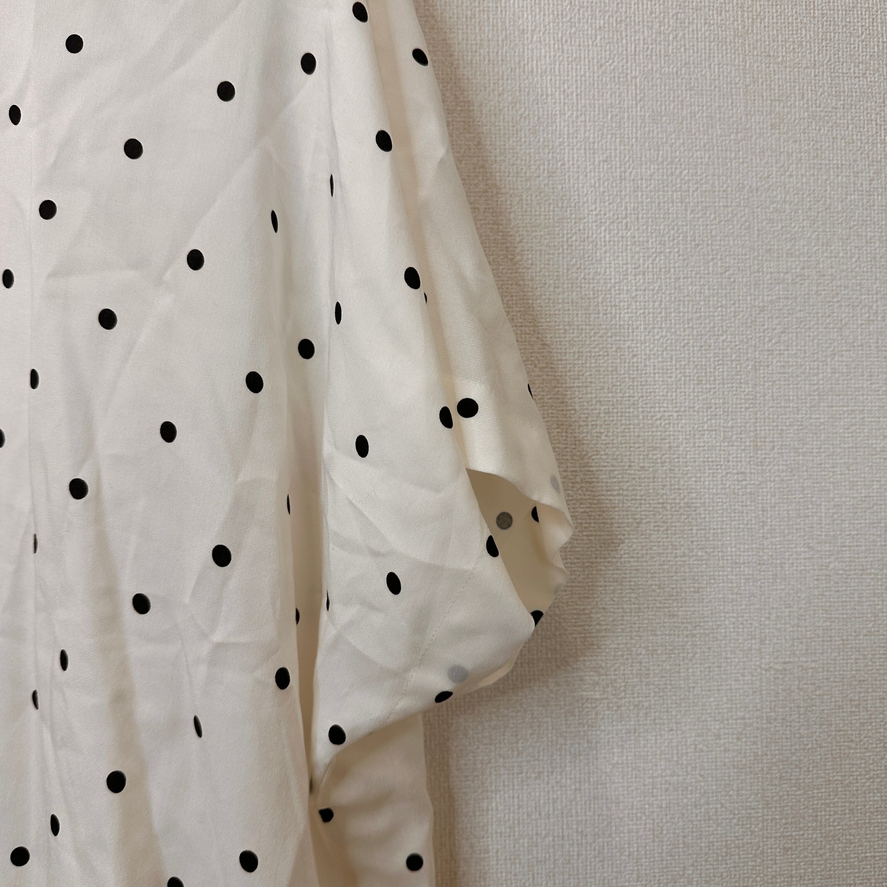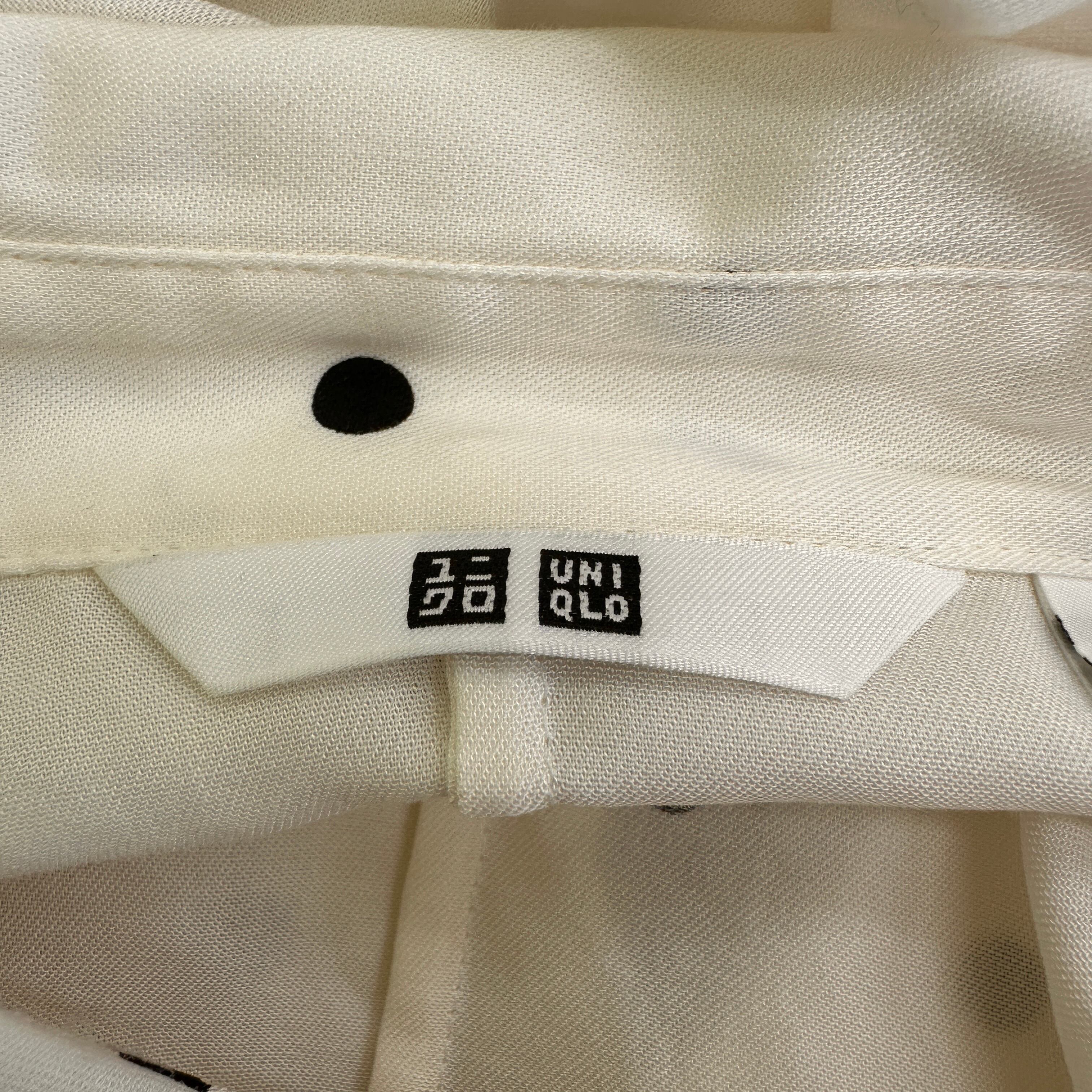 ユニクロ (UNIQLO) Vネック半袖Tシャツ ドット 水玉 Lサイズ 白