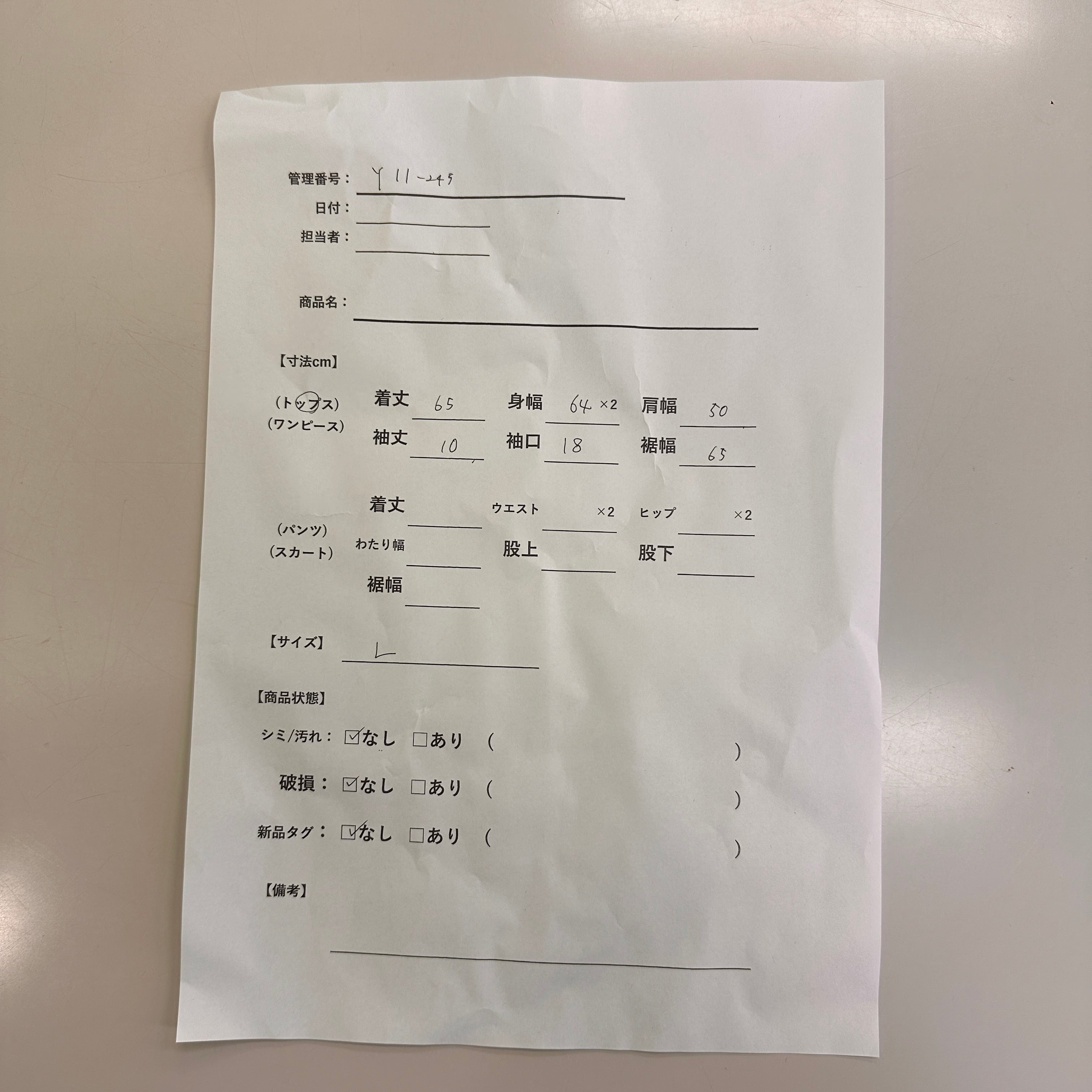 ※素人の採寸のため、誤差が生じる場合がございます。