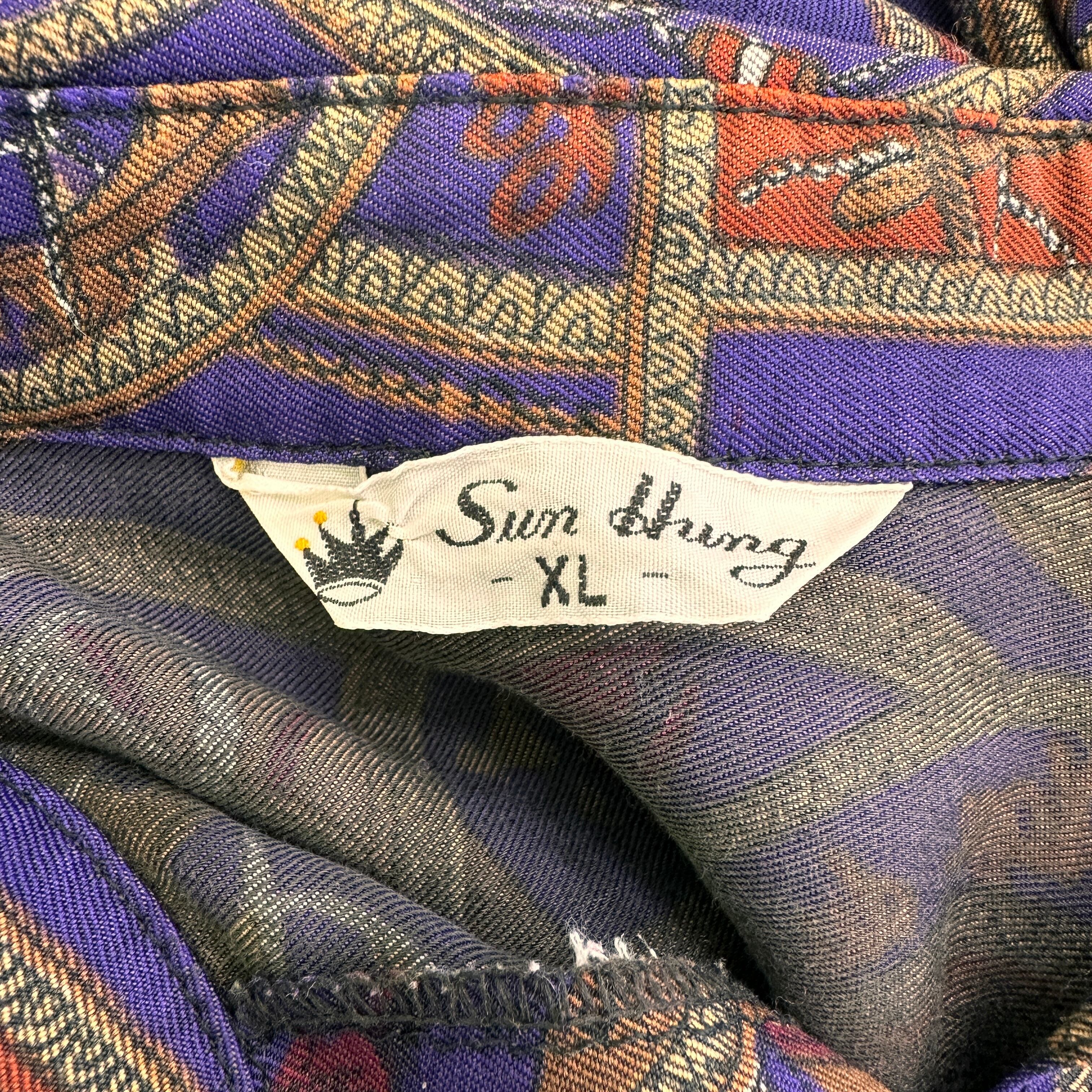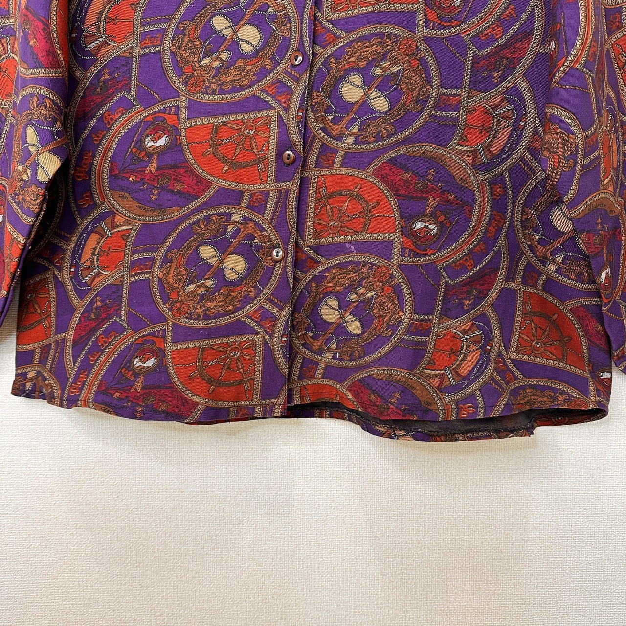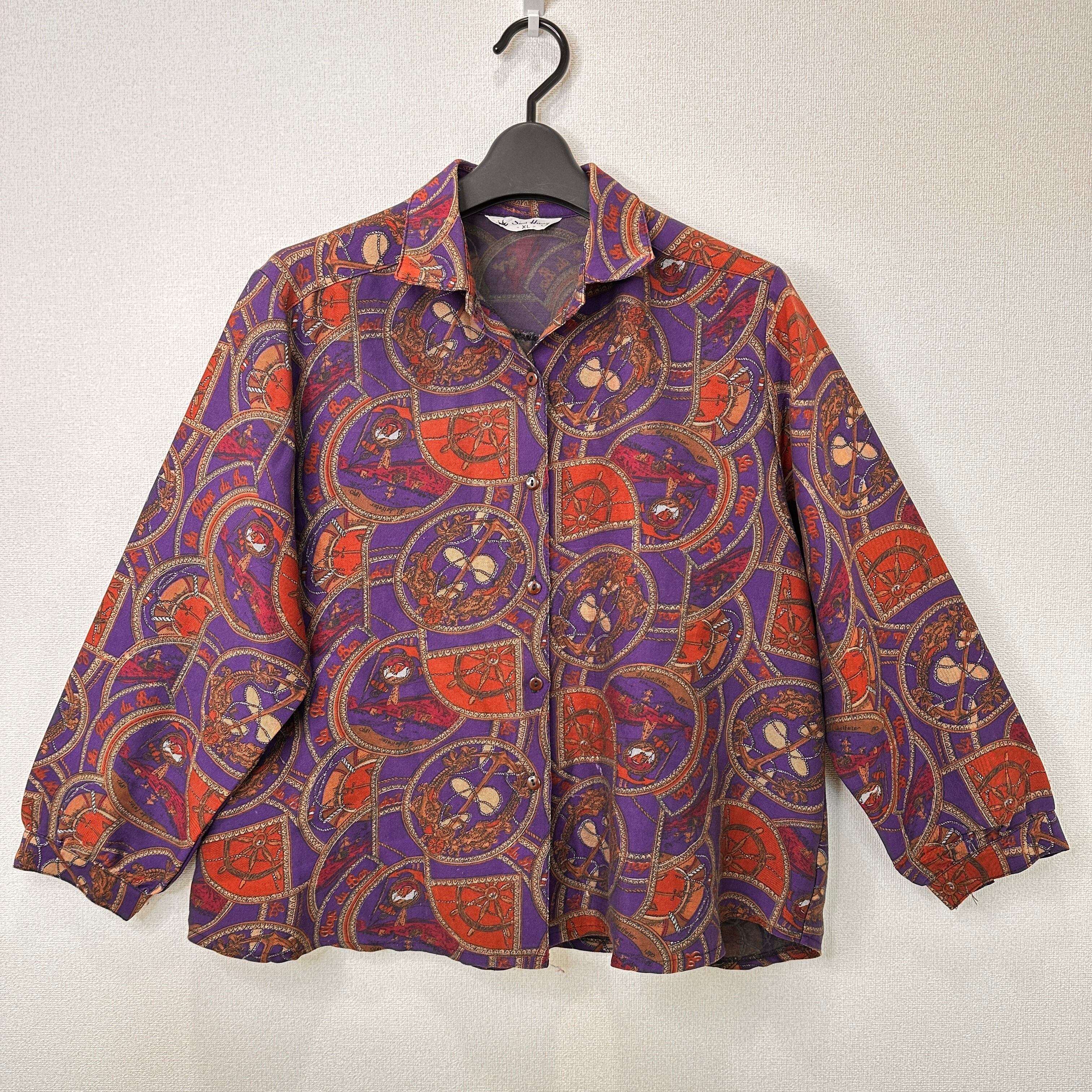 レトロ柄 総柄 シャツ ブラウス パープル/オレンジ XLサイズ Sun Hung