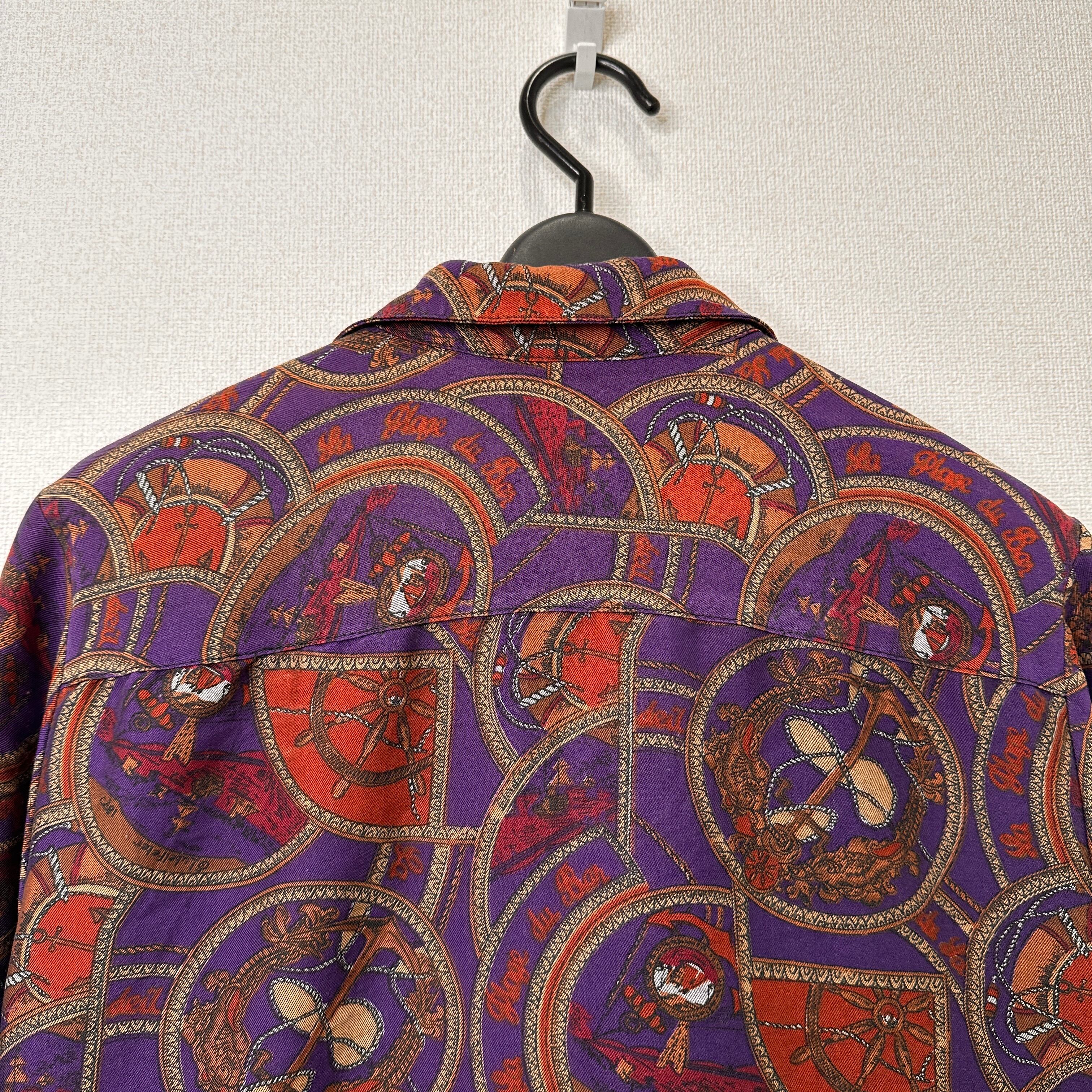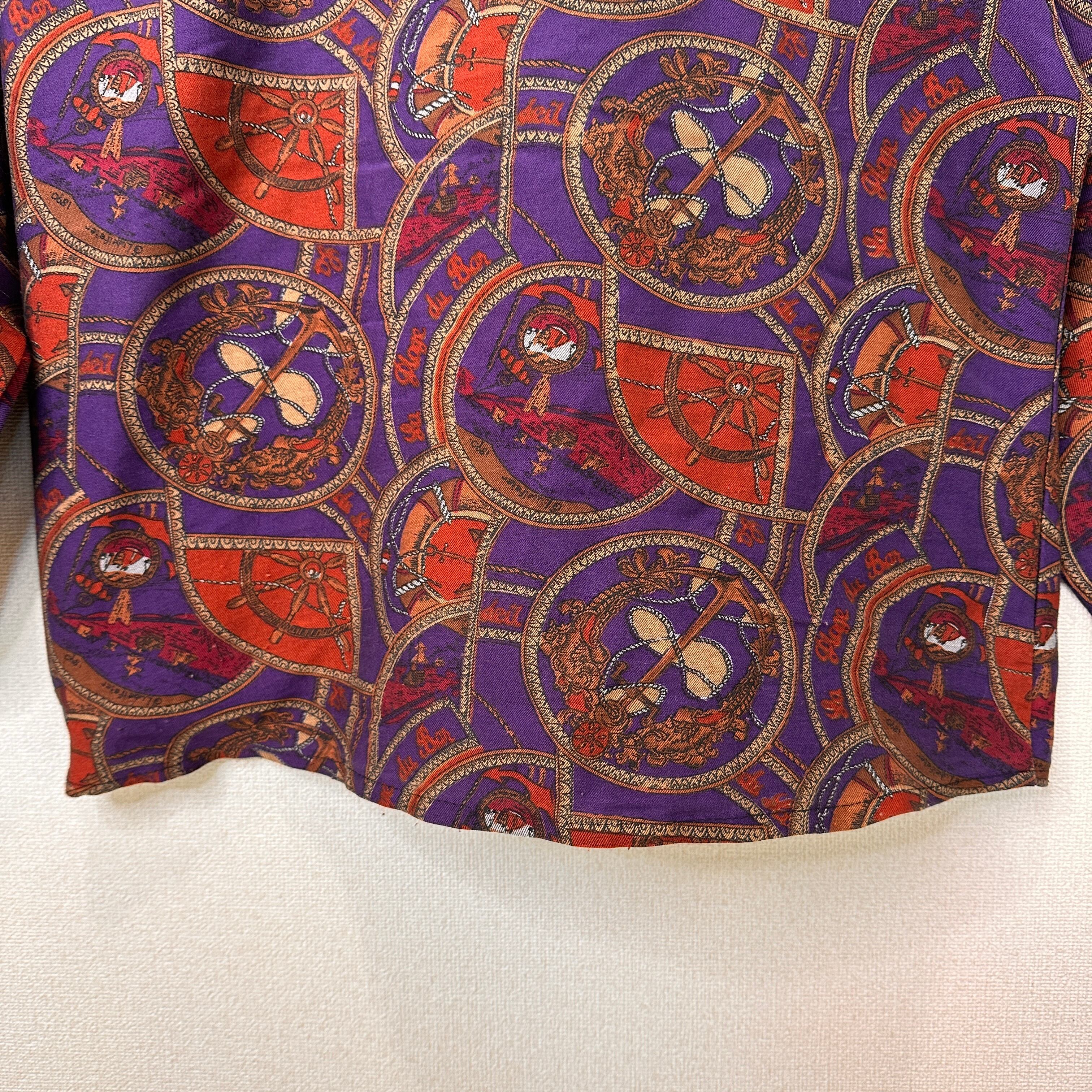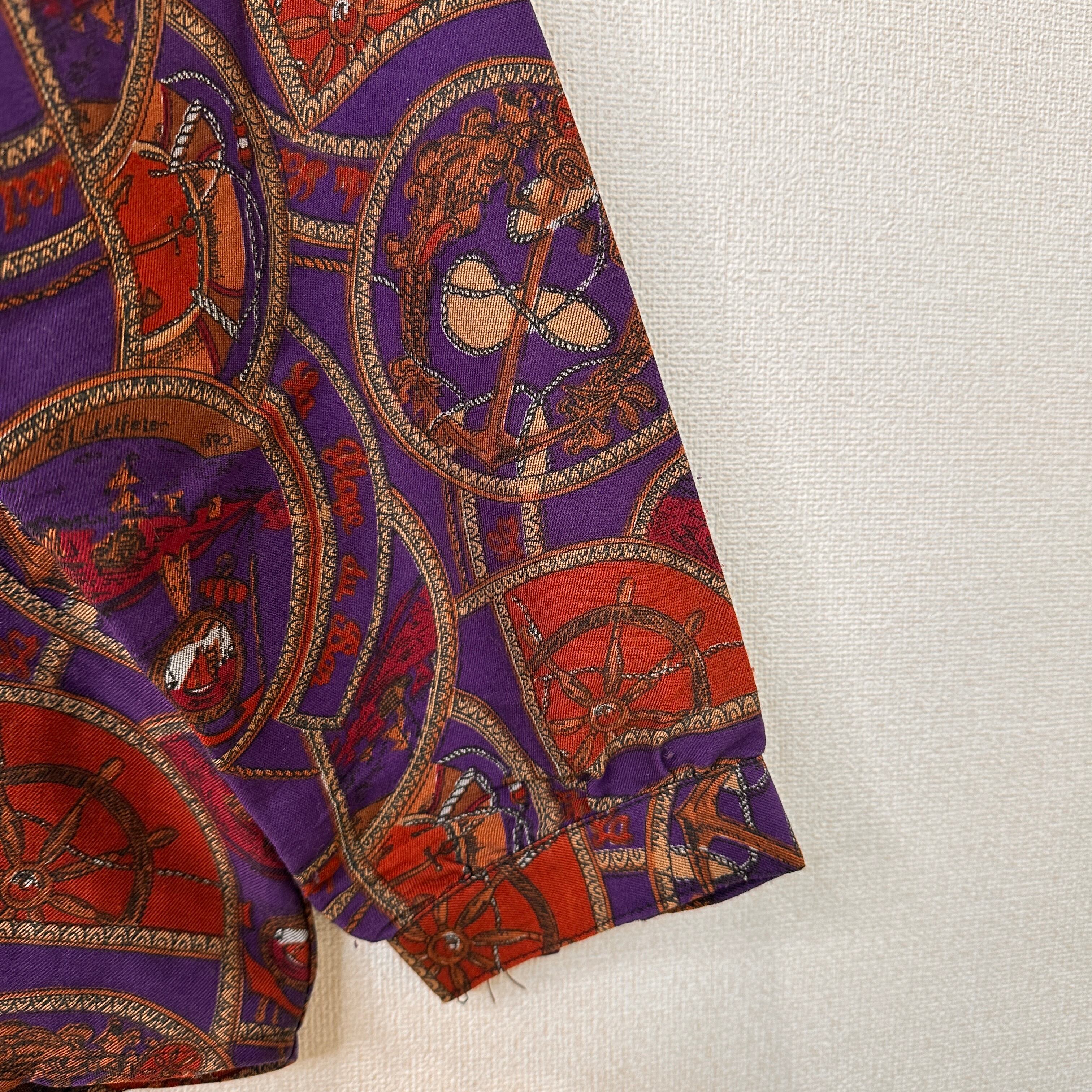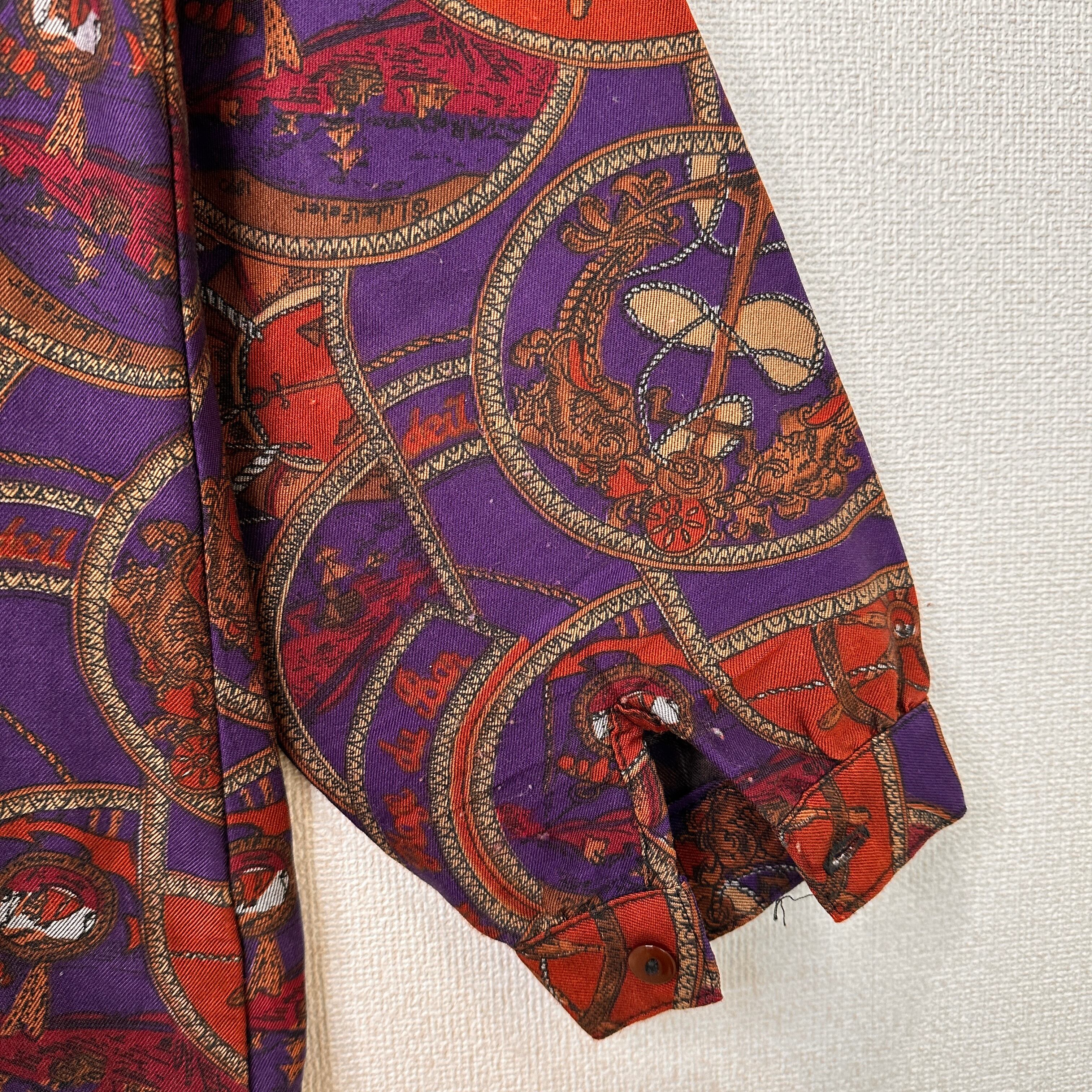 レトロ柄 総柄 シャツ ブラウス パープル/オレンジ XLサイズ Sun Hung