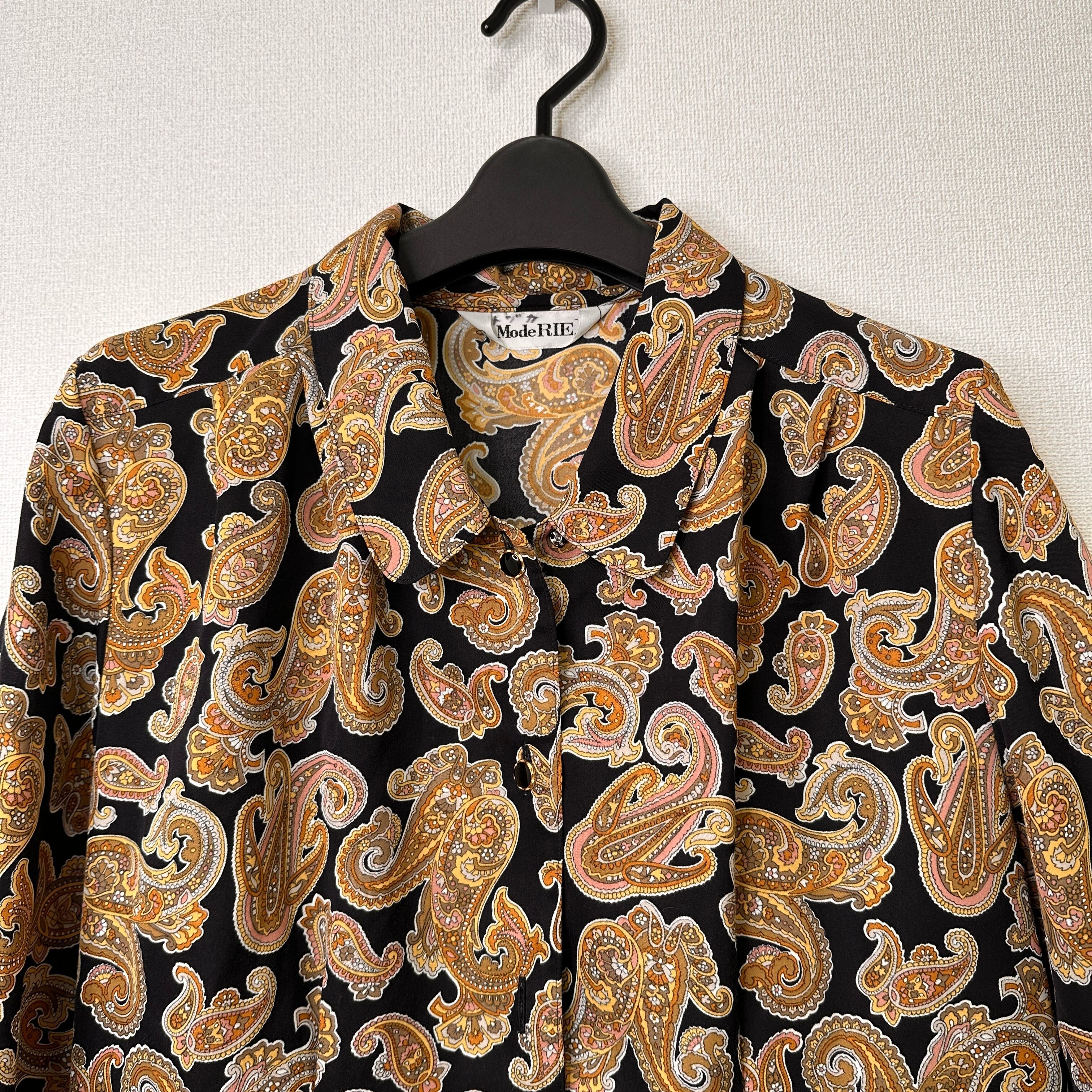 ModeRIE(モードリエ) ペイズリー柄 長袖ブラウス 黒/イエロー/ピンク