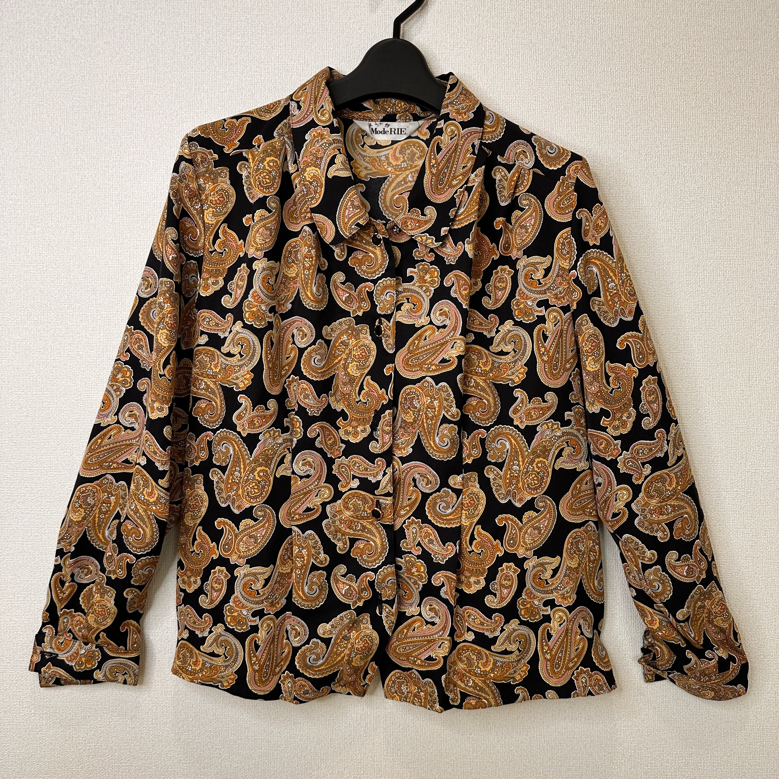 ModeRIE(モードリエ) ペイズリー柄 長袖ブラウス 黒/イエロー/ピンク サイズ : L