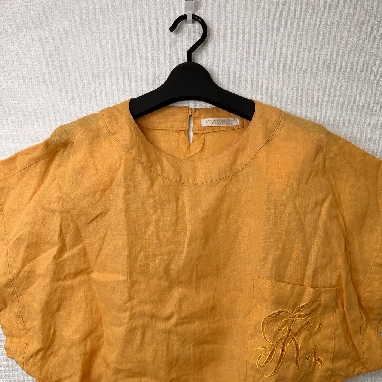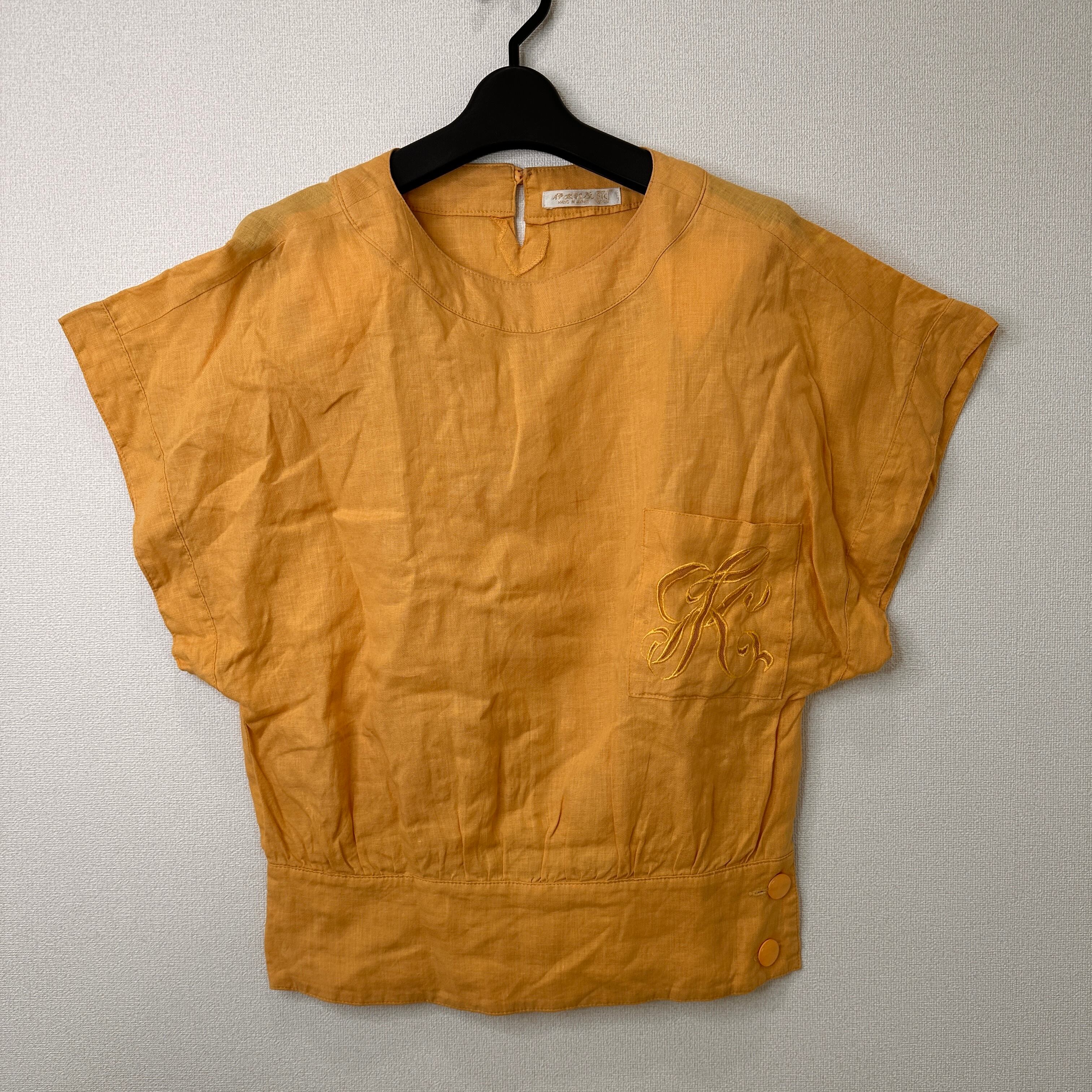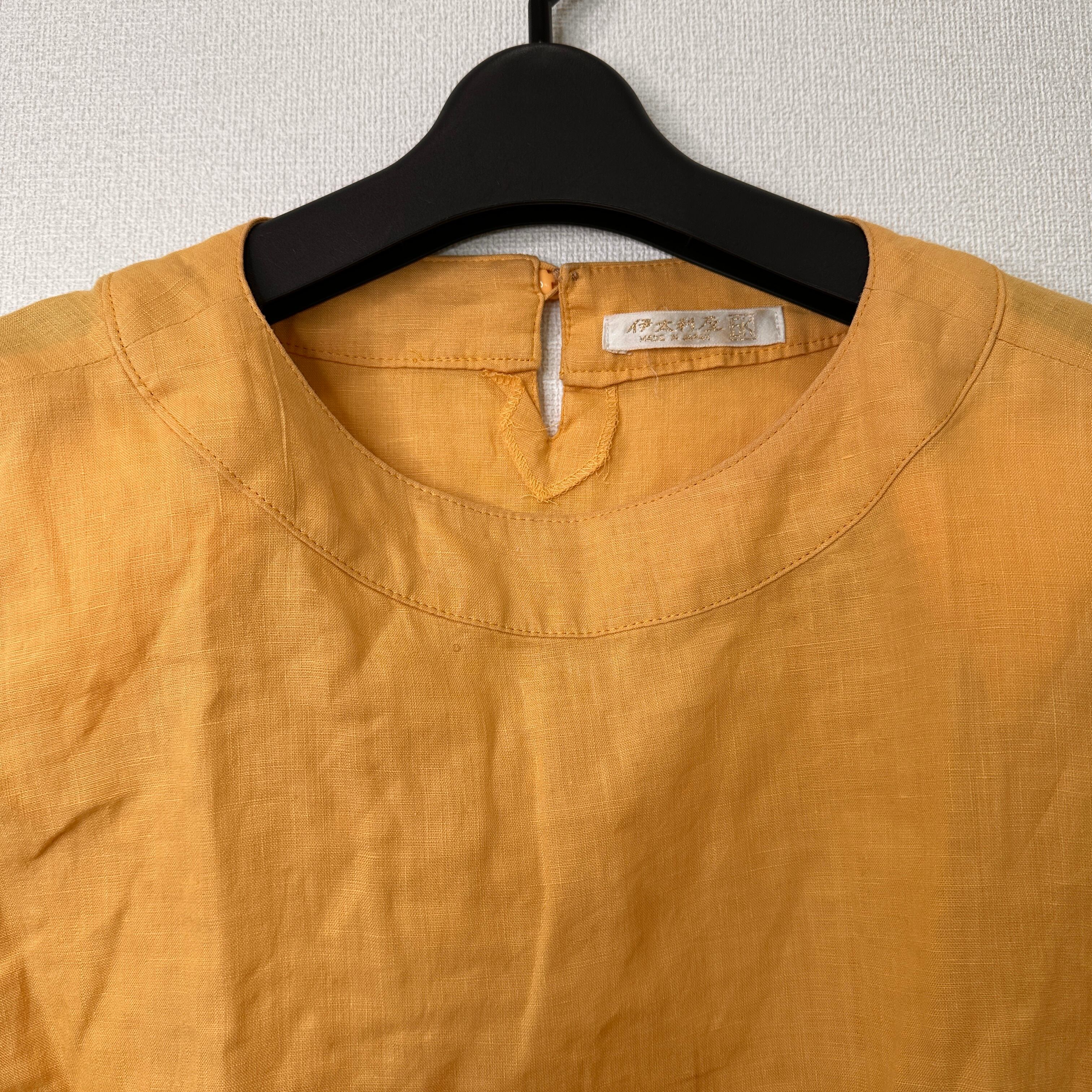 伊太利屋 GK 麻100% ドルマン風ブラウス オレンジイエロー