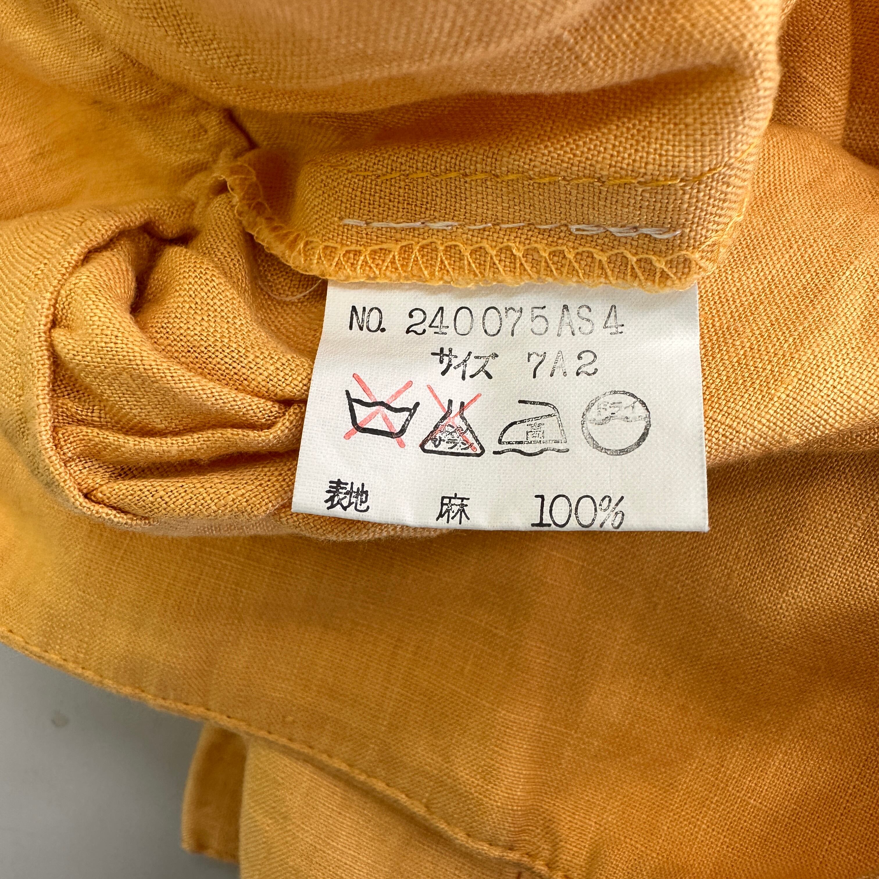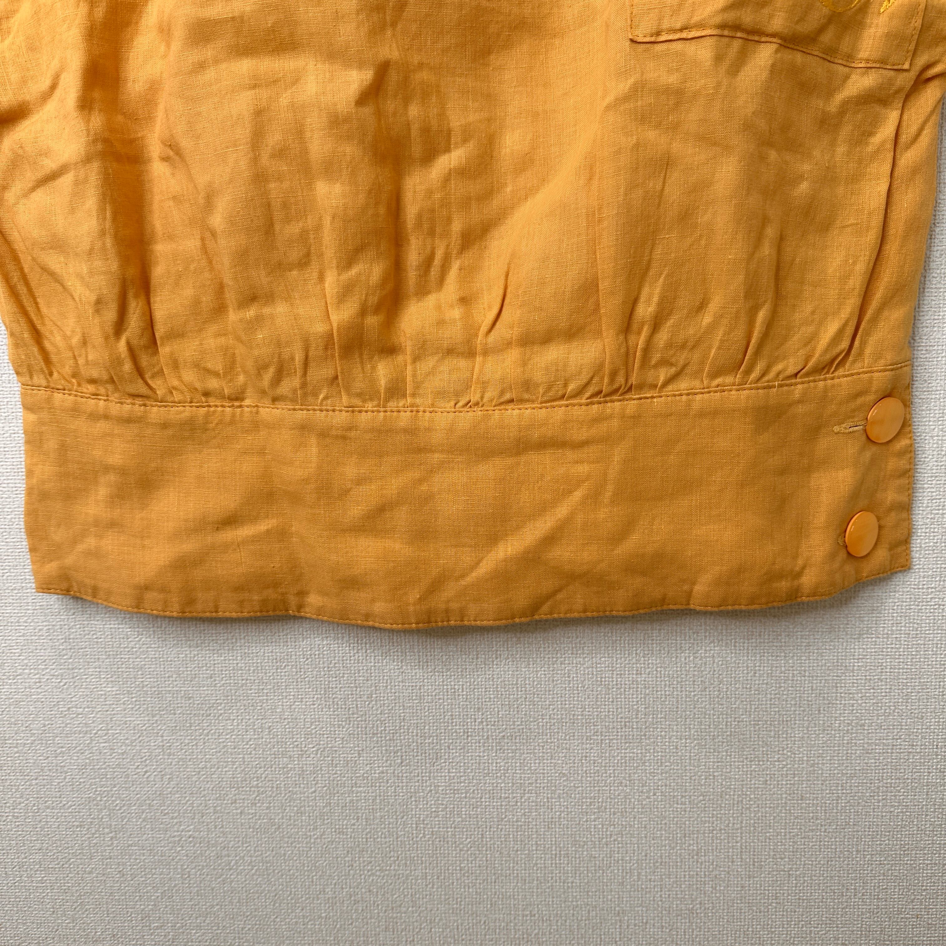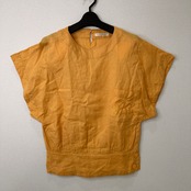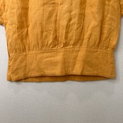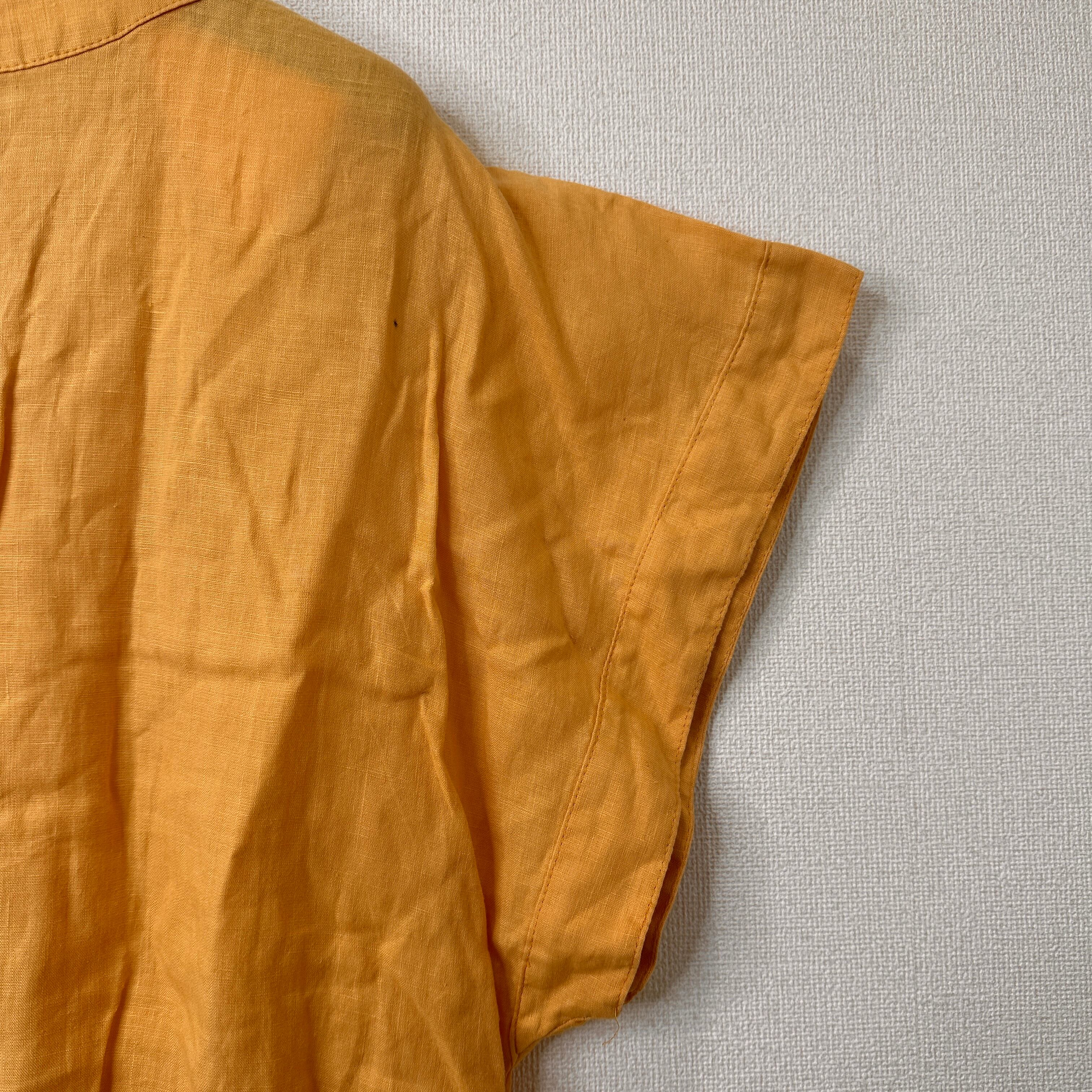 鮮やかなオレンジがかったイエロー(山吹色/からし色系)のリネン(麻)100%素材のブラウスです。