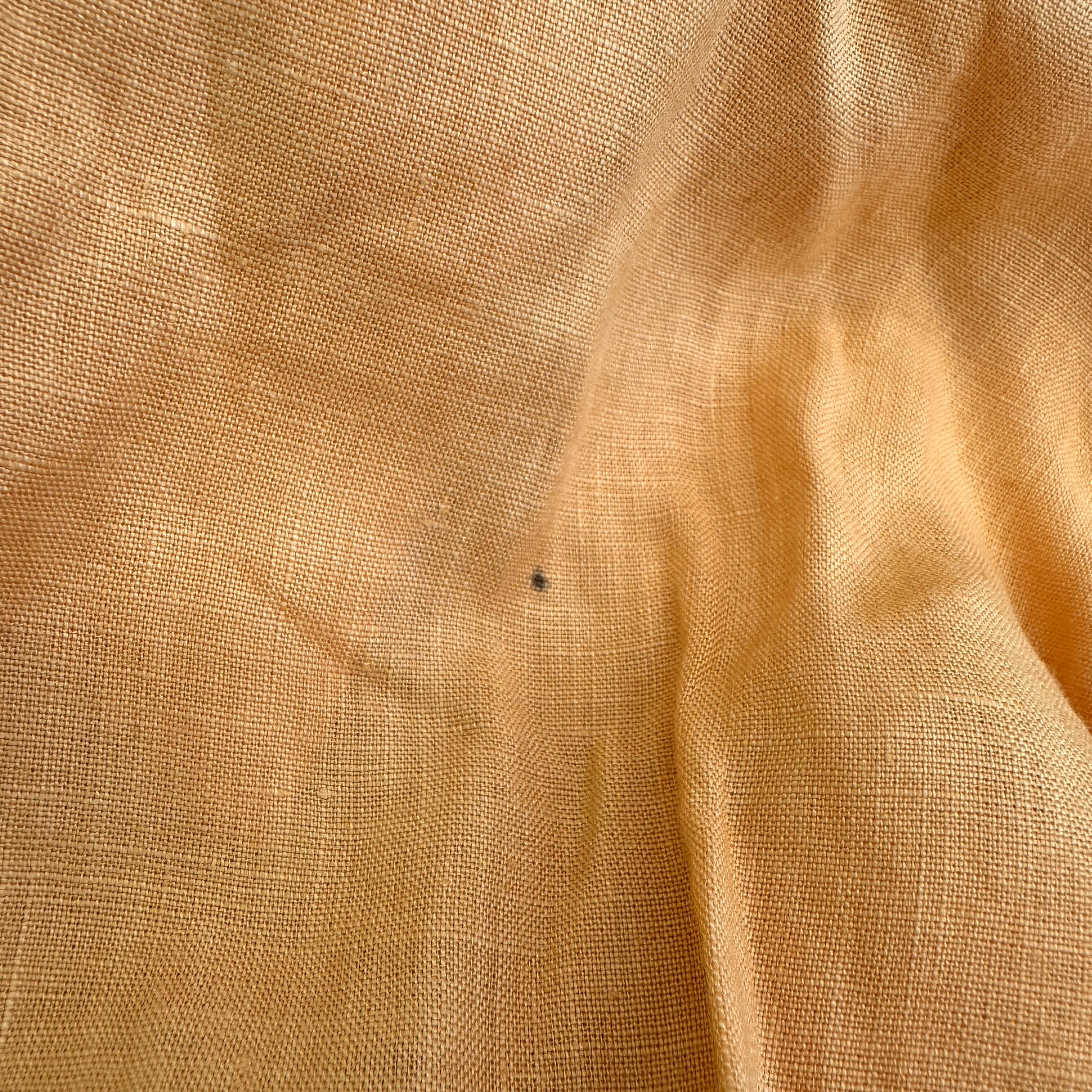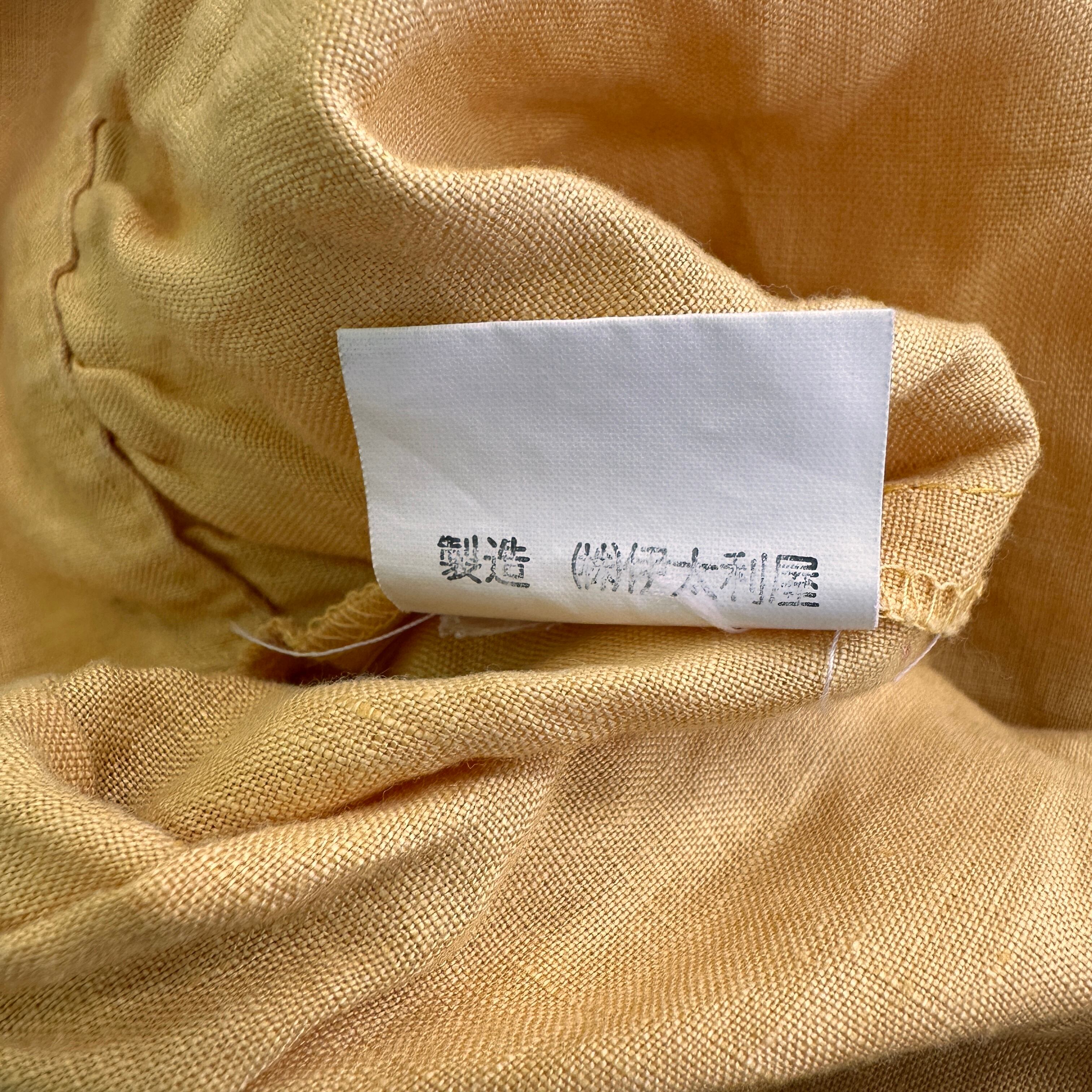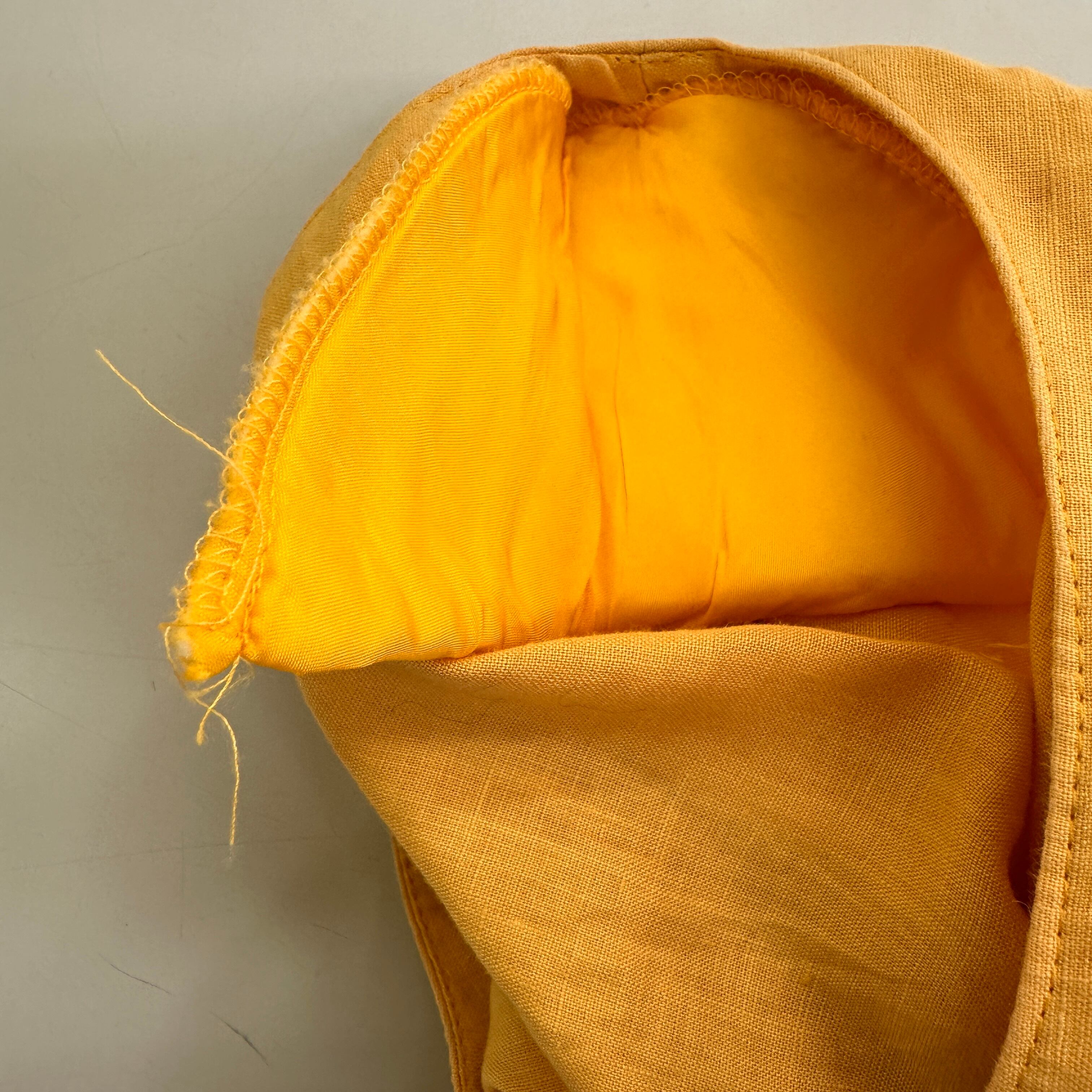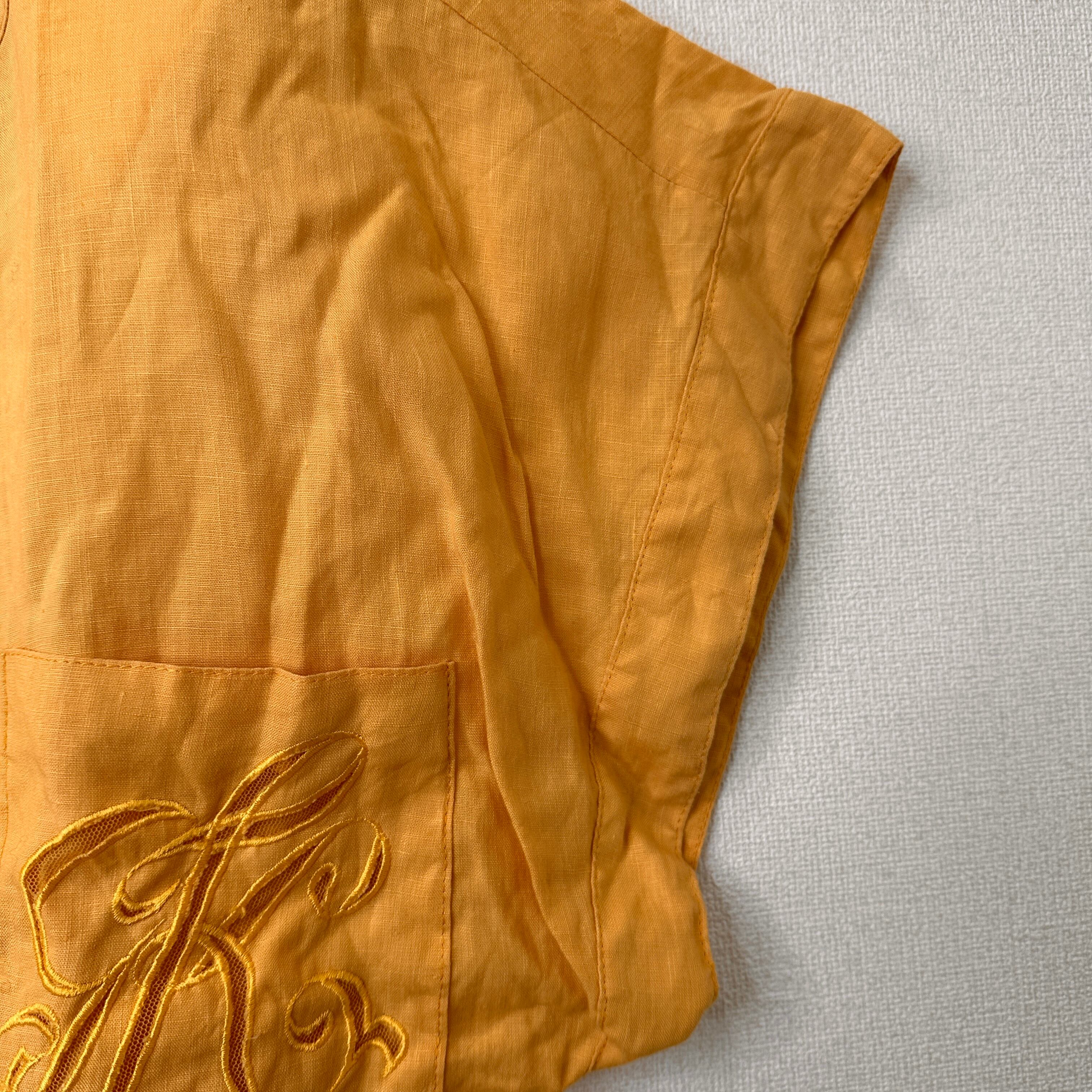 鮮やかなオレンジがかったイエロー(山吹色/からし色系)のリネン(麻)100%素材のブラウスです。