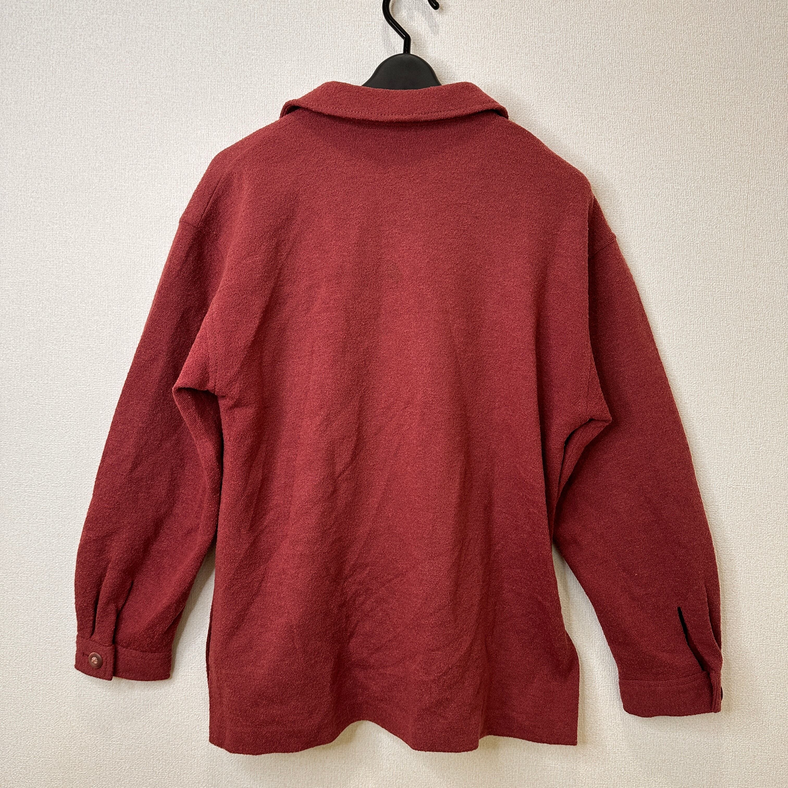 pierre cardin PARIS ウール混 シャギーシャツジャケット 赤茶