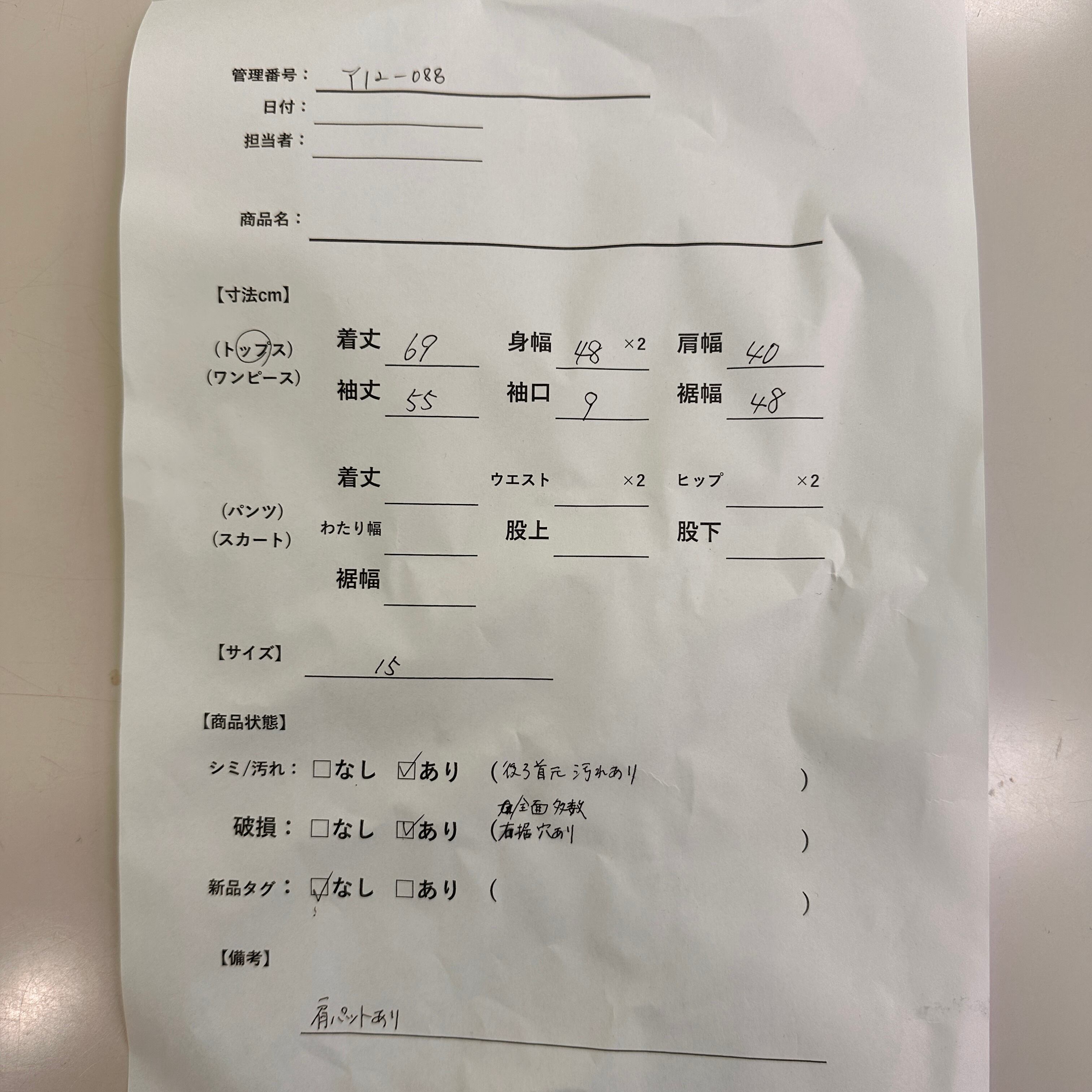 ※素人の採寸のため、誤差が生じる場合がございます。