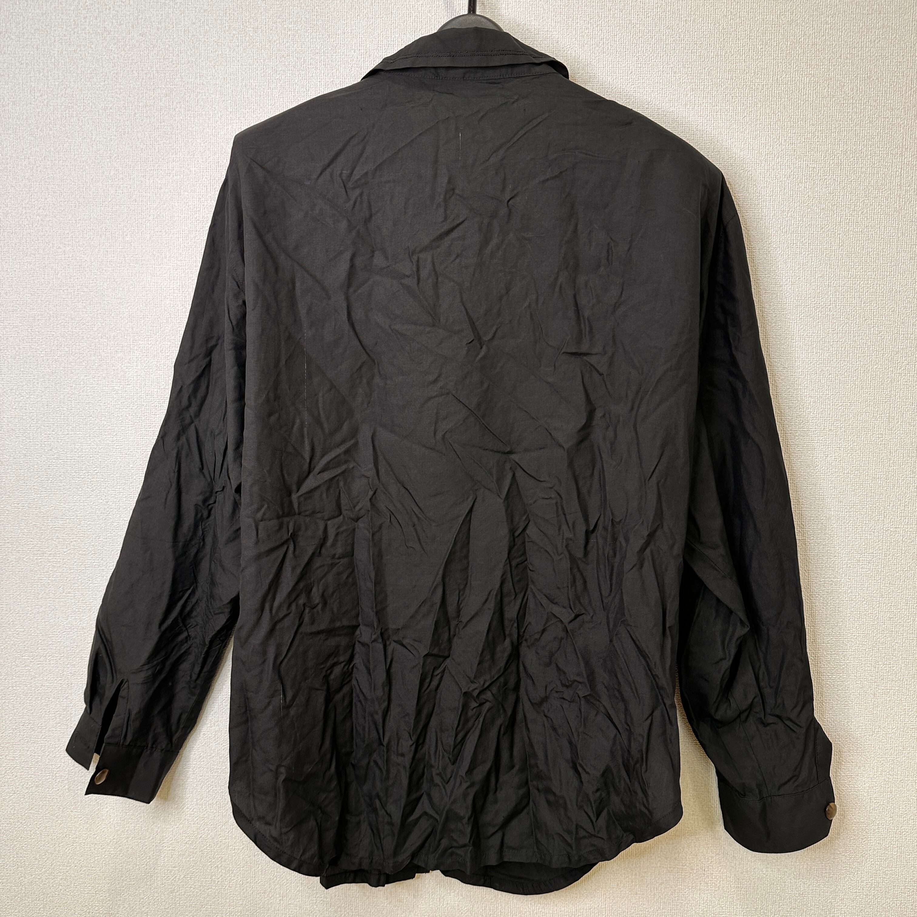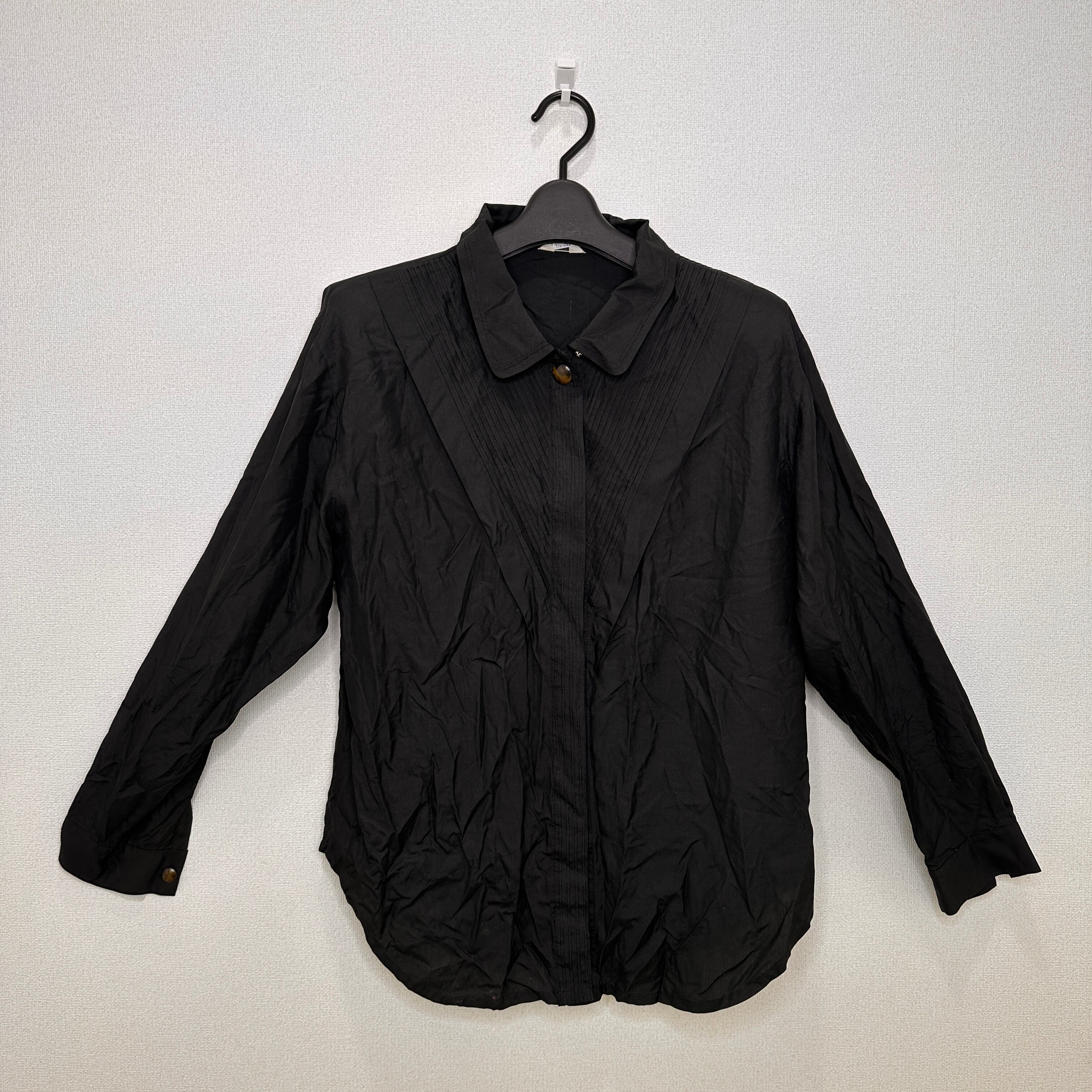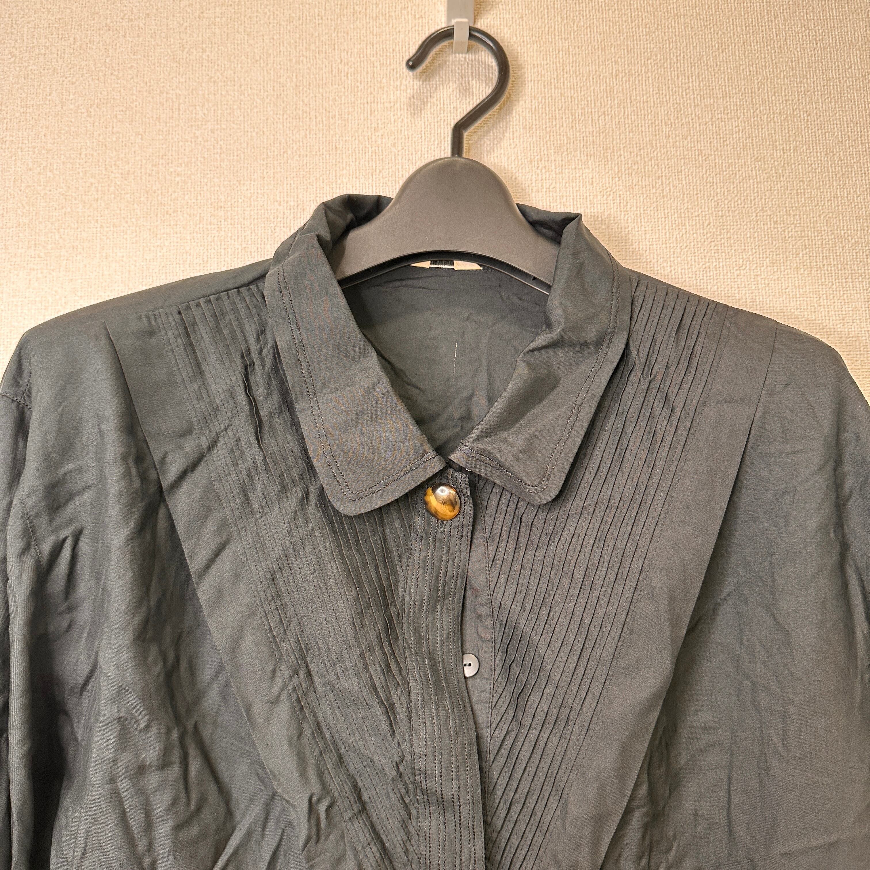Qaran 黒 無地 長袖 シャツ ブラウス 綿100% ヴィンテージ 肩パッドあり