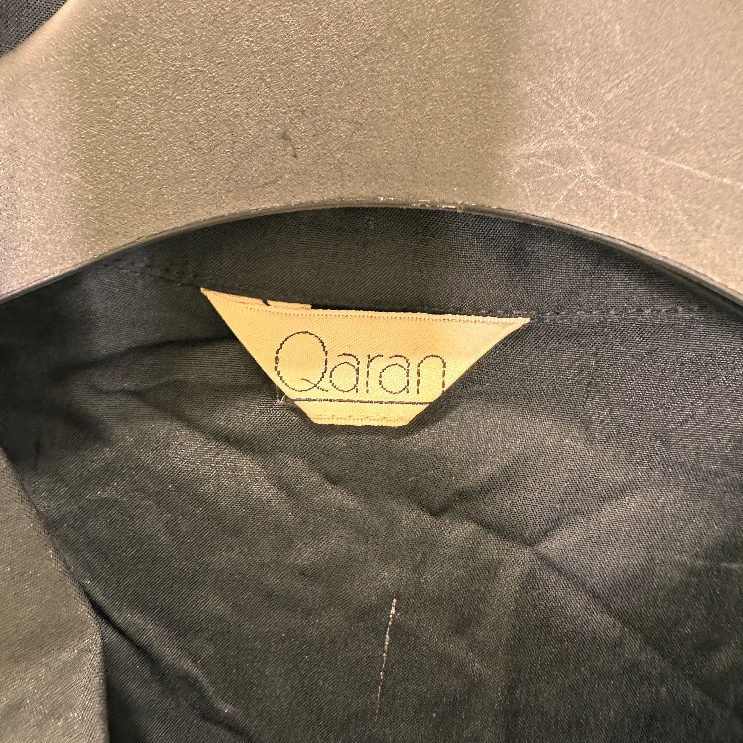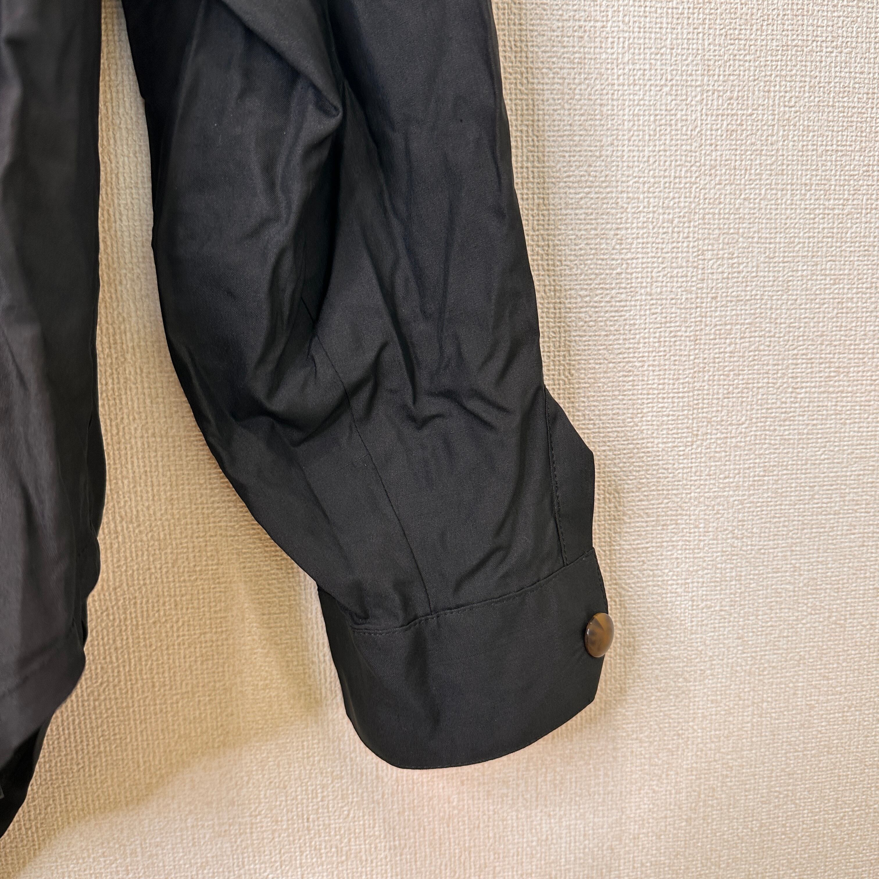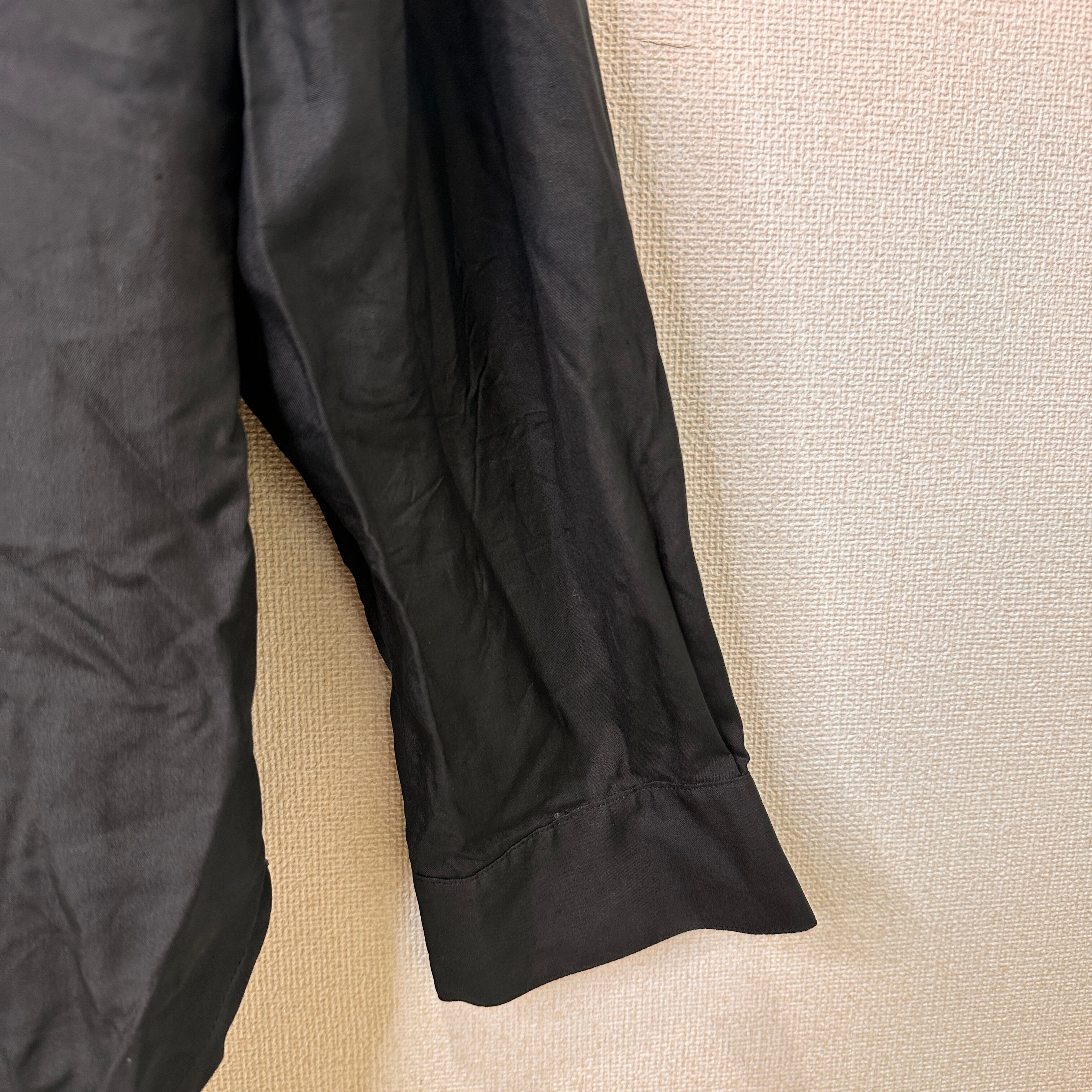 Qaran 黒 無地 長袖 シャツ ブラウス 綿100% ヴィンテージ 肩パッドあり