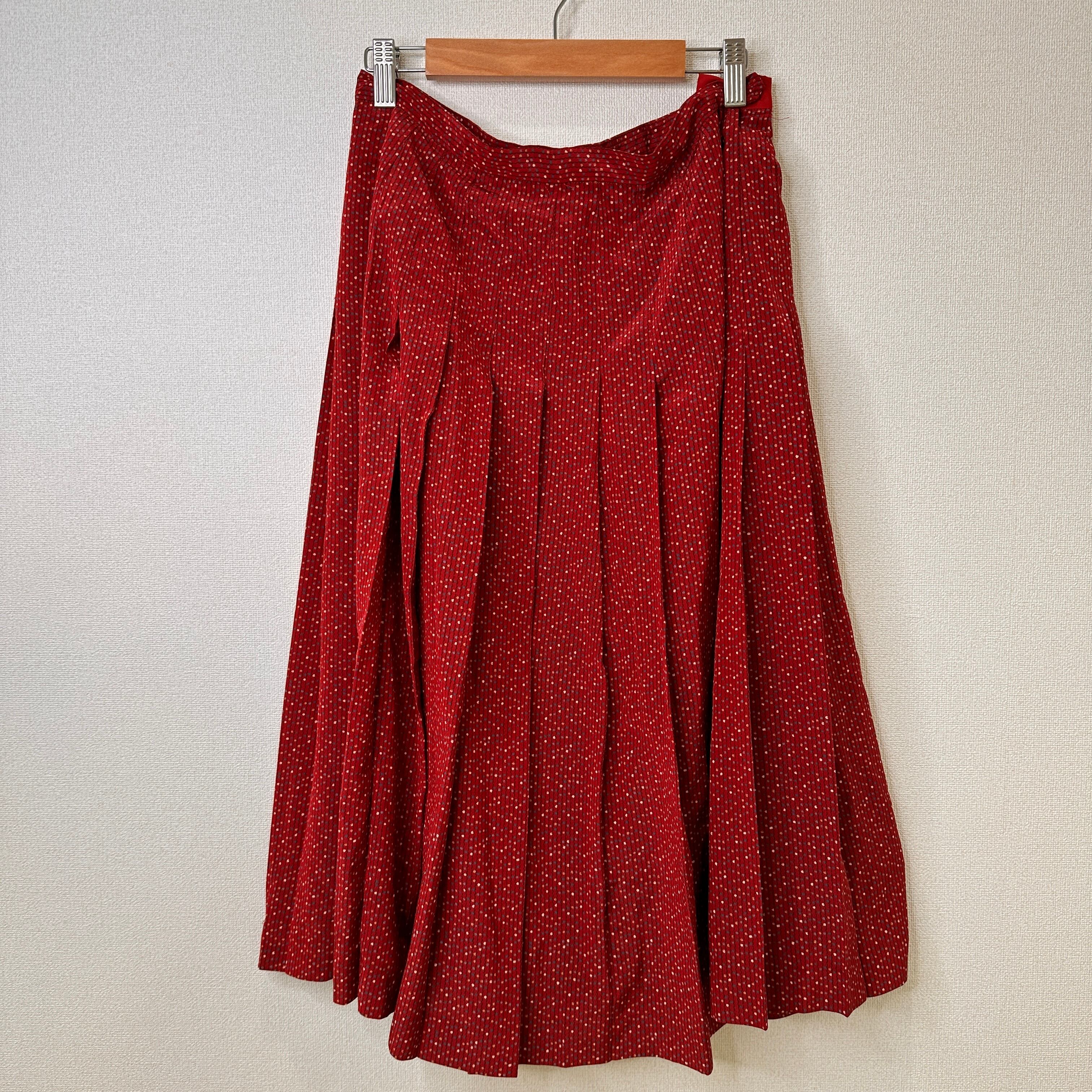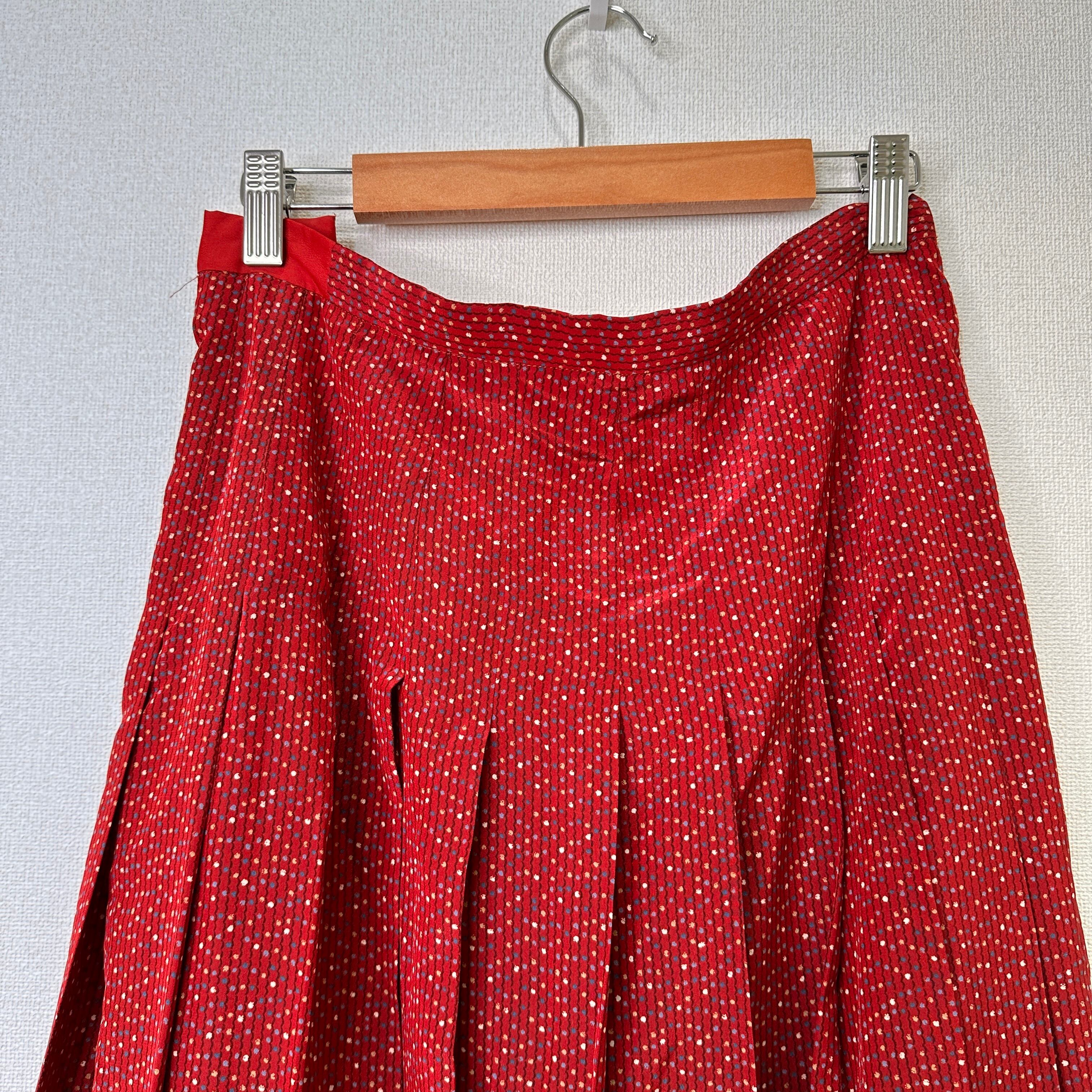 ROPE LA MODE MADEMOISELLE ロペ レッド系 ドット柄 プリーツ ロングスカート 9 レディース M〜L 相当