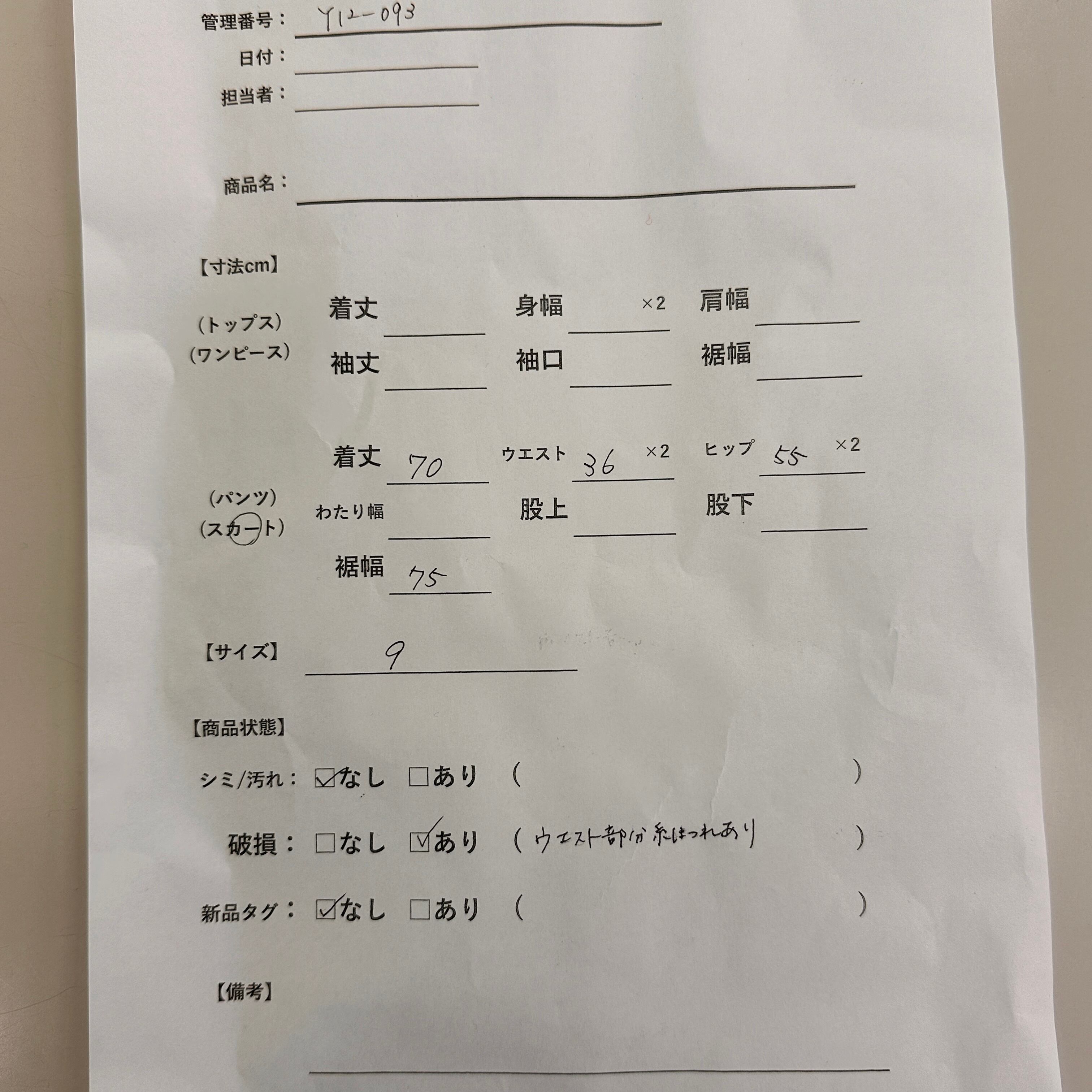 裏地付き。ウエスト部分に破損の記載がありますが、写真で状態をご確認ください。