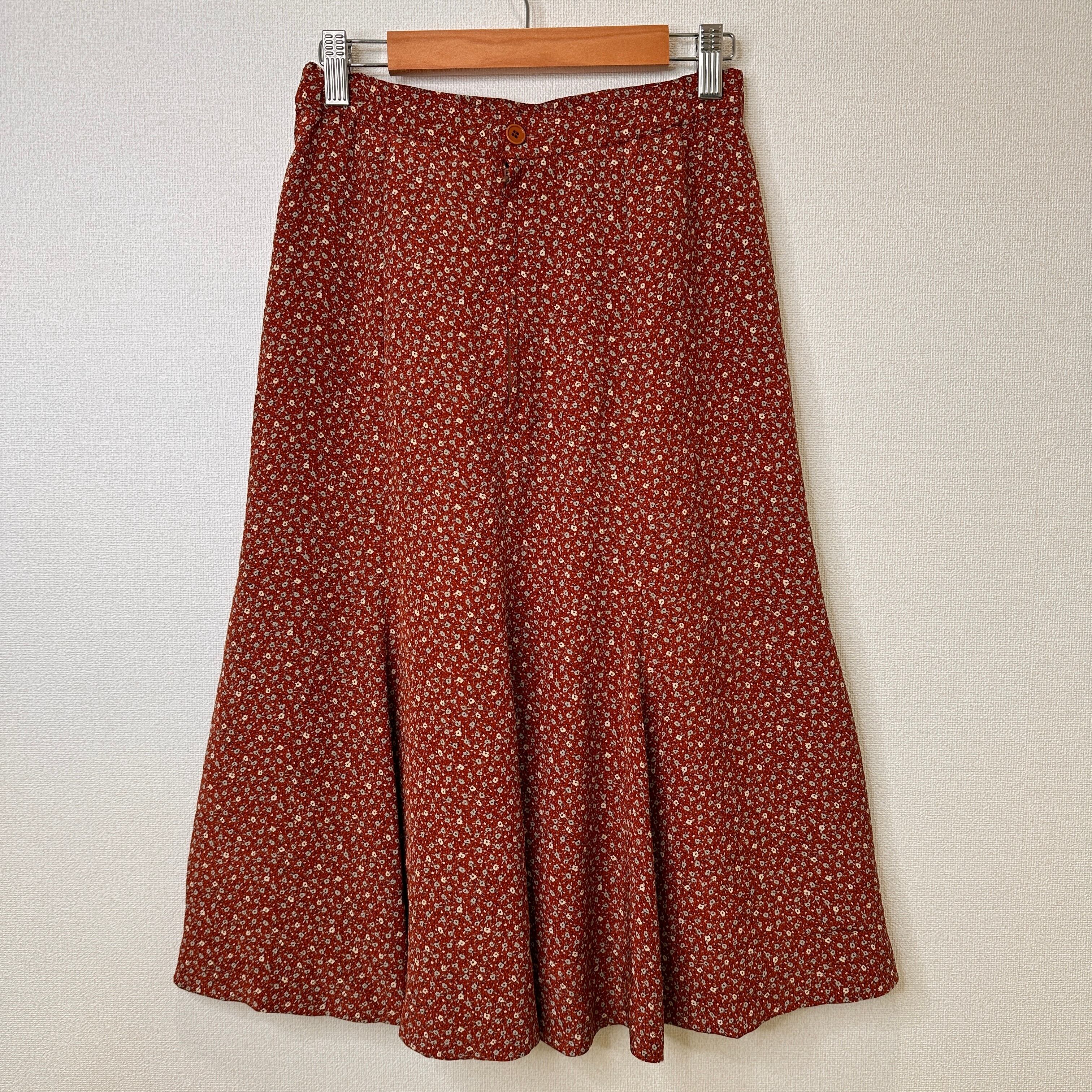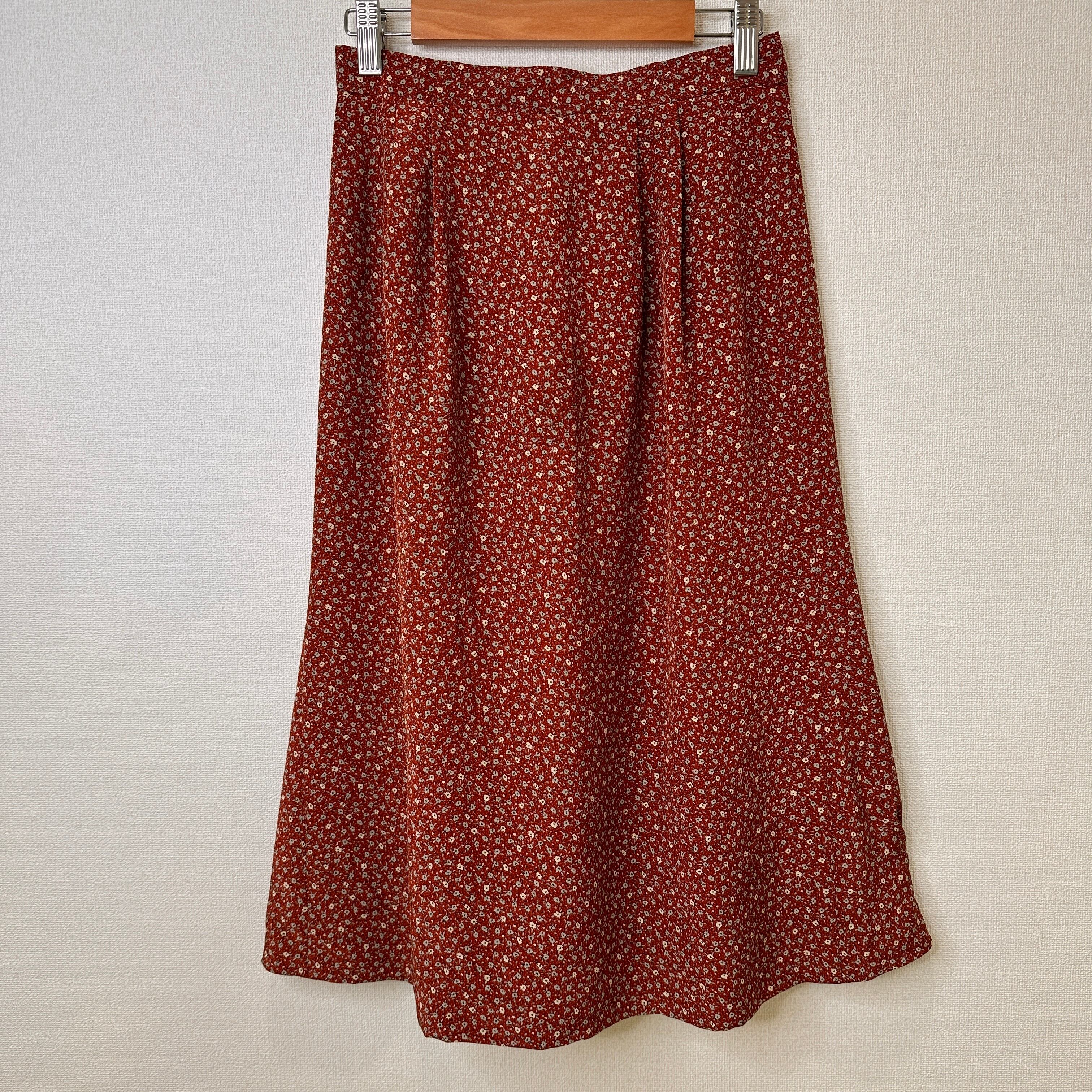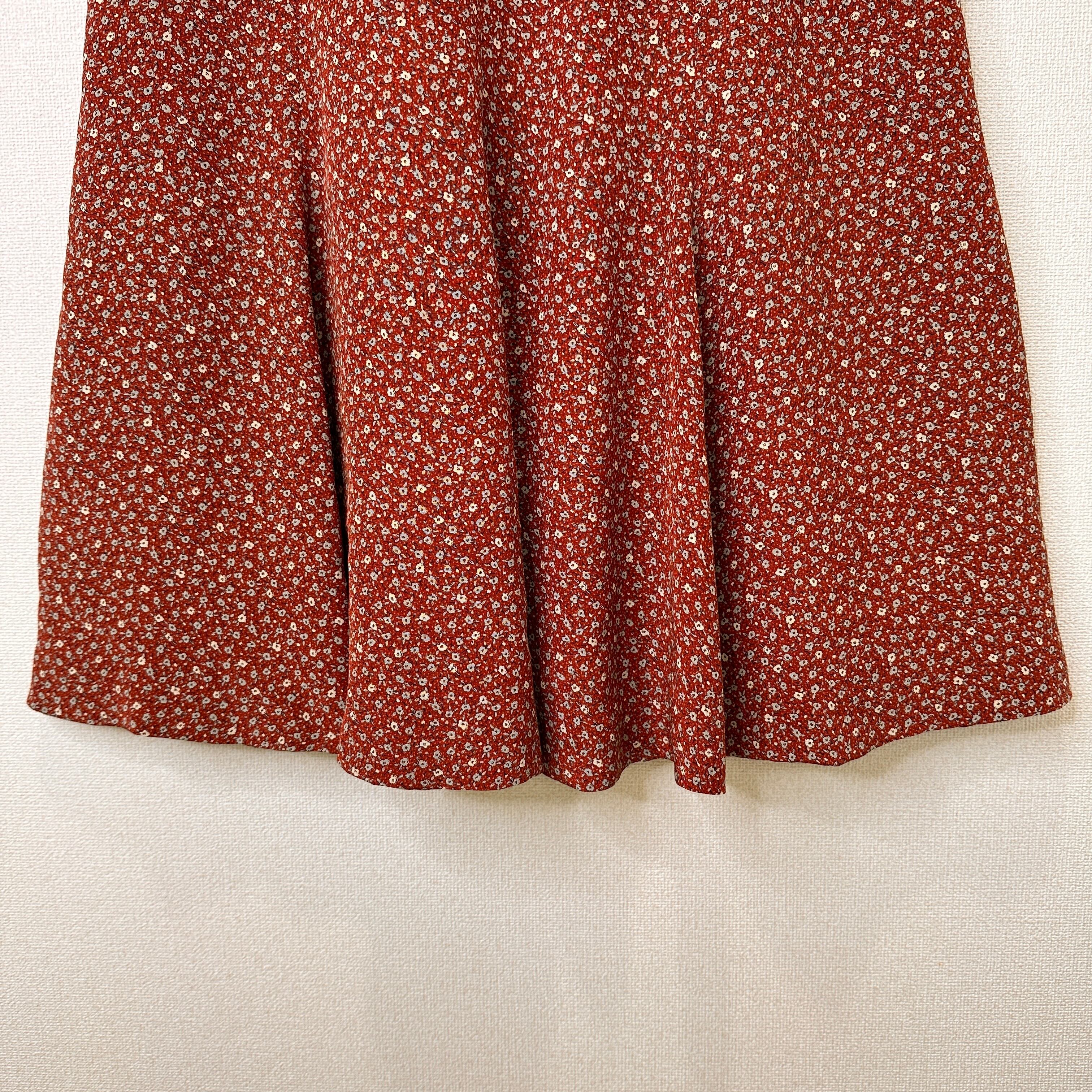 GRiSROP レトロ 小花柄 ロングスカート 赤茶系 Aライン フレア サイズ : M