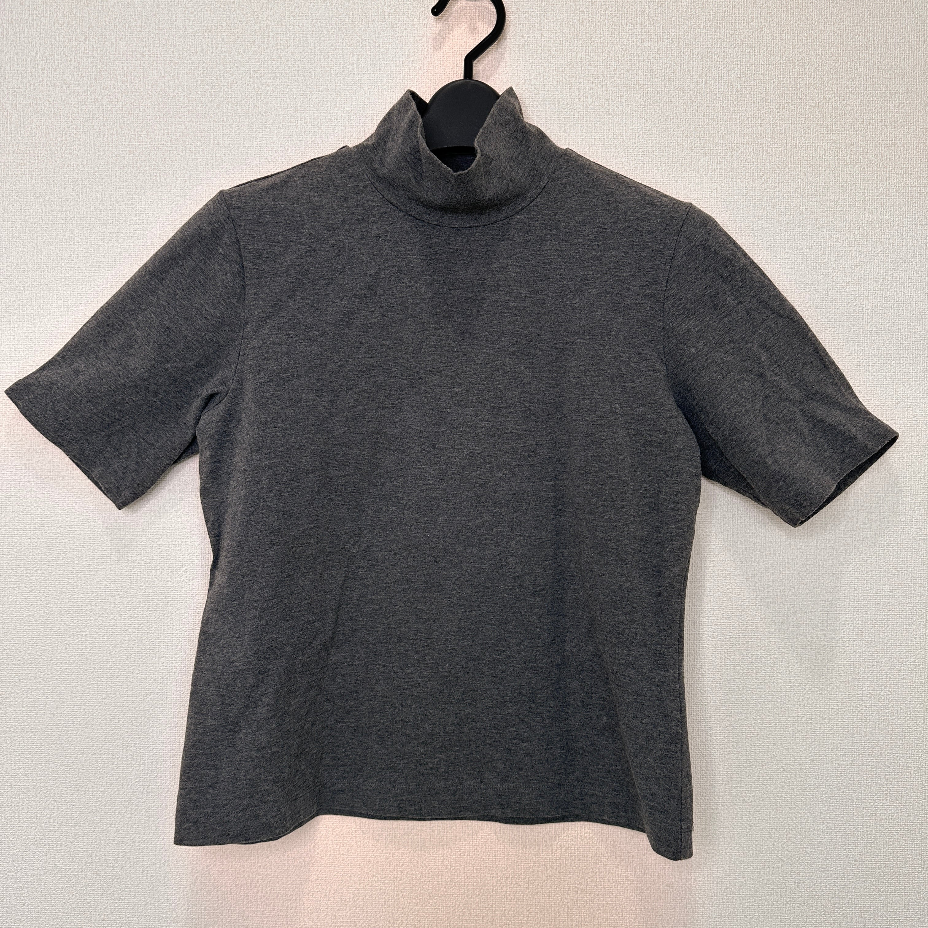LANDS' END ランズエンド ハイネックTシャツ M 半袖 チャコールグレー コットン混