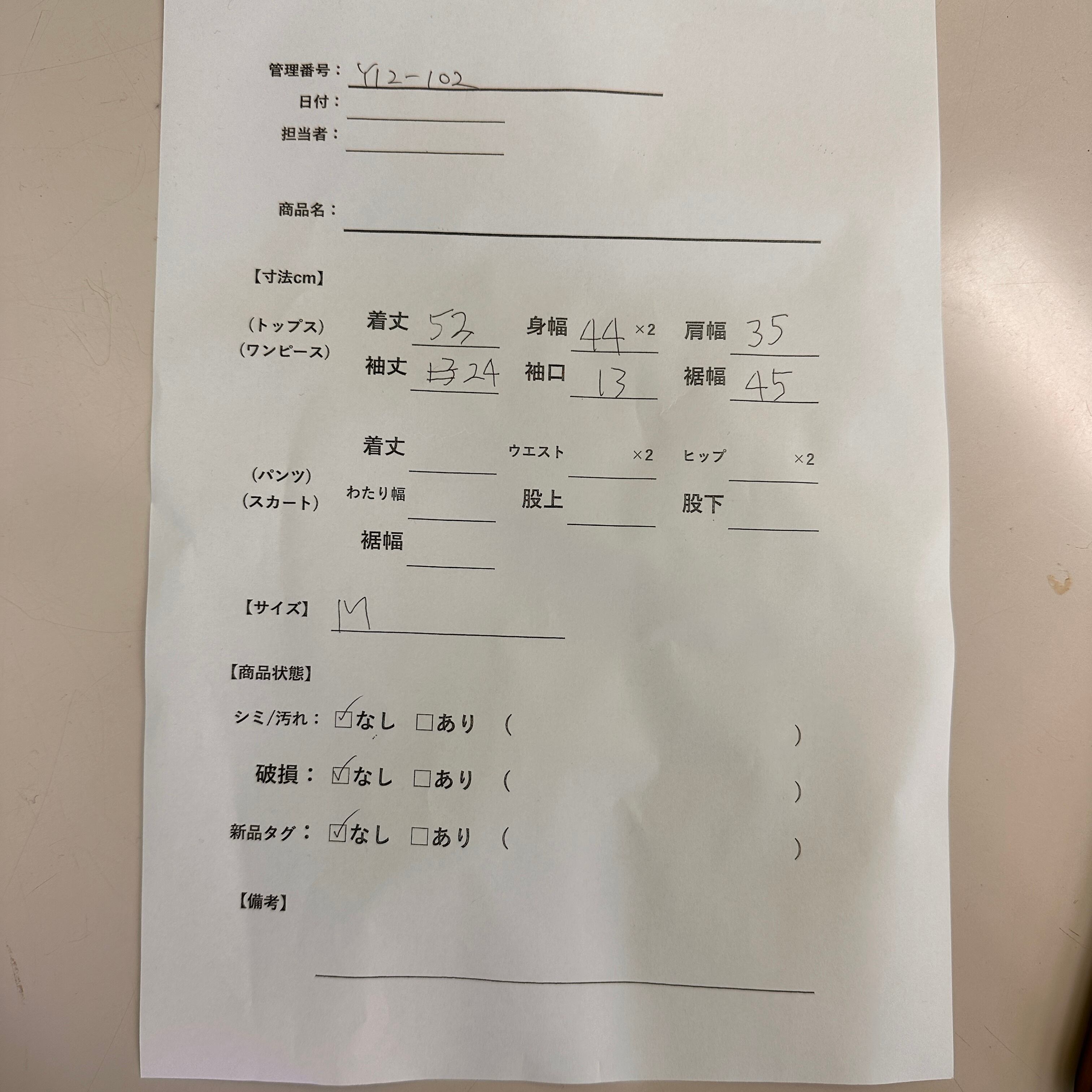 管理番号:Y12-102 #てまいらずアパレル商品一覧