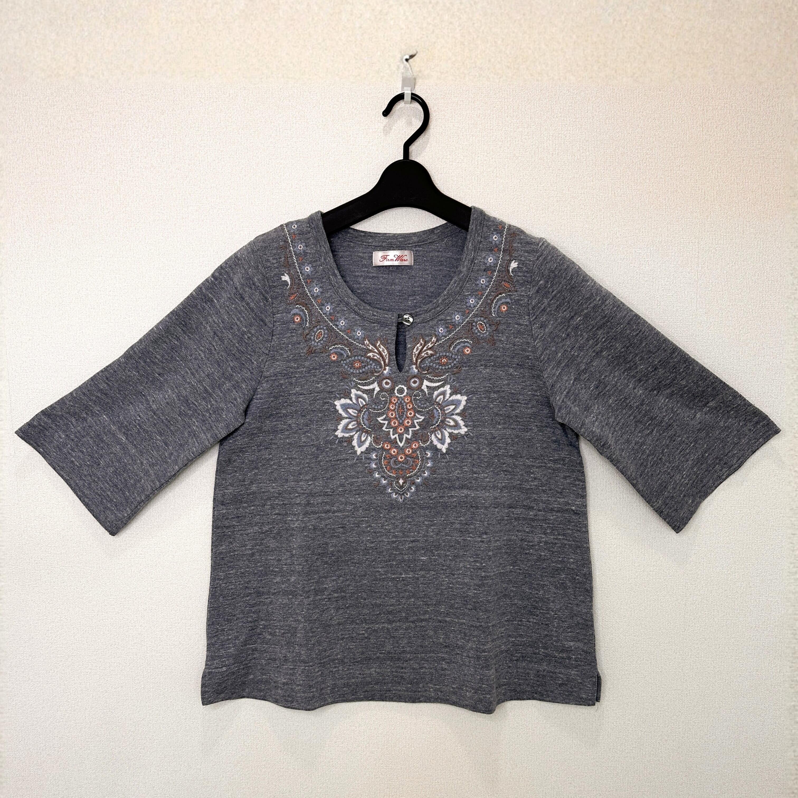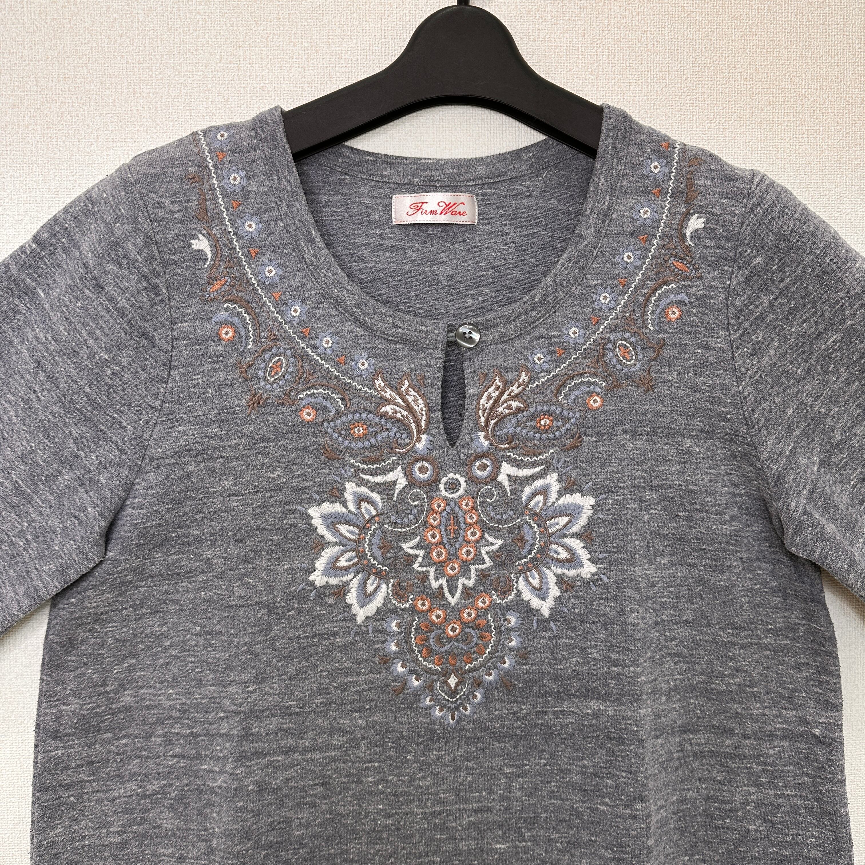 FirmWare 刺繍入りグレー五分袖トップス サイズ : M