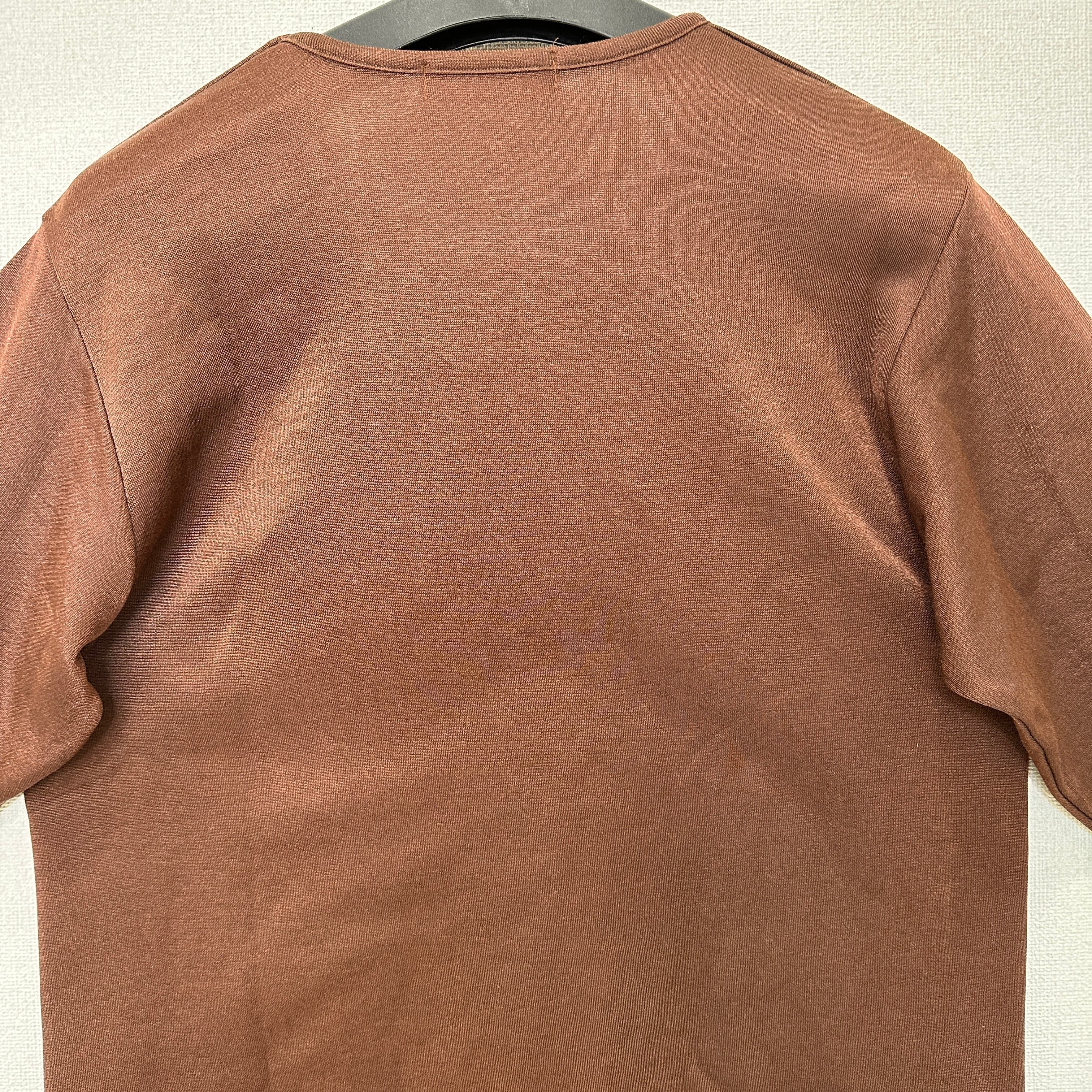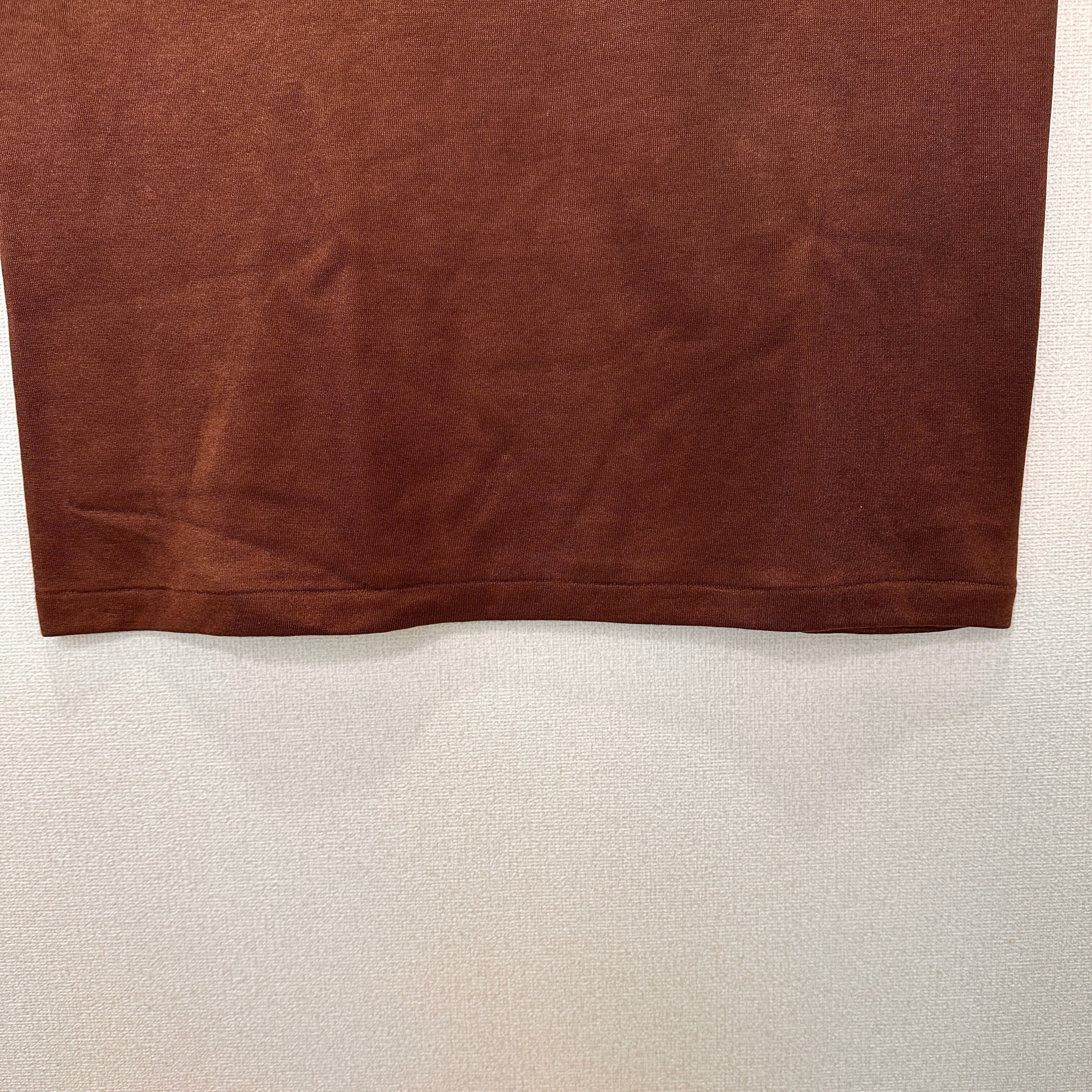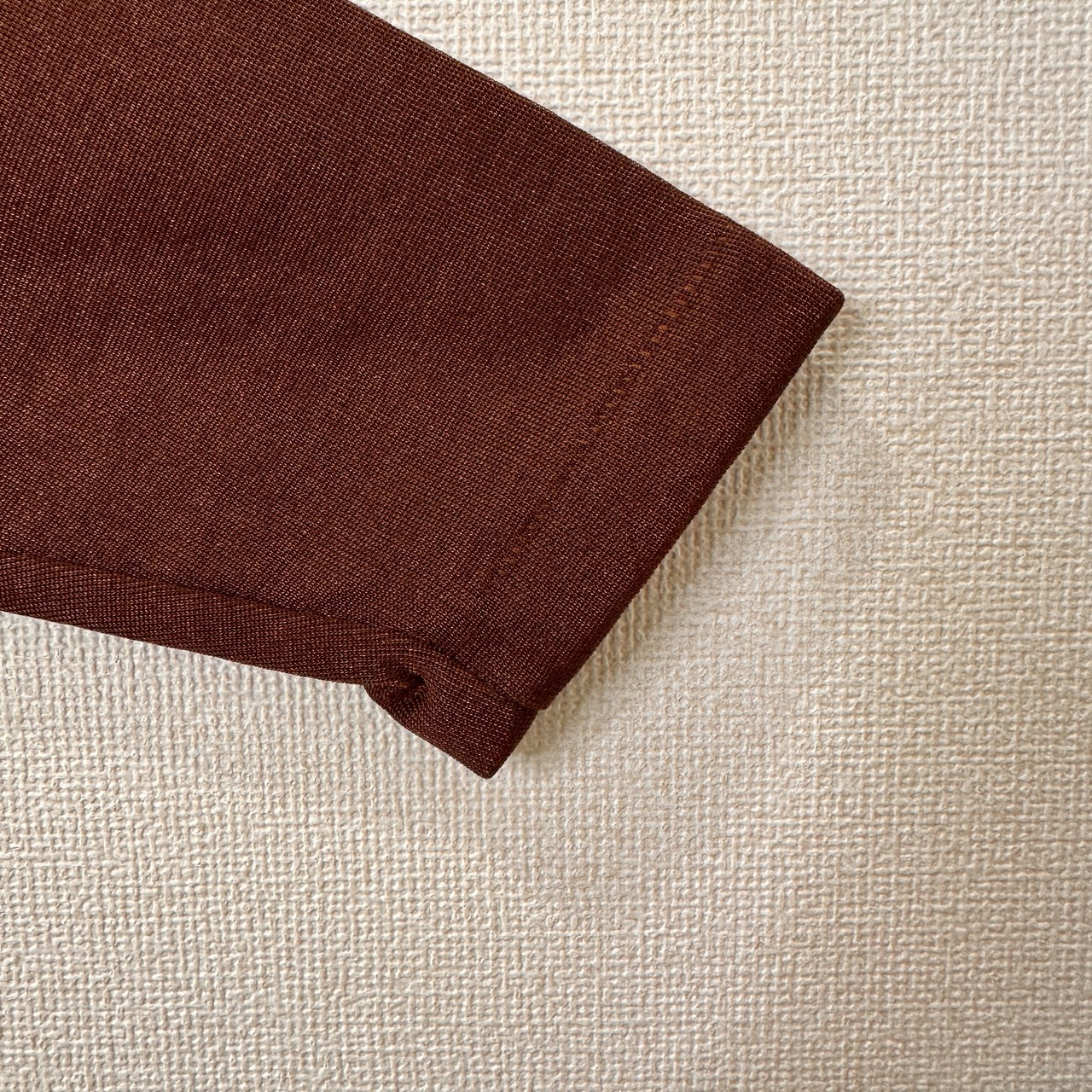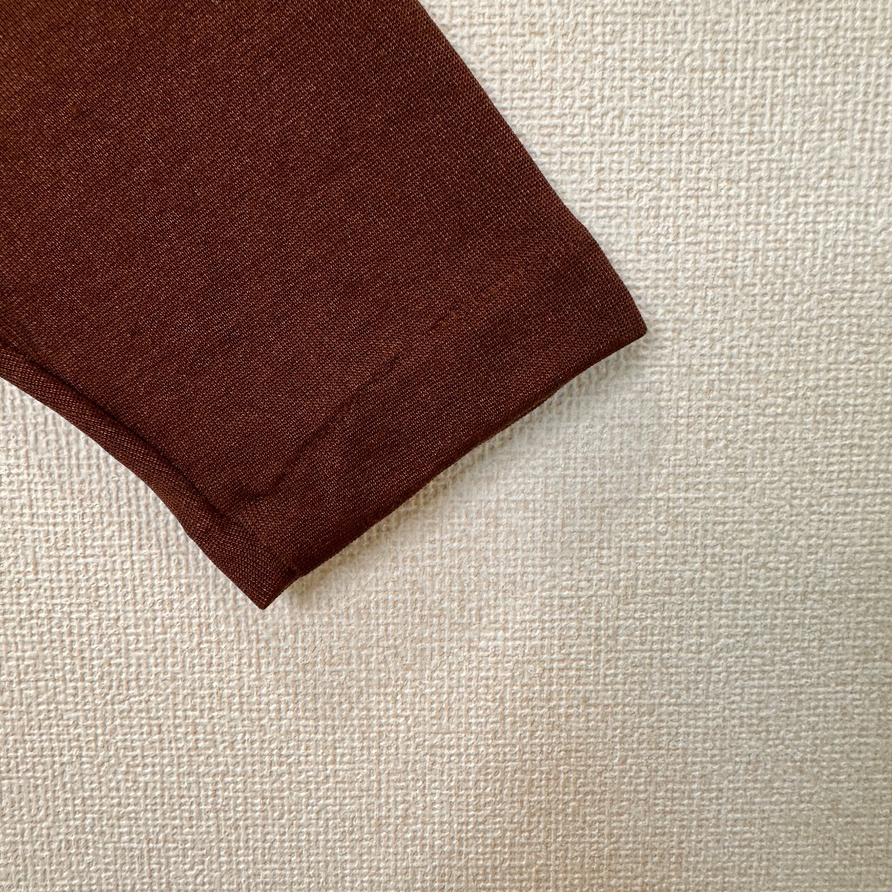 深みのあるブラウンで、シンプルなUネックまたはクルーネックのベーシックなデザインです。