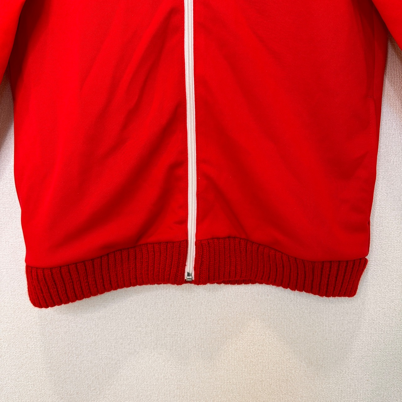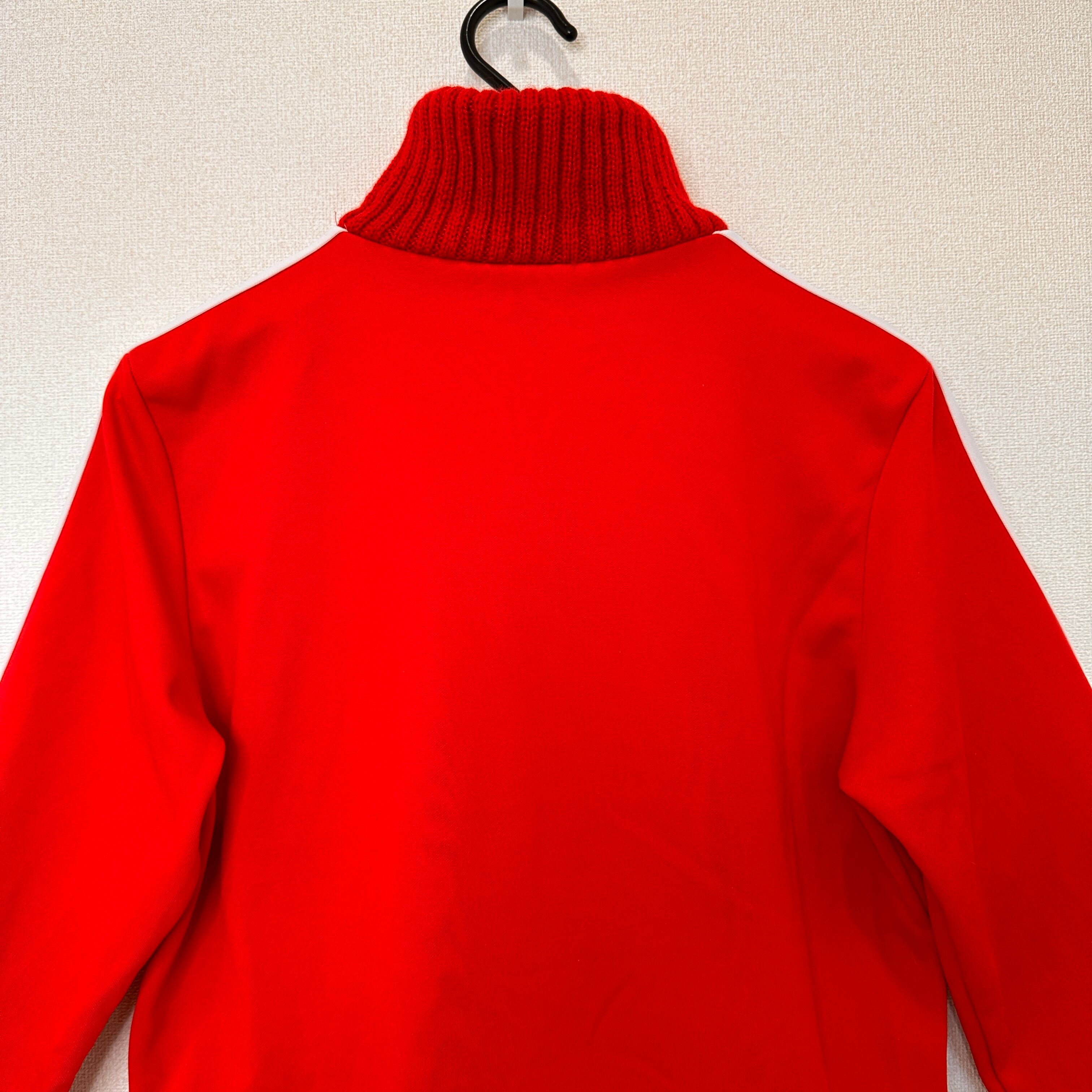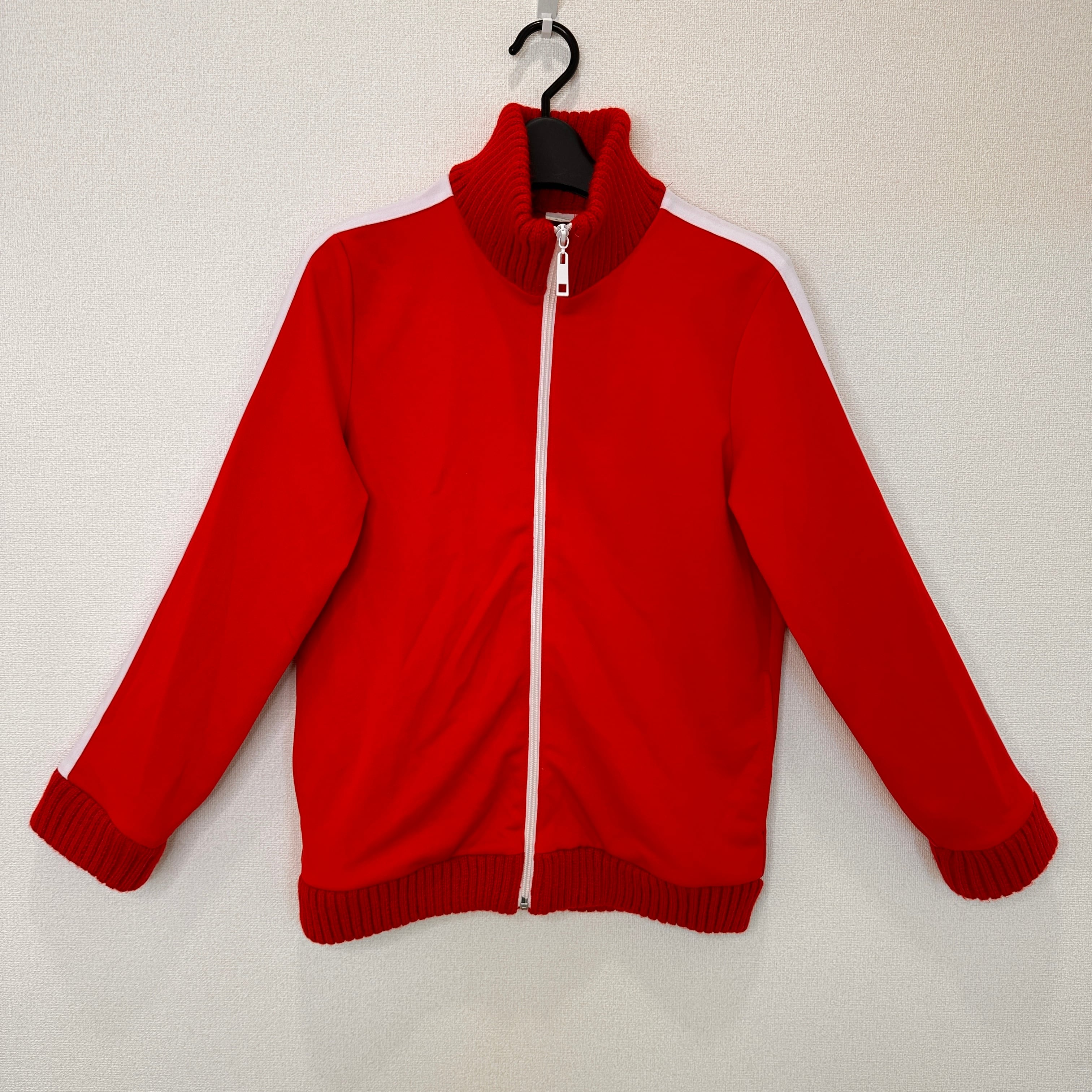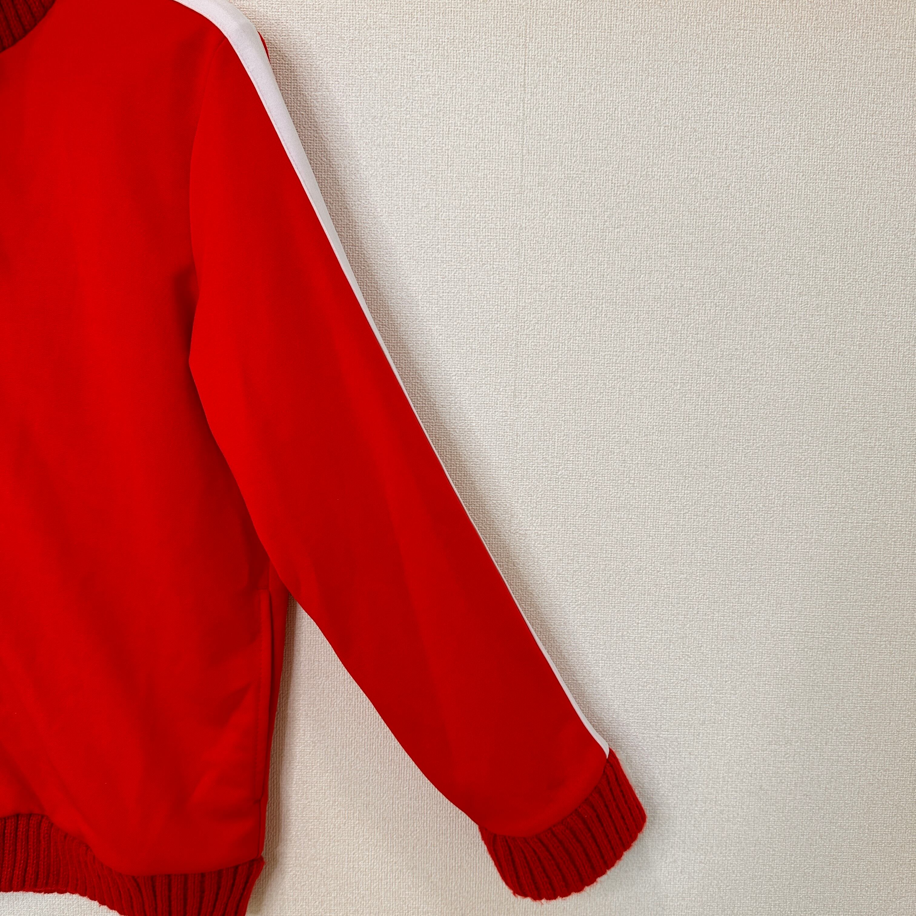 鮮やかな赤色のボディに、肩から袖にかけて白いラインが入ったスポーティーなデザインです。
