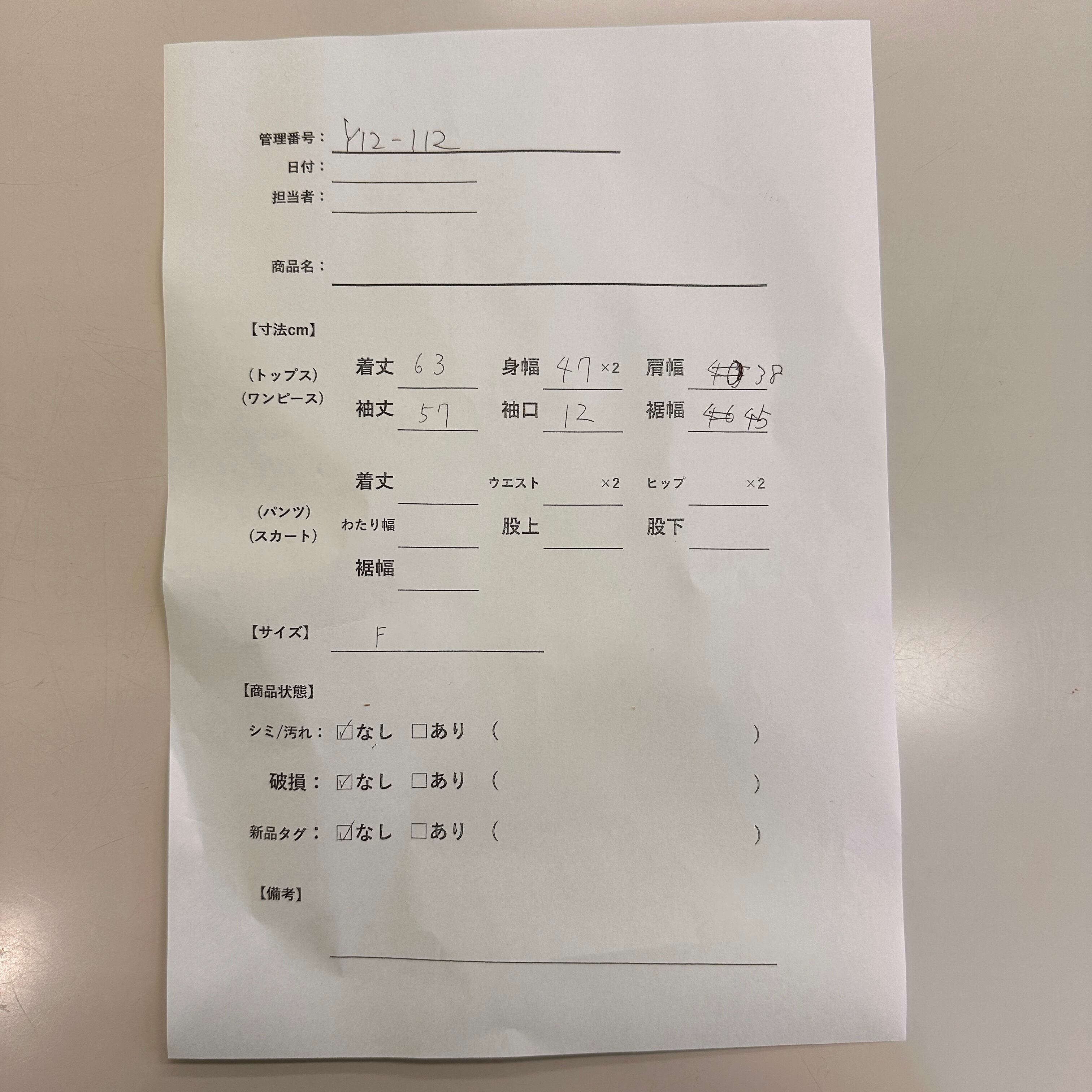 管理番号:Y12-112 #てまいらずアパレル商品一覧