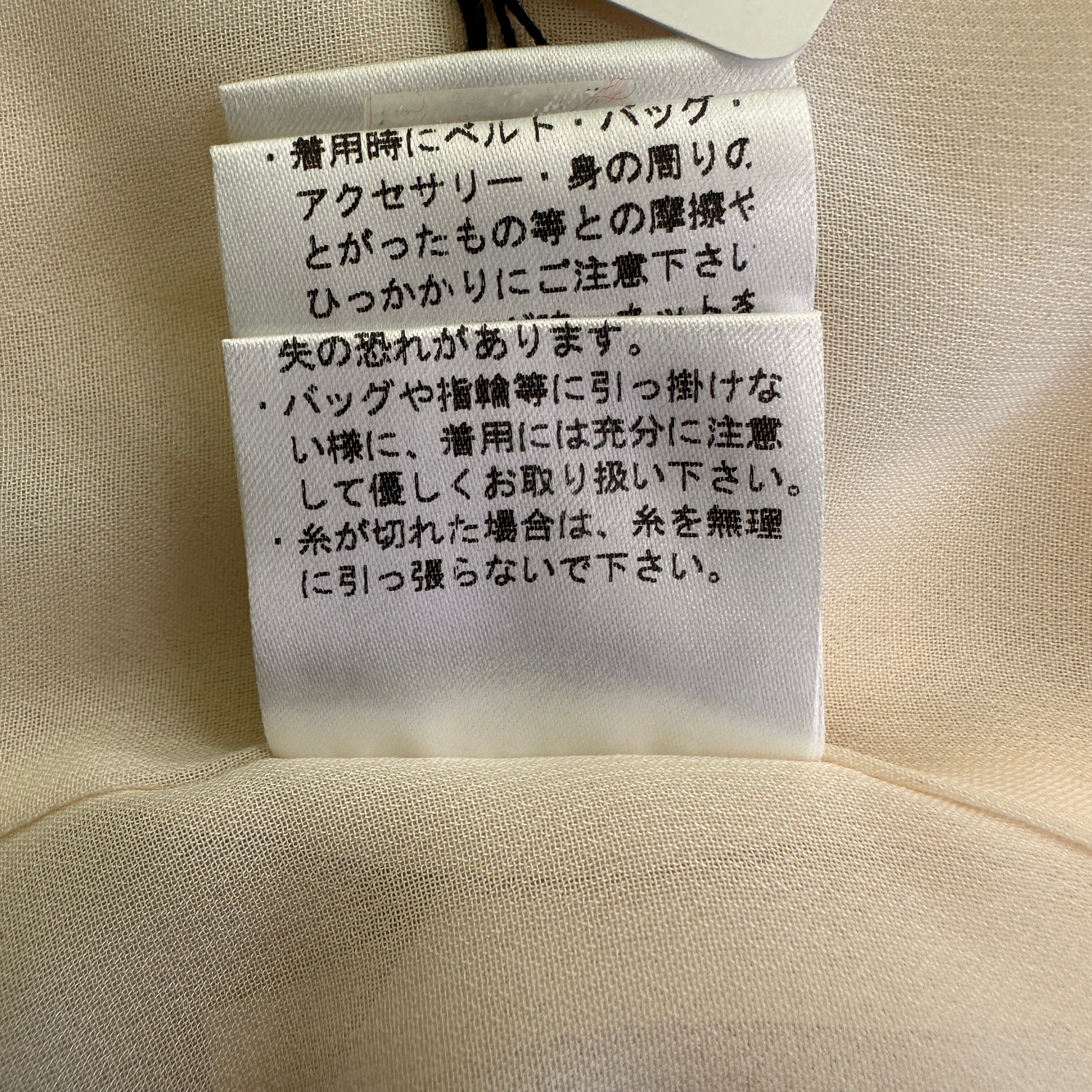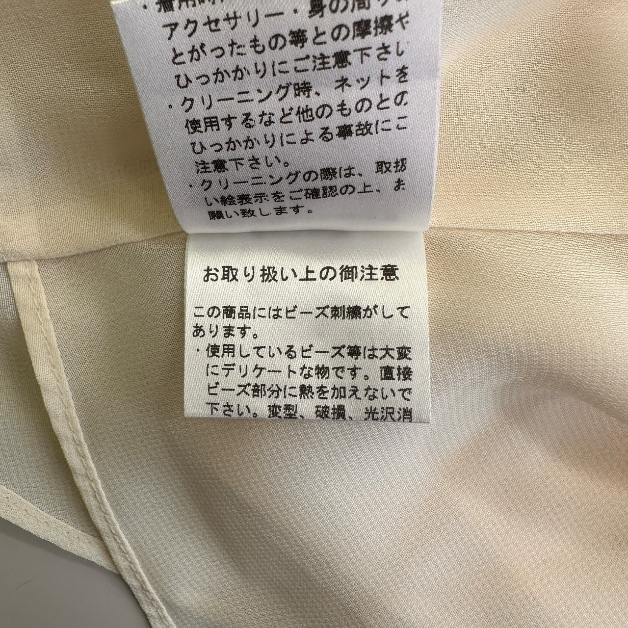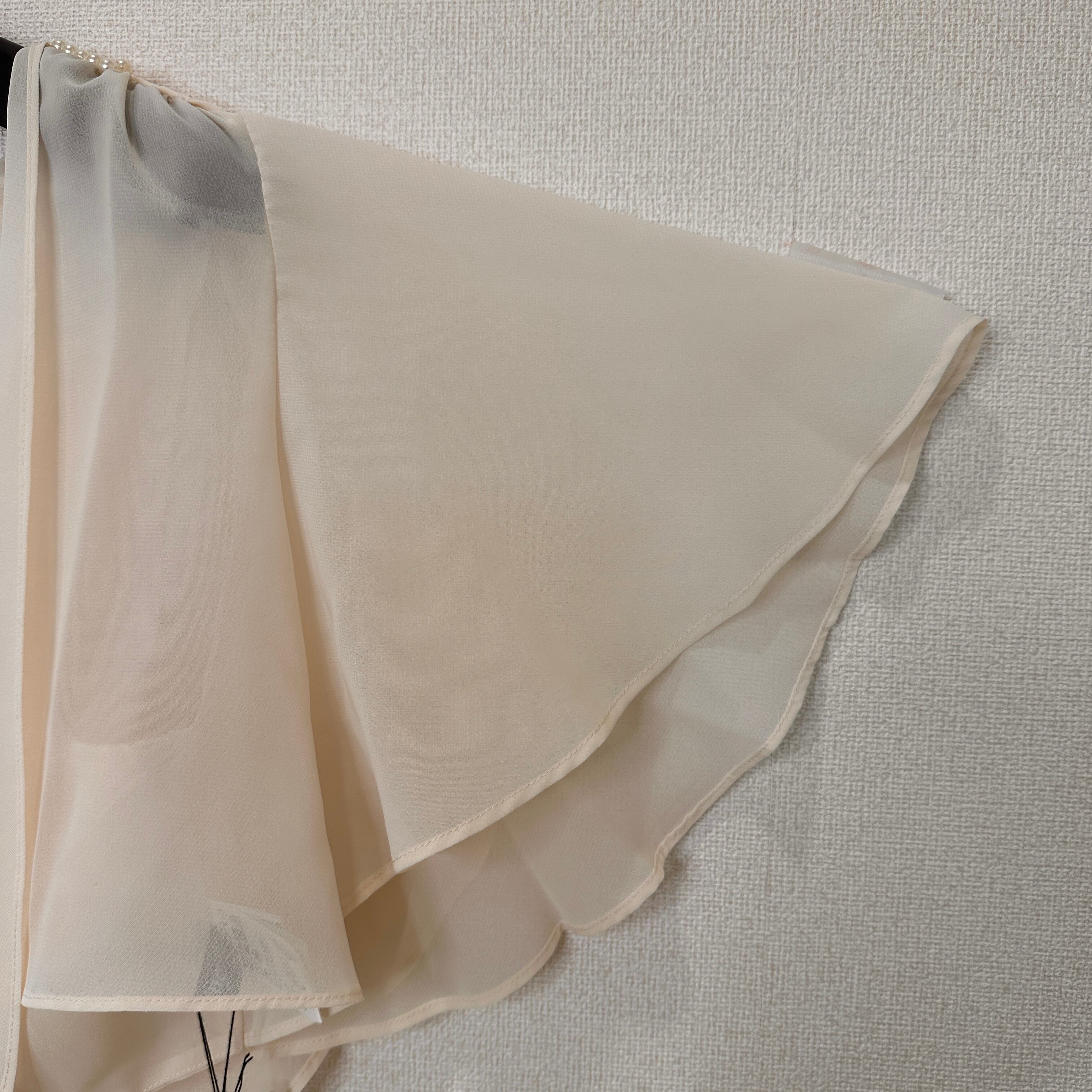柔らかなアイボリー系のシフォン素材に、背中部分が繊細なラメ入りレースになっています。