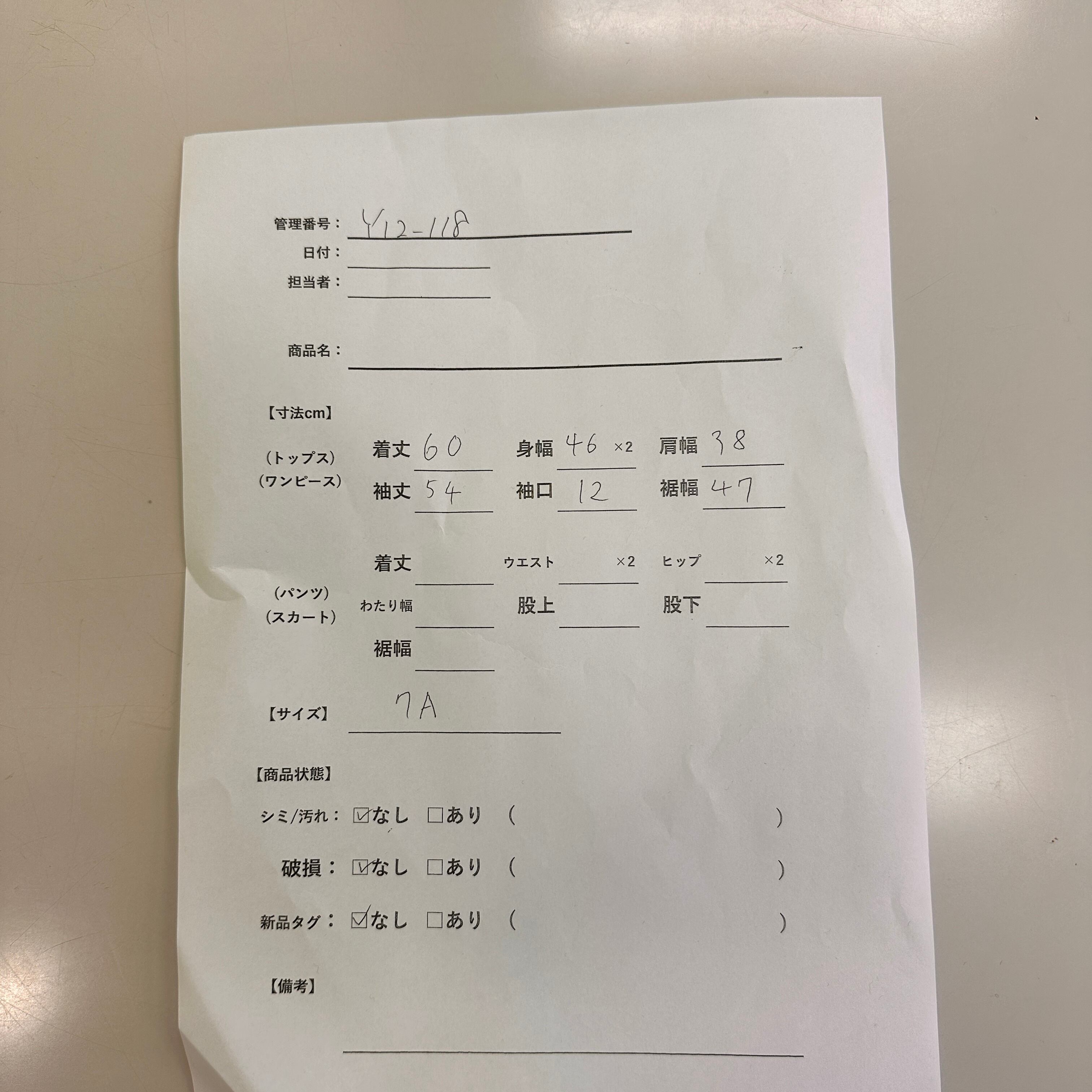 管理番号:Y12-118 #てまいらずアパレル商品一覧