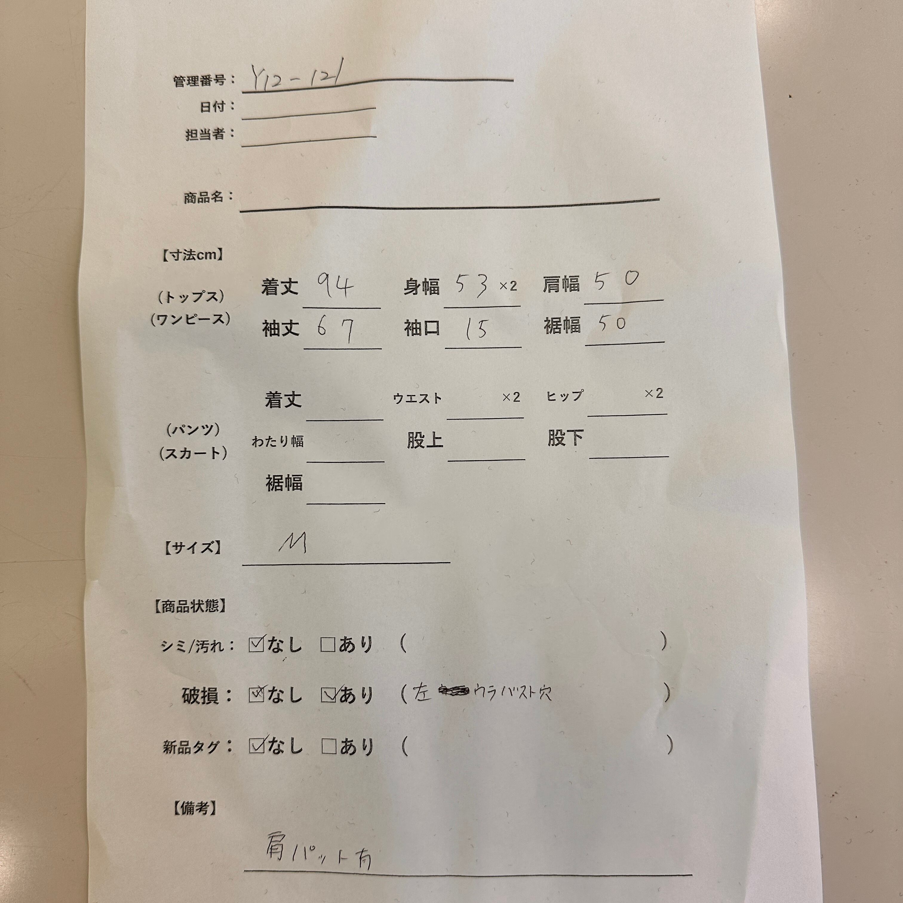 管理番号:Y12-121 #てまいらずアパレル商品一覧