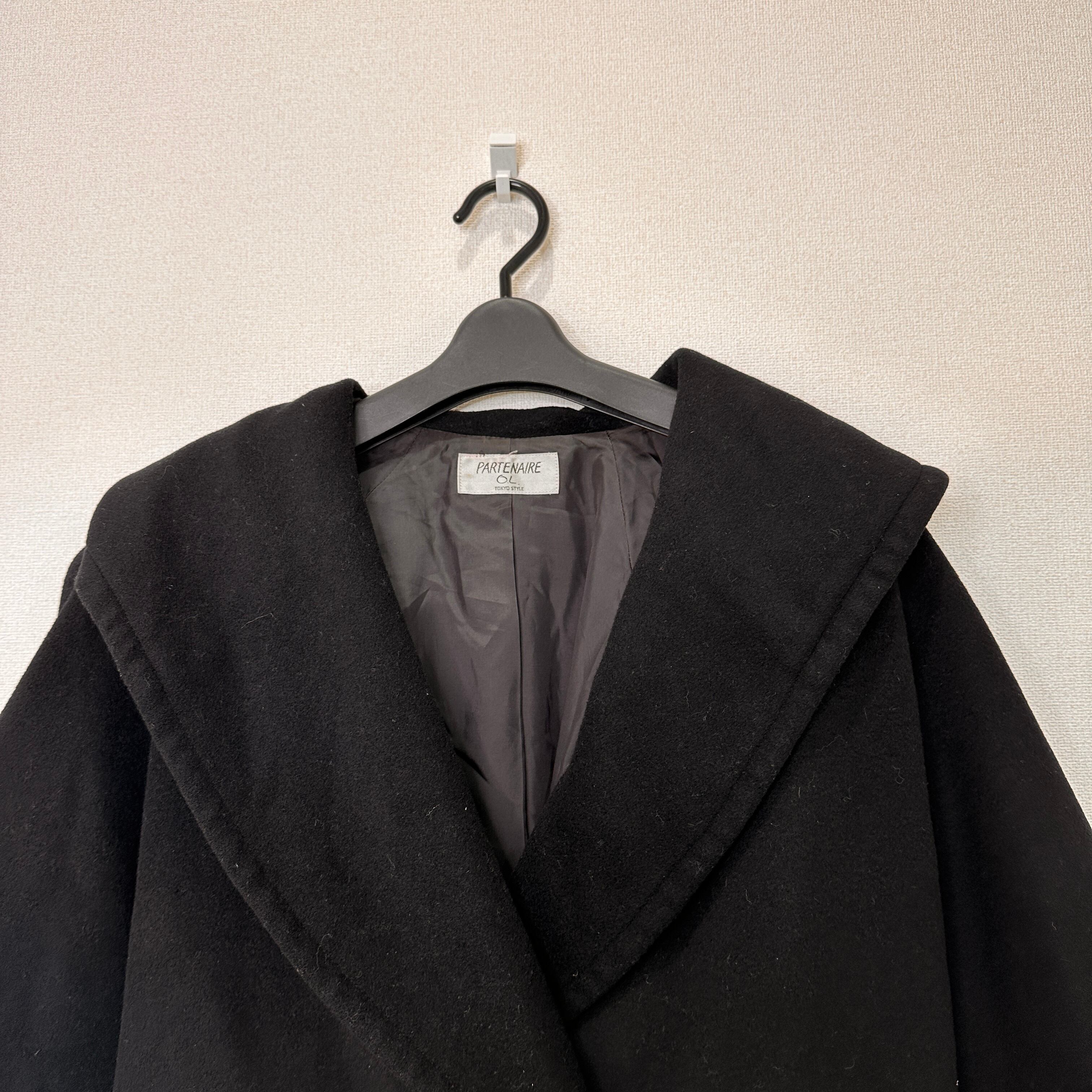 PARTENAIRE OL (東京スタイル) ウール混 ビッグカラー Pコート風 ロングコート 黒