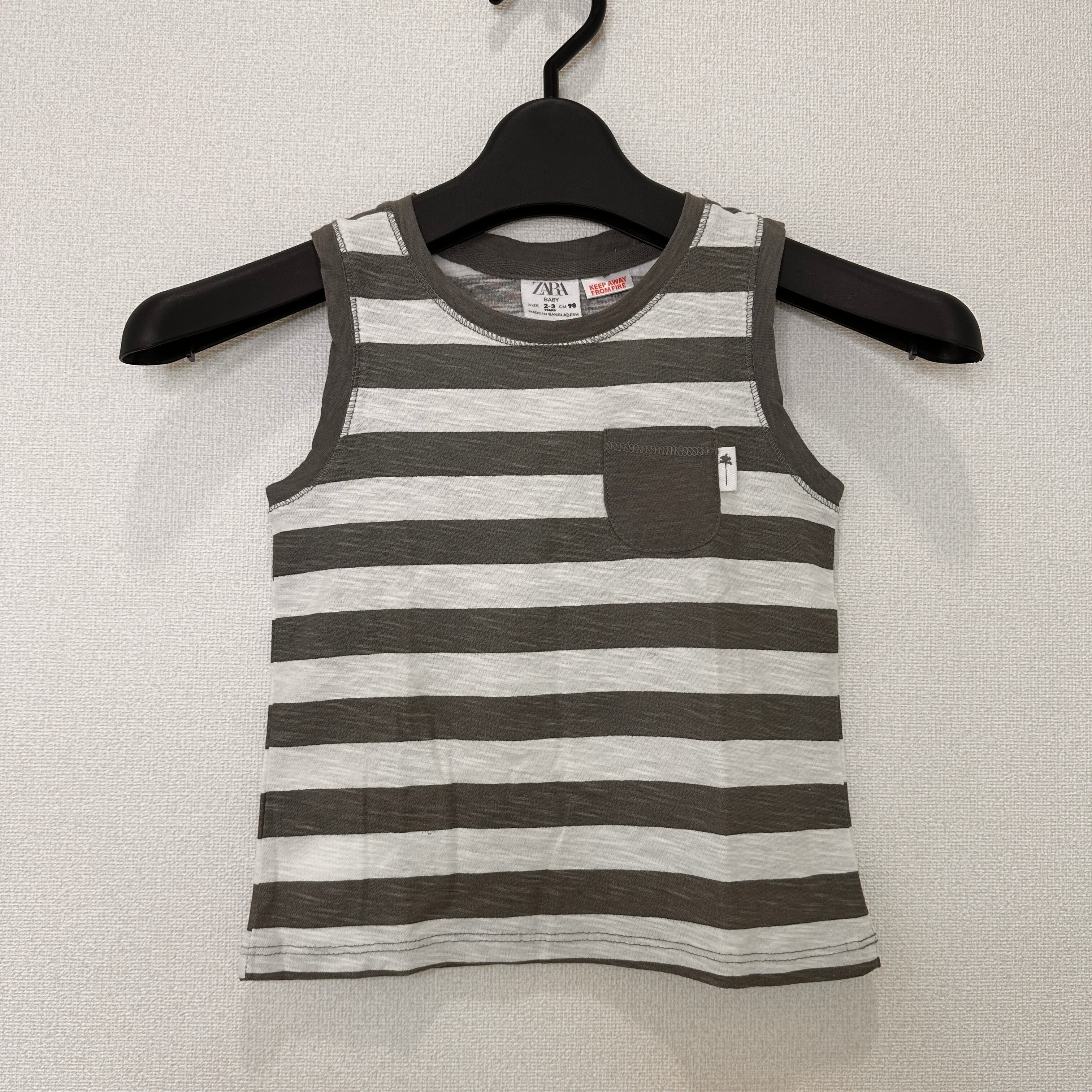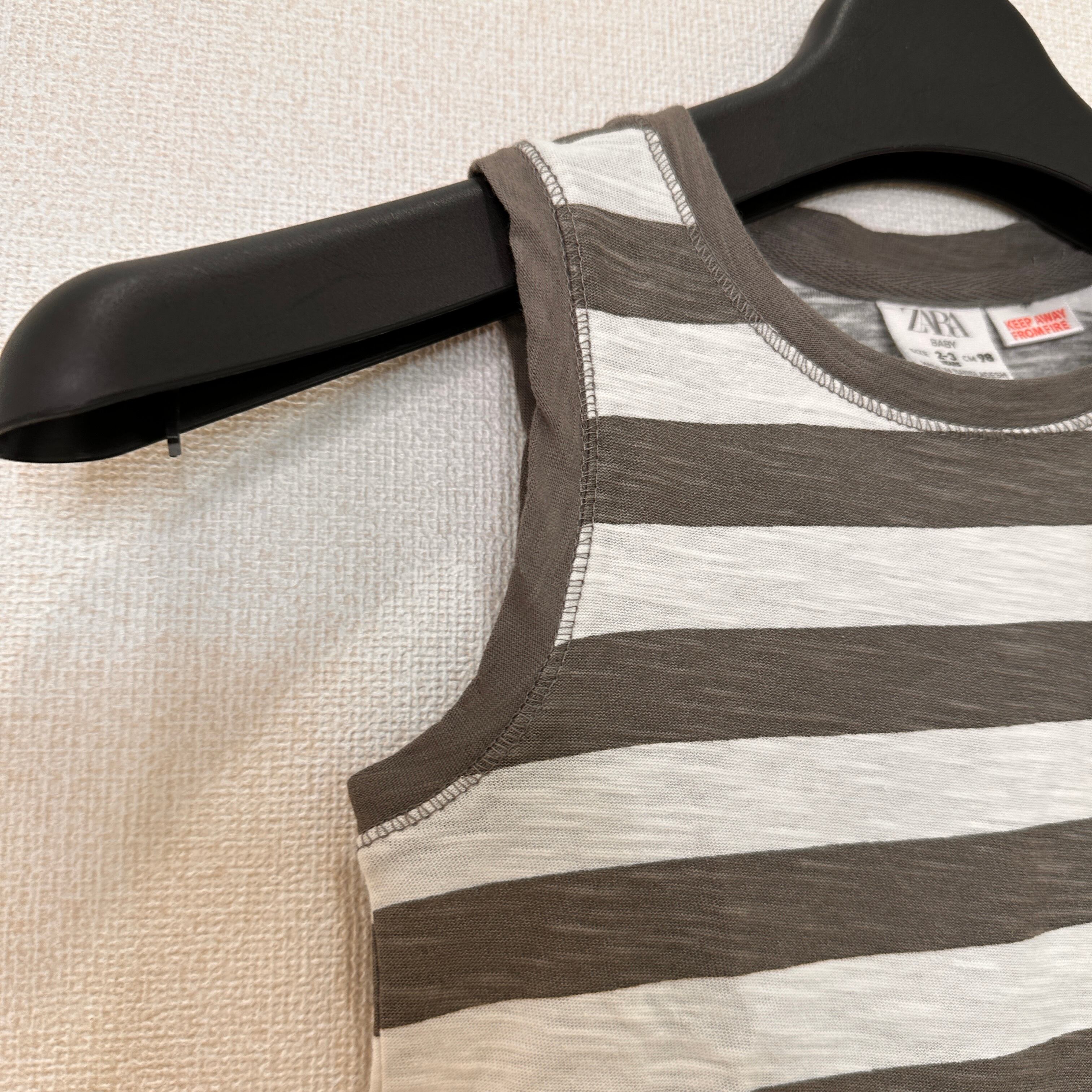ZARA BABYのチャコールグレーと白のボーダー柄が爽やかなタンクトップです。