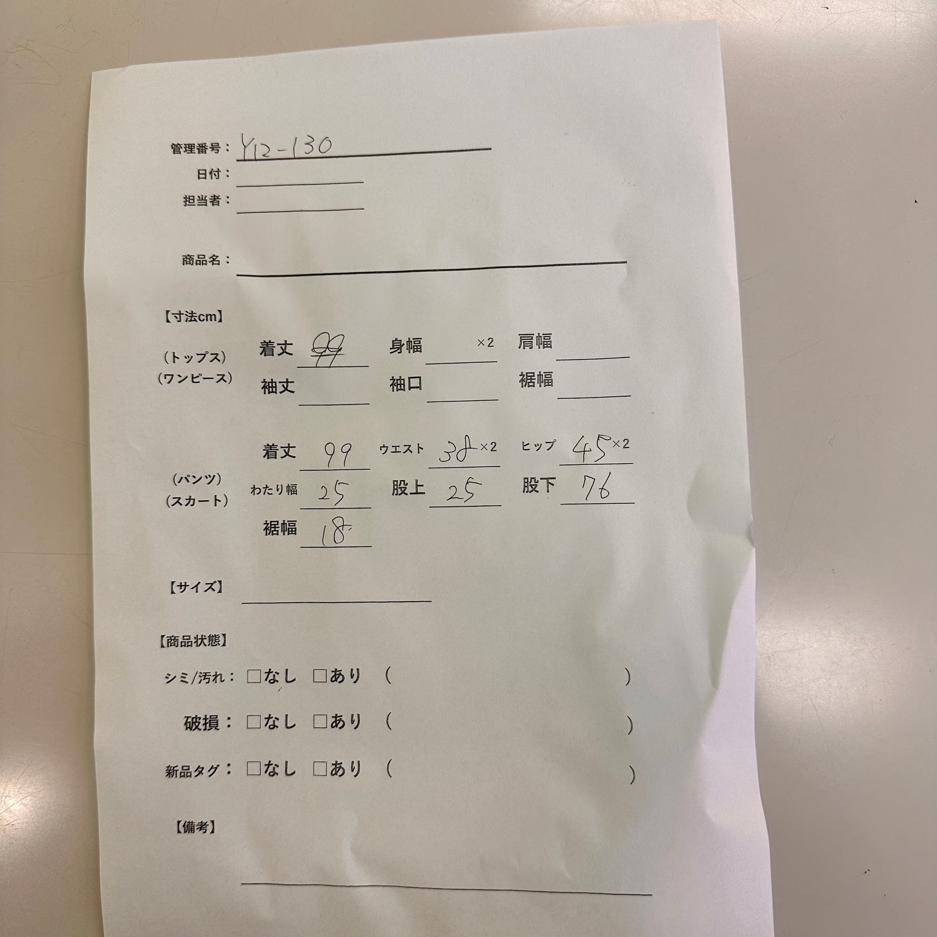 管理番号:Y12-130 #てまいらずアパレル商品一覧