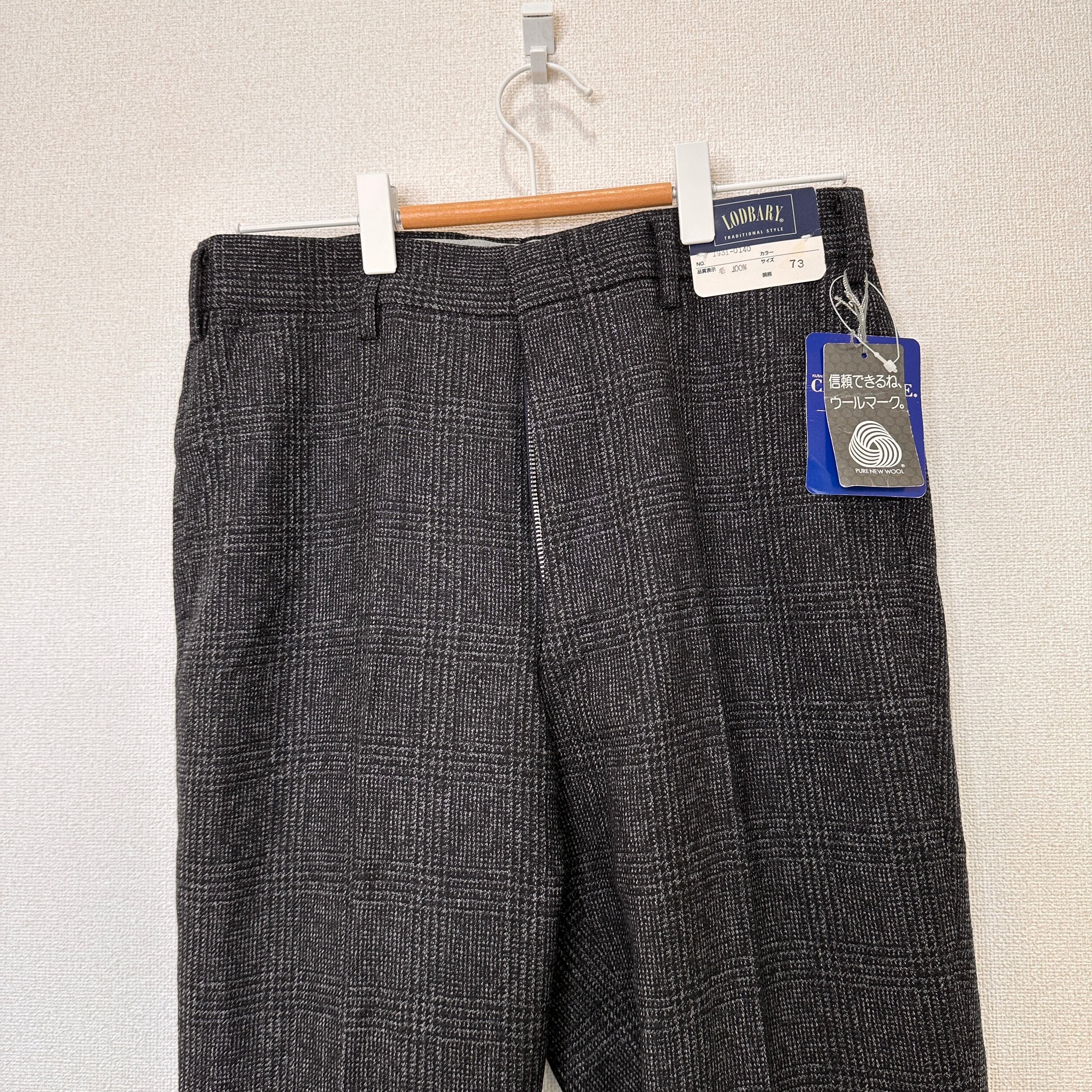LODBARY ウール100% グレンチェック柄 スラックス パンツ