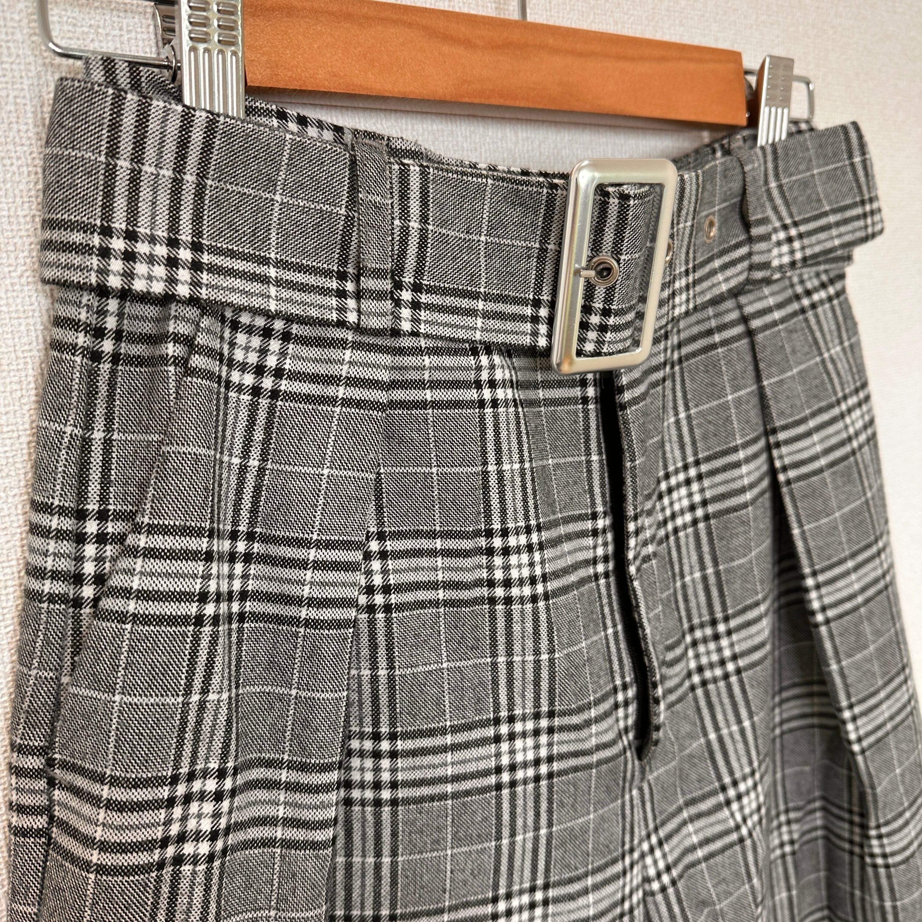 GU (ジーユー) チェック柄 ワイドパンツ ベルト付き Sサイズ