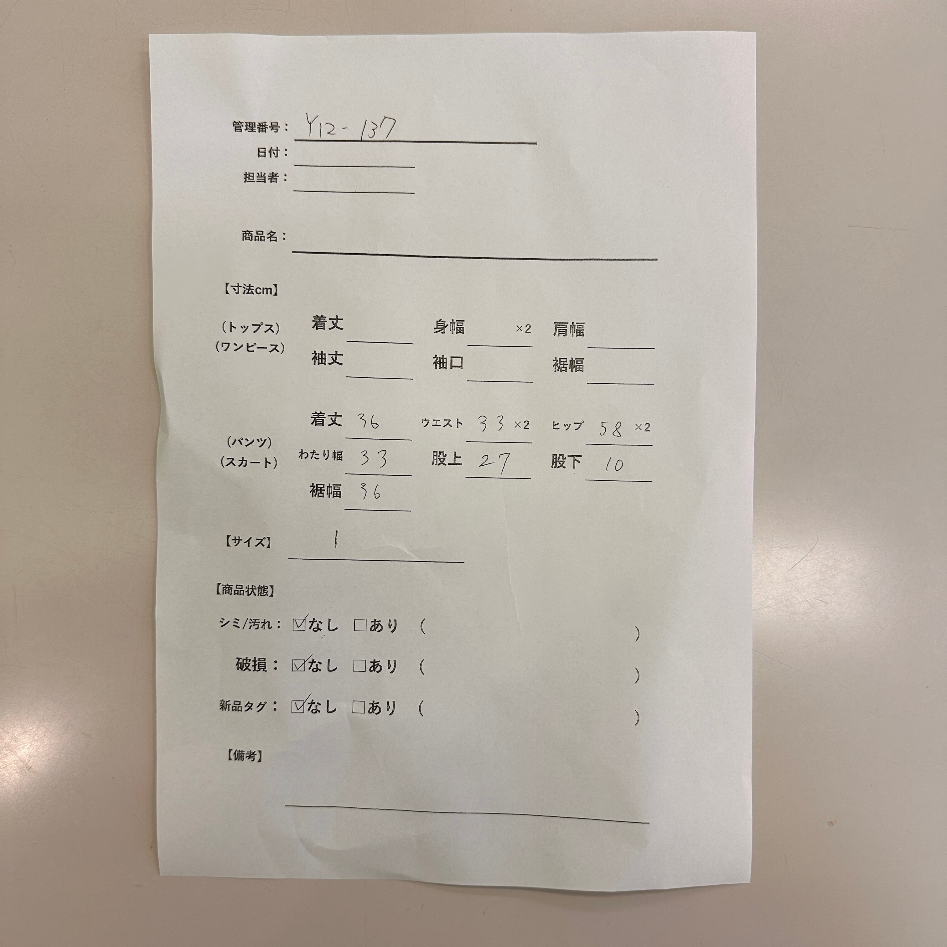 管理番号:Y12-137 #てまいらずアパレル商品一覧