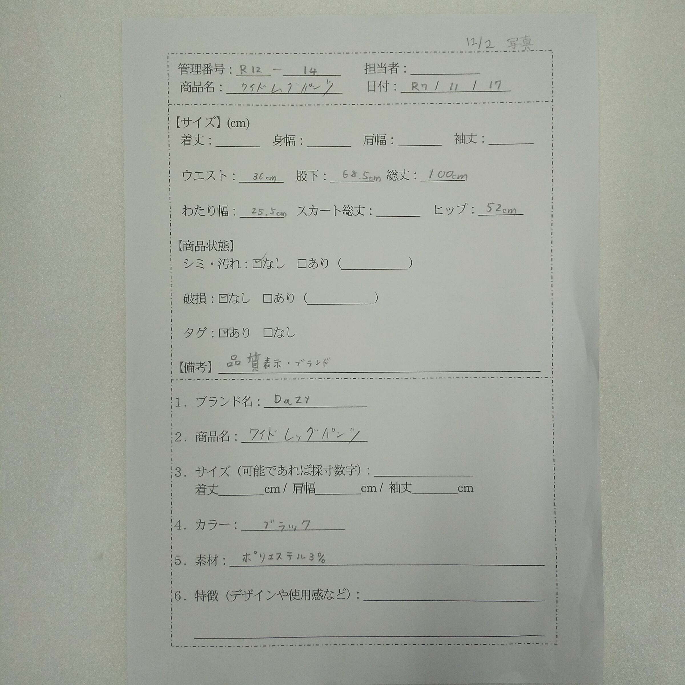 管理番号:R-12-14 #てまいらずアパレル商品一覧