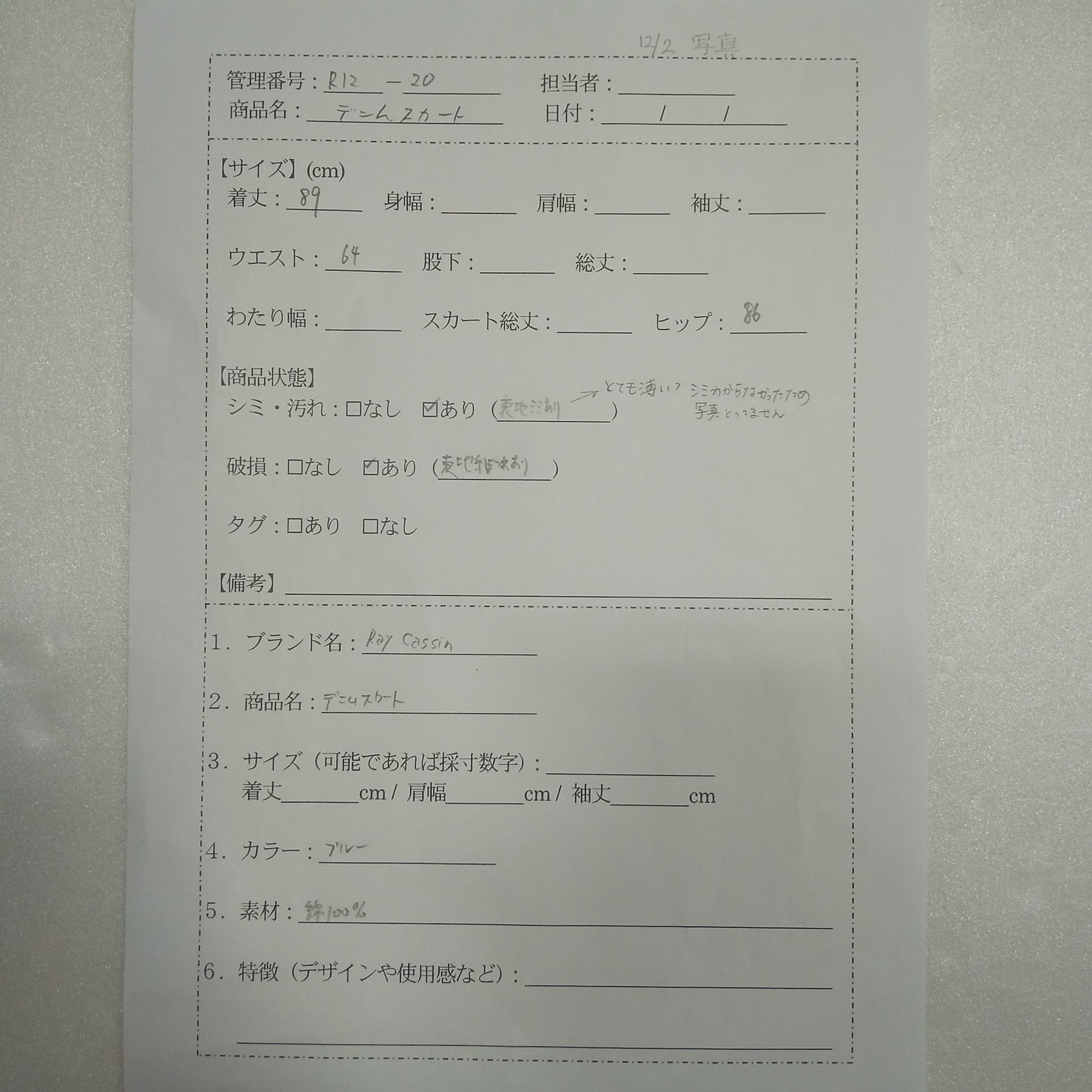 管理番号:R-12-20 #てまいらずアパレル商品一覧