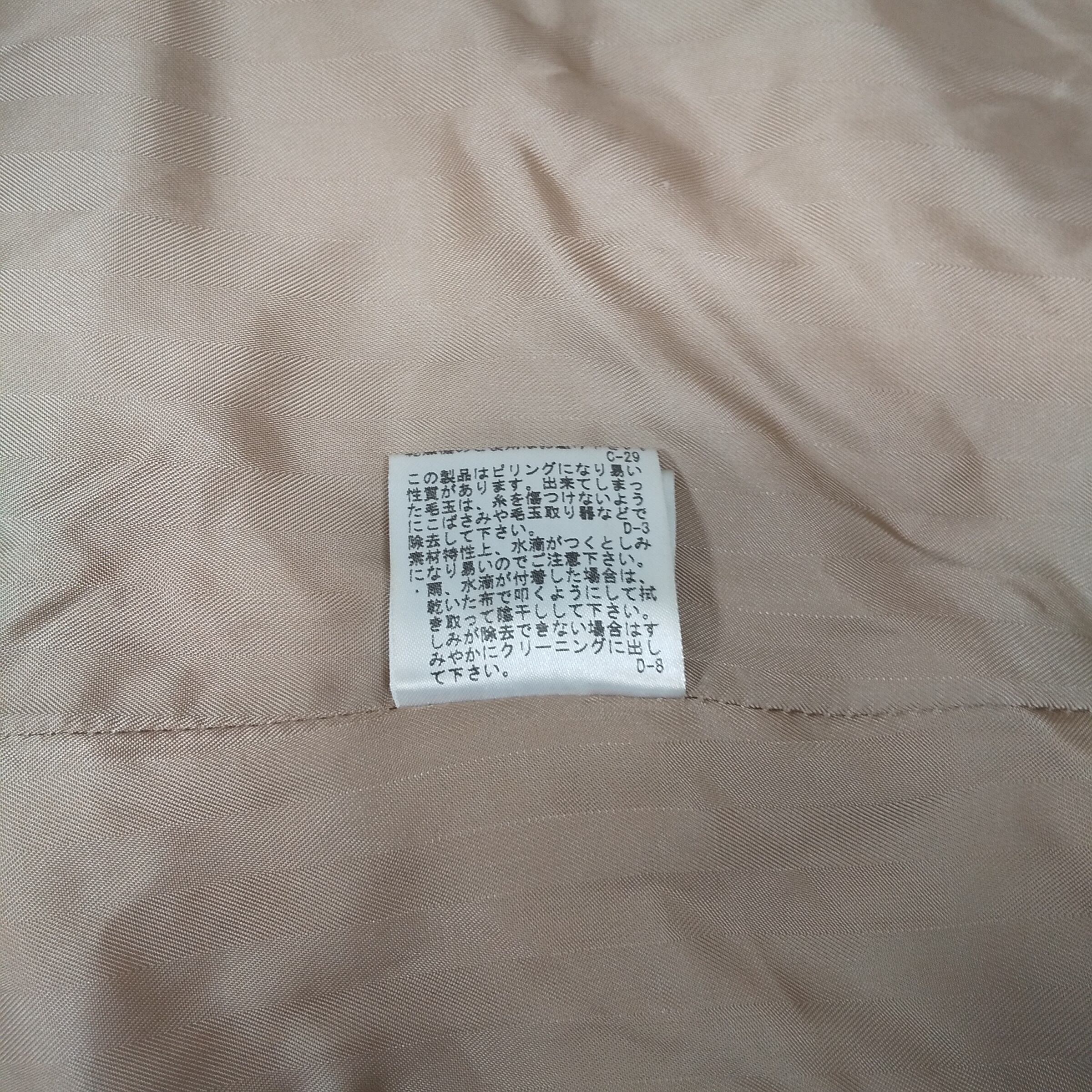 表地にはウールを90%使用しており、しっかりとした生地感と暖かさを兼ね備えています。裏地にはキュプラ100%を採用しているため、滑りが良く、インナーとの摩擦が少ない着心地です。秋冬シーズンを中心に活躍するアイテムで、通勤やお出かけ、きれいめカジュアルまで幅広く対応します。