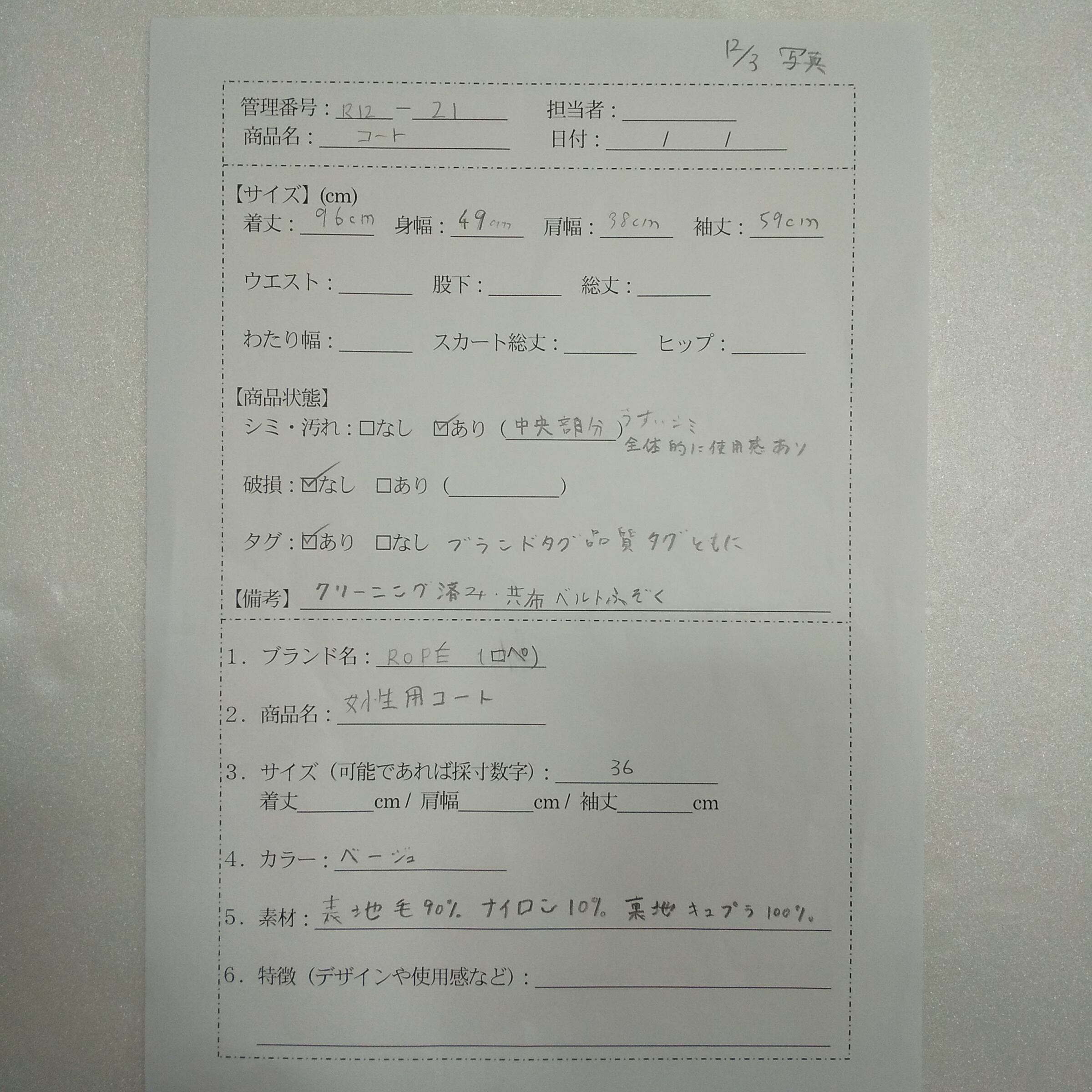 管理番号:R-12-21 #てまいらずアパレル商品一覧