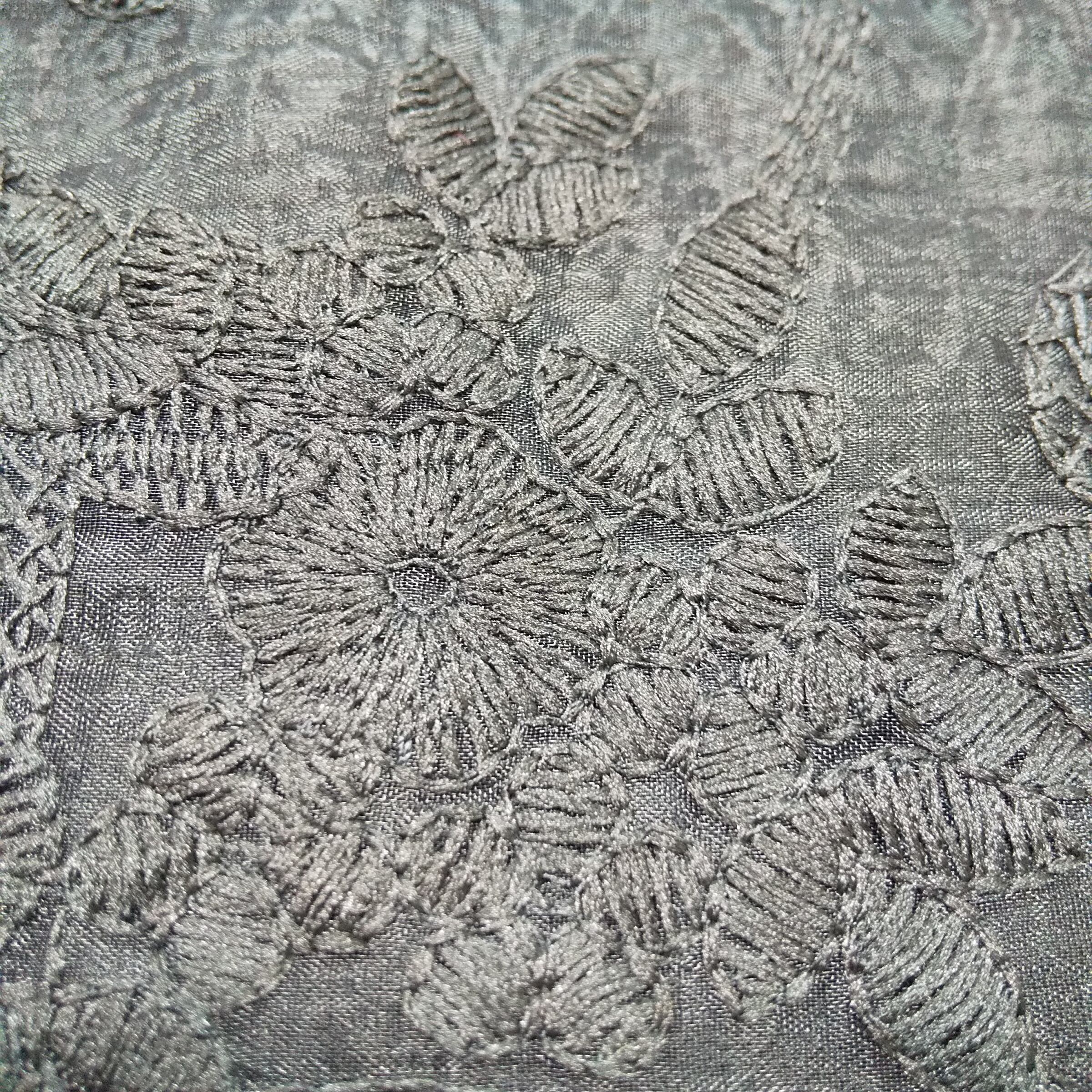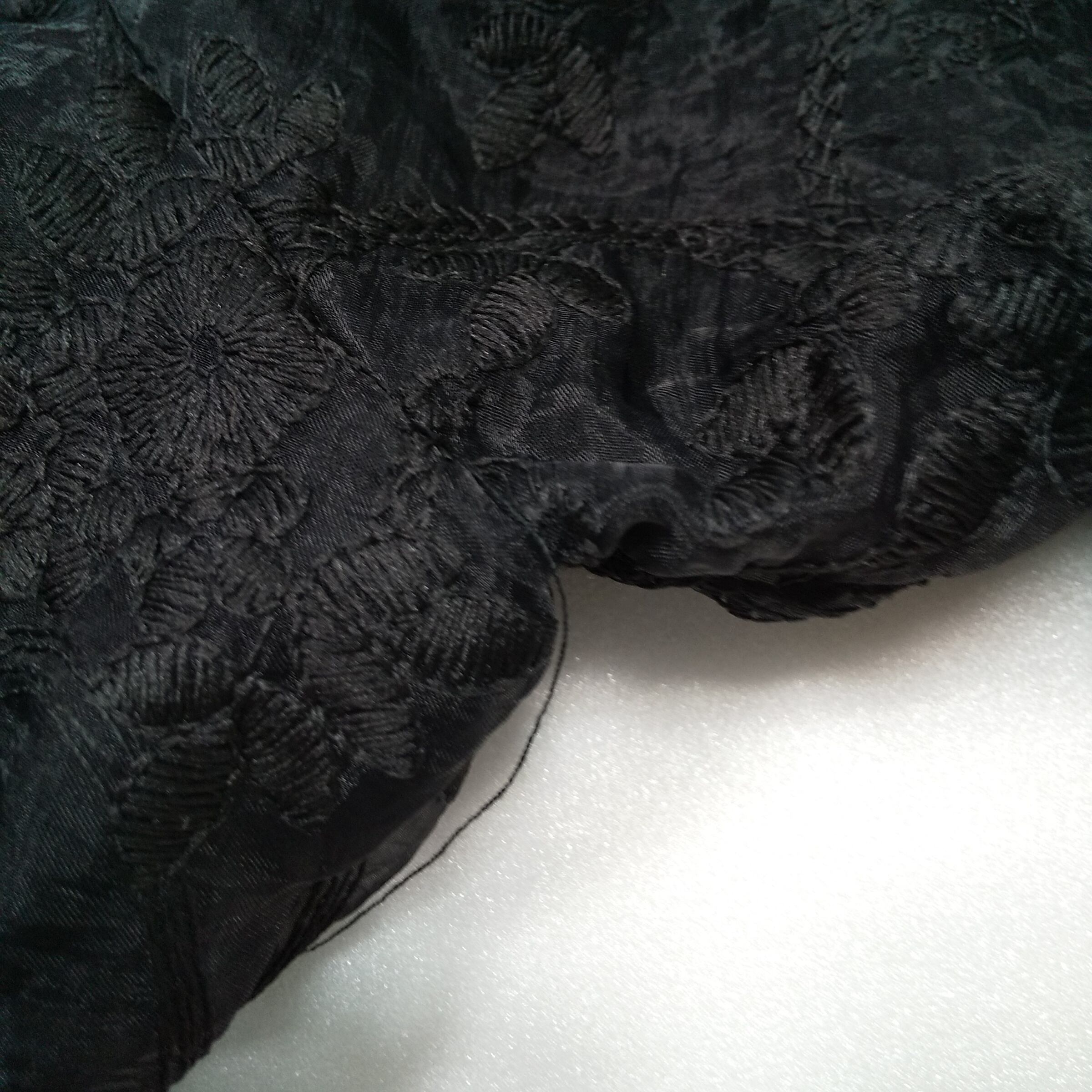 素材は表地がナイロン、刺繍糸と裏地はポリエステル素材。軽やかでさらっとした質感のため、春や秋を中心に、季節の変わり目に活躍します。ジャケットやカーディガンのインナーとしても使いやすいアイテムです。